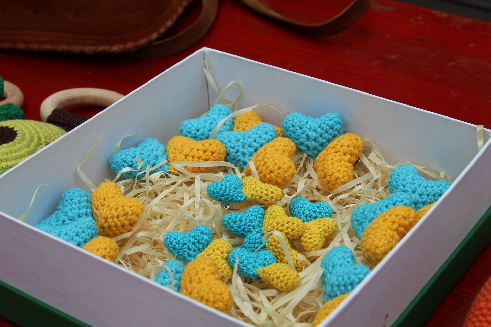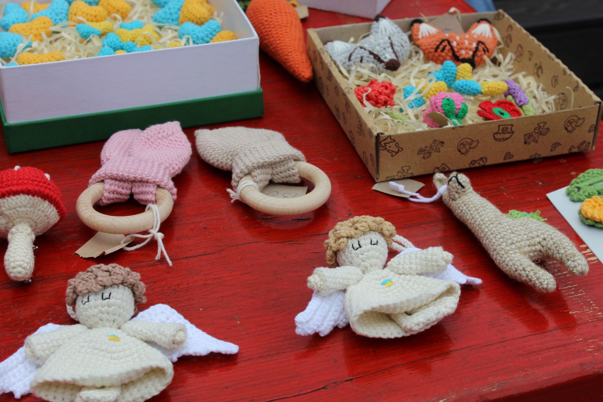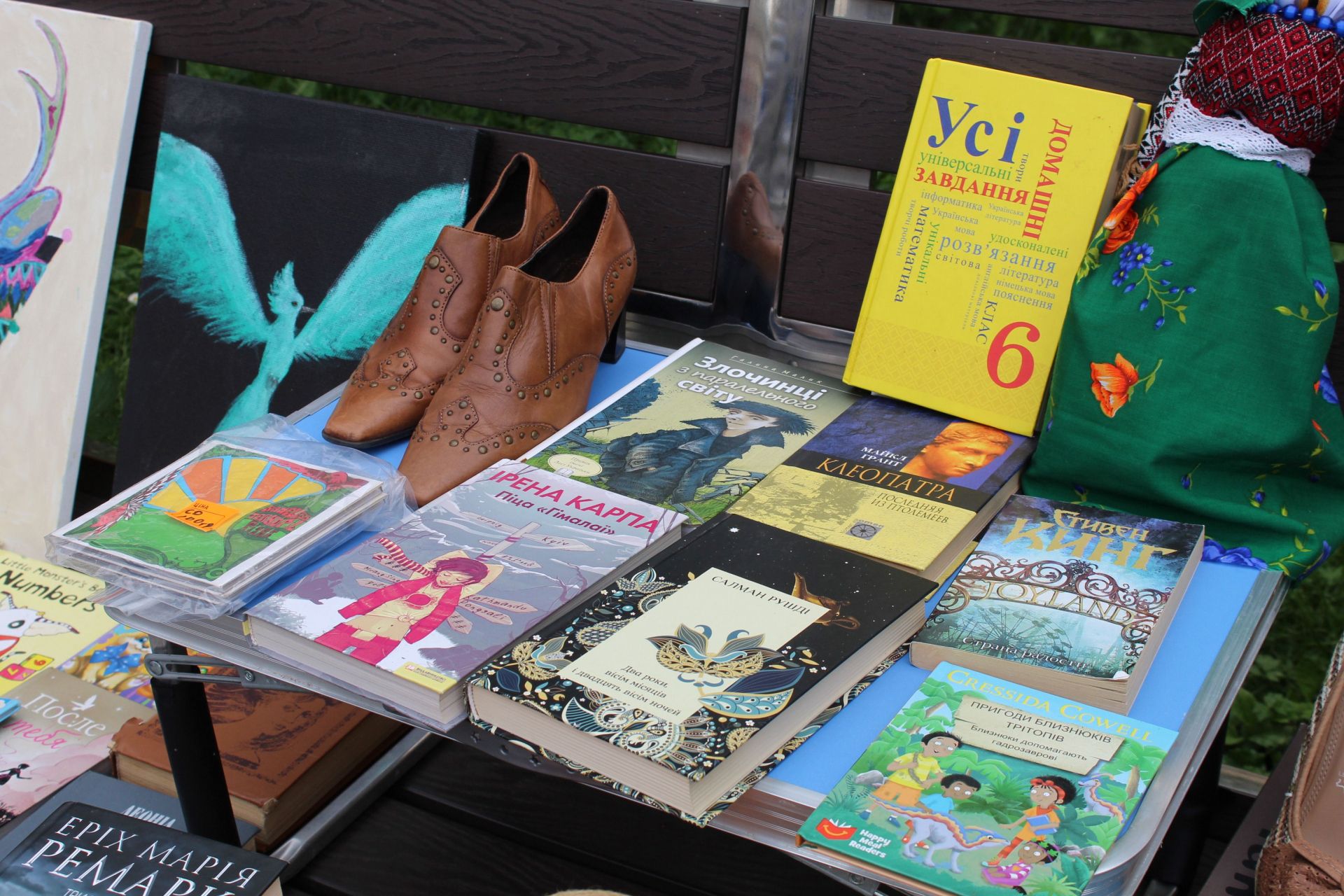 На благодійний розпродаж принесли чимало книг – як українських авторів, так і зарубіжних, авторські картини (живописні, зі стрічок абощо). В’язані іграшки, приміром ангелики, сердечка, черешеньки та різні фігурки вартували 150 грн.