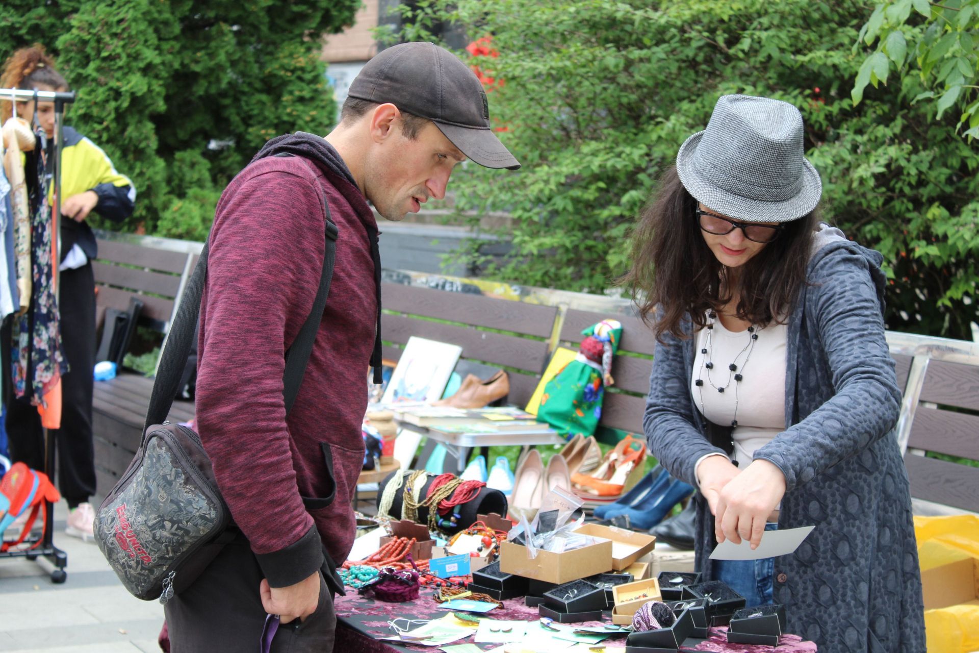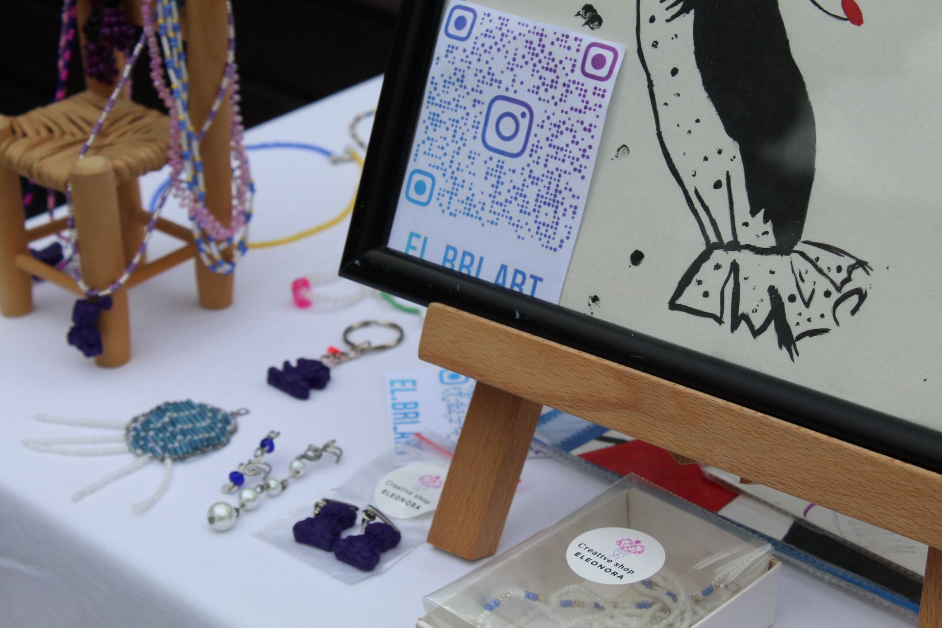 Тернополянка Еля має свій бренд картин та робить біжутерію для магазинчику creative.shop.eleonora. Сторінку у соцмережах поки не створила. Вона особисто знайома із Надією Ротман – головною затійницею барахолки. Завітала сюди вдруге, і нині принесла на продаж власні унікальні вироби.