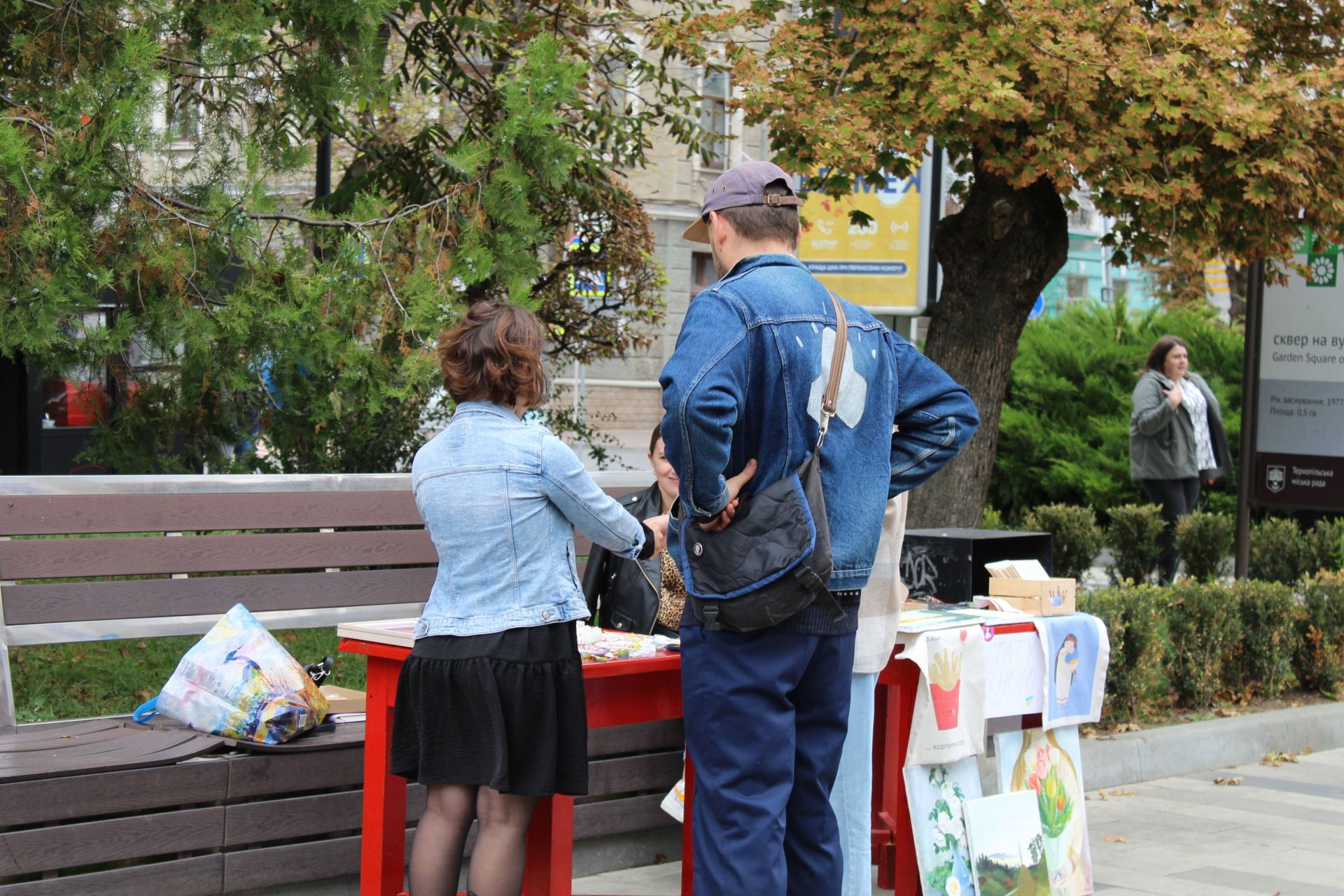 - Повітряна тривога, яка закінчилась майже ополудні, не стала на заваді благодійній барахолці у підтримку ЗСУ, яку вкотре влаштували біля фонтану «Кульбаба». Тут попри по-осінньому холодну погоду людно.