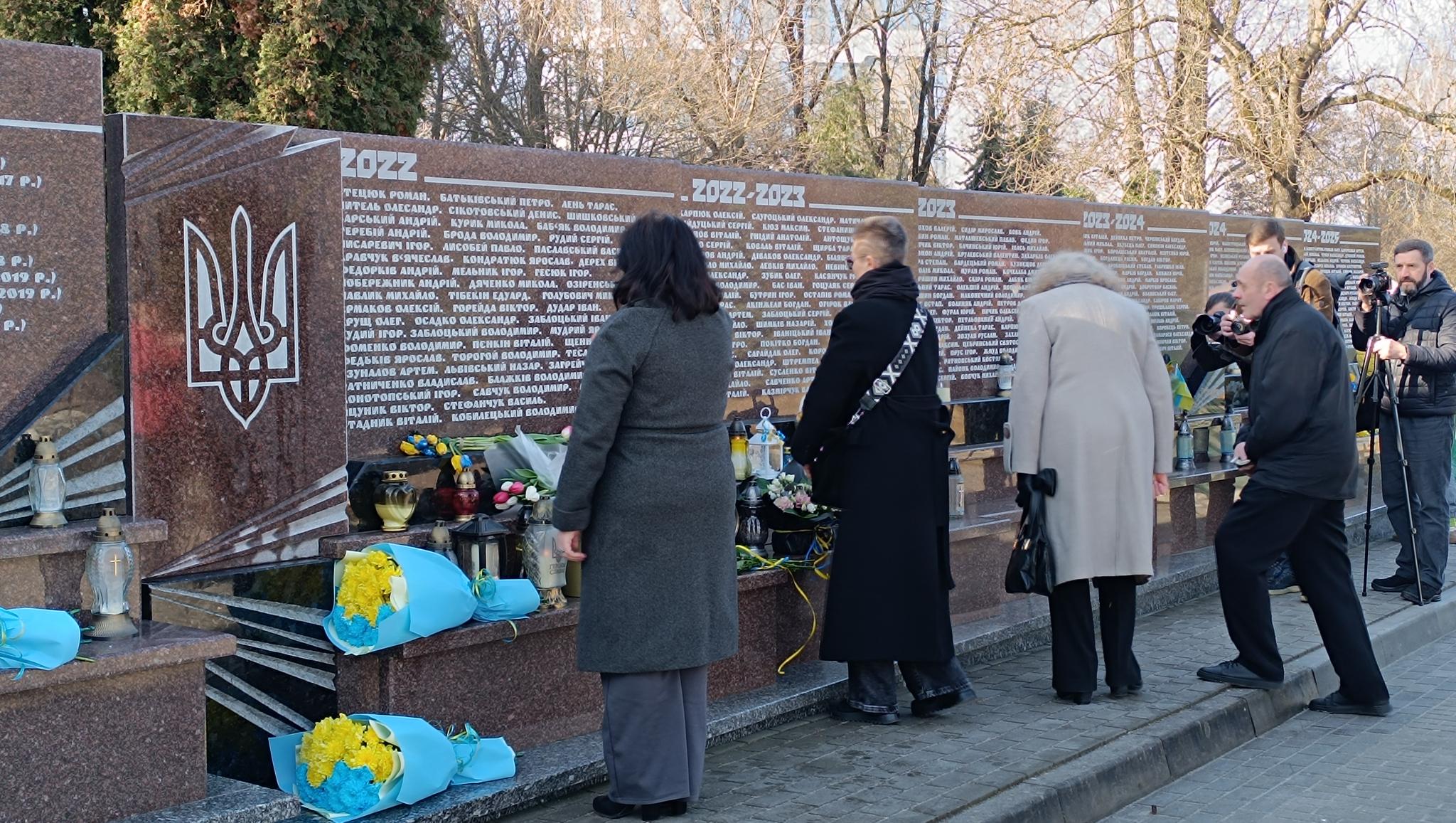 Родини полеглих Героїв поклали квіти до стелли, де викарбувані полеглі захисники нашої області із 2014 року.