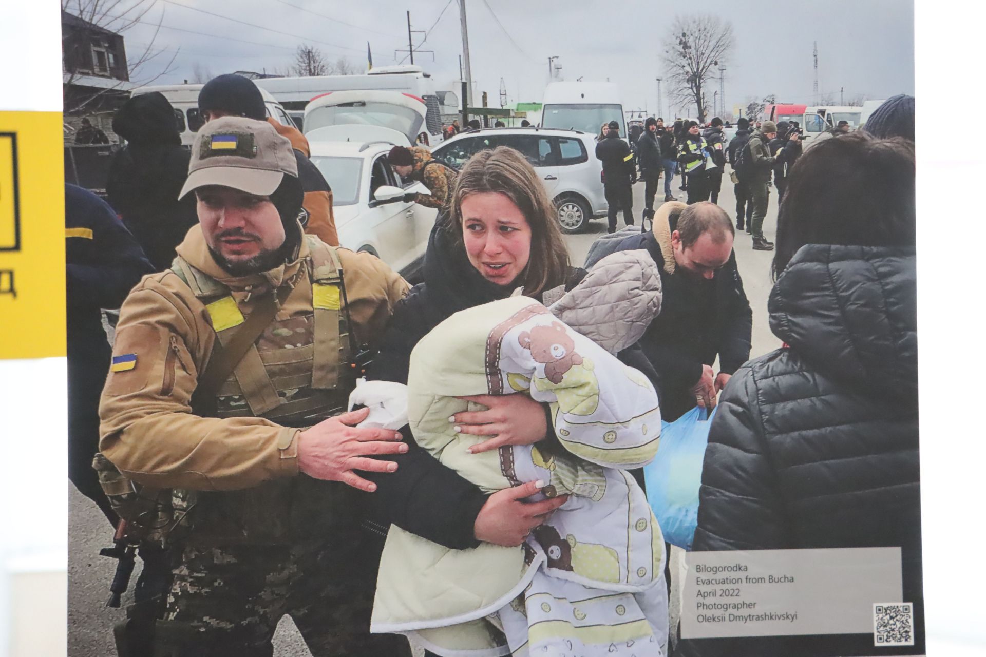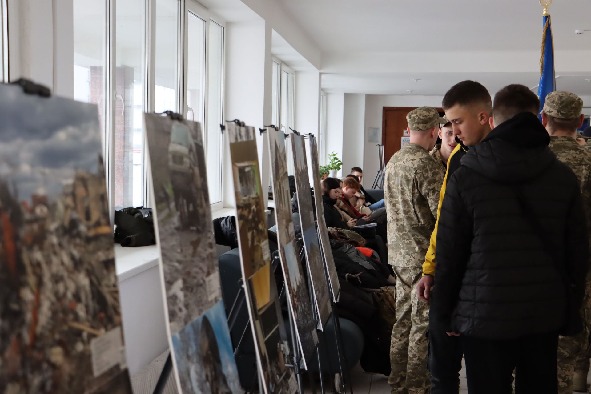 На фотовиставці «Довжиною у війну» у холі університету представили 80 світлин.