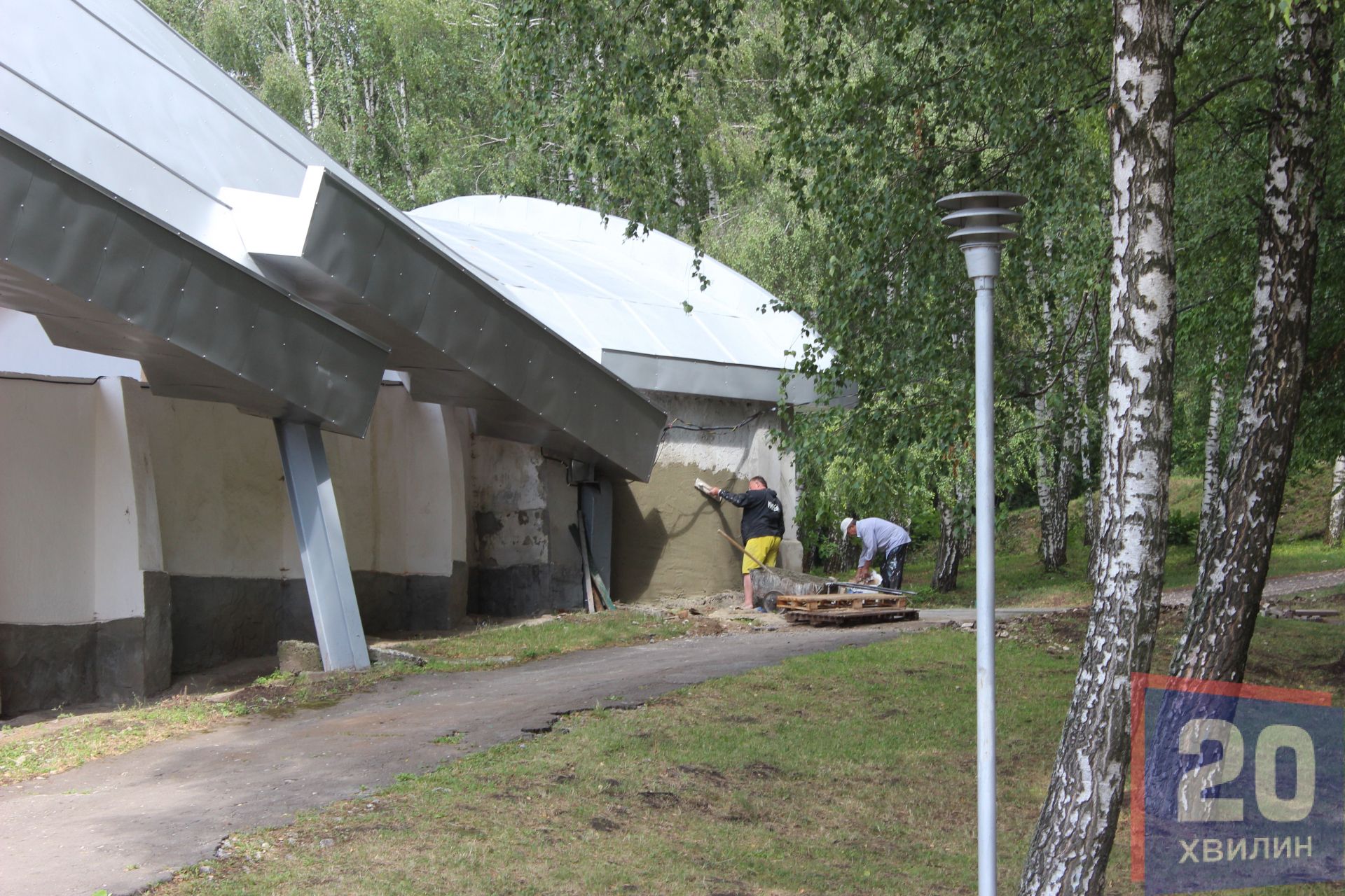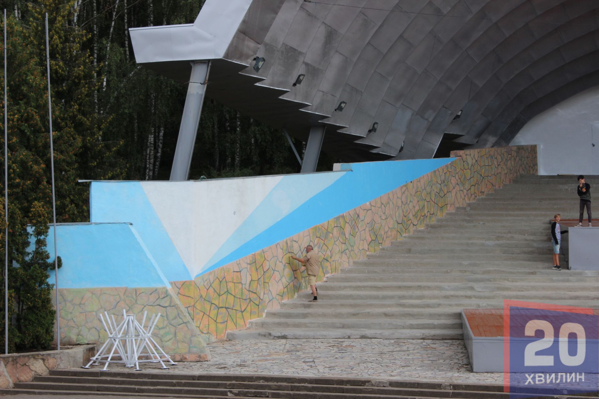 Металеву покрівлю сцени-«мушлі» повністю зняли та замінили її на нову, розповіли комунальники. Також встановили нові прожектори, помалювали стіни зсередини та ззовні. Днями мають привезти стенд з зображенням Тернополя та встановити його всередині сцени.