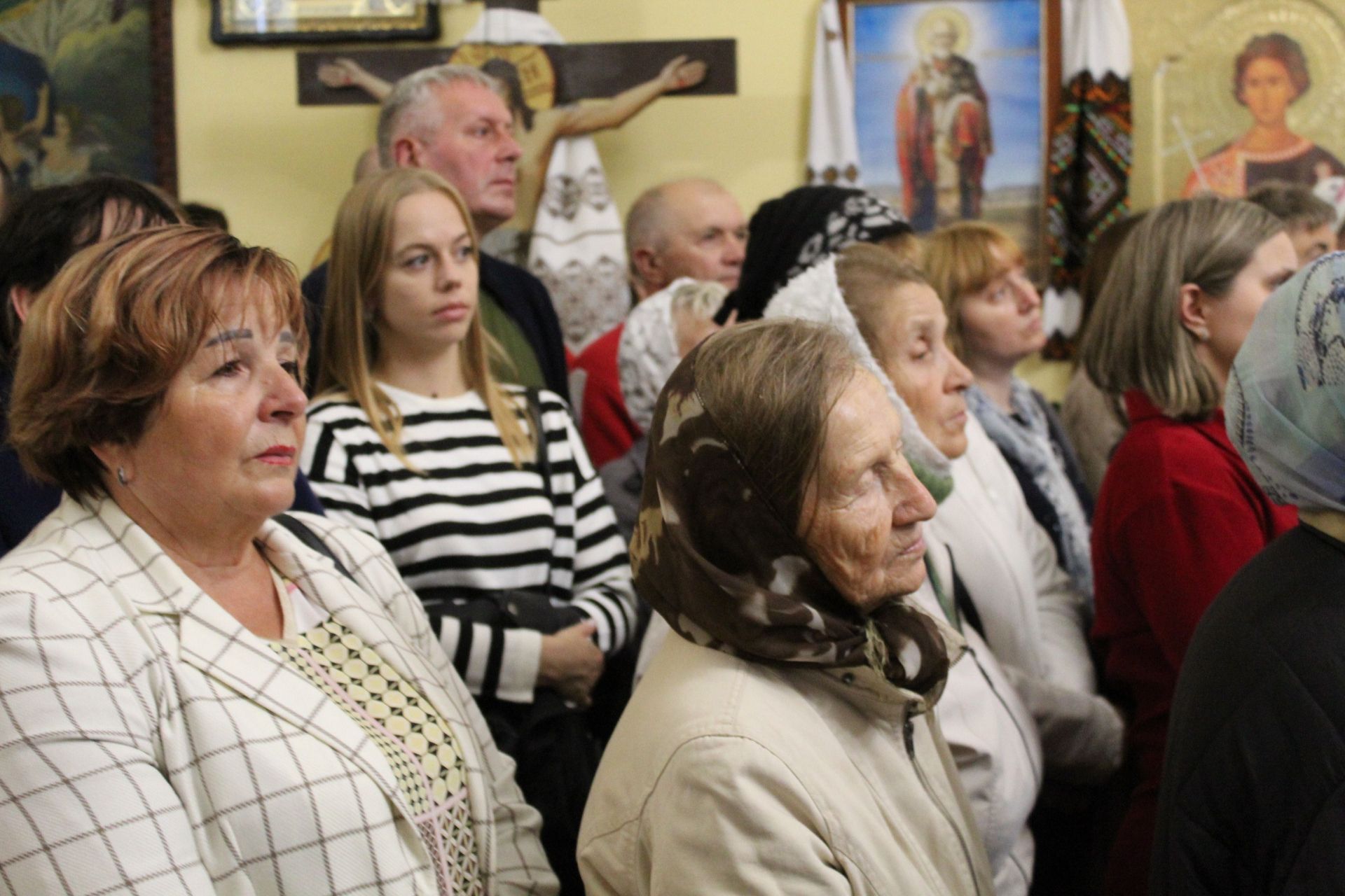 Попри сильну зливу, яка якраз розпочалась, у невеликій капличці перед майбутнім собором було ніде протиснутись. Тут зібрались сотні тернополян. Люди прийшли на зустріч з митрополитом цілими сім’ями, взяли малечу. Надворі за безпекою слідкували поліцейські.