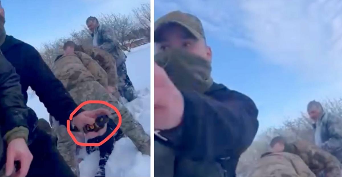 На відео, яке надіслали редакції, добре видно, що цивільного кинули на землю, лицем в сніг, б’ють, крутять та утримують кілька чоловіків у формі. Один з них кричить до іншого: «Добивай його. Добивай його, нах…й». Поруч також були жінки, які заступилися та намагалися завадити. Через це лунали погрози їхній бік.