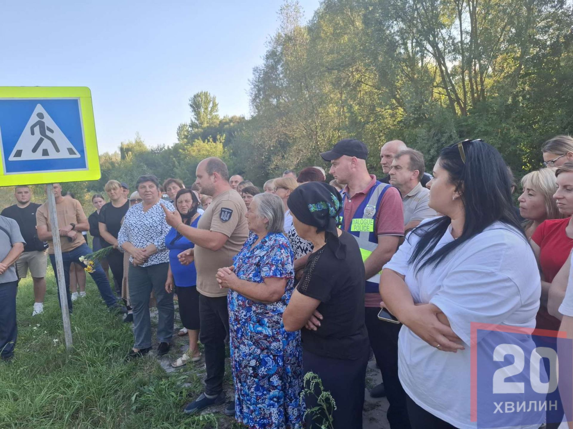 Надвечір 16 серпня люди зібралися, аби вимагати у місцевої та районної влади виселити військову частину, яка дислокується буквально в центрі села. Люди наголошують: вдячні всім військовим, і всі вже від початку повномасштабного вторгнення працюють для армії, допомагають їм. Більше того, майже у кожній родині хтось служить. Проте вимагають у влади пояснити, чому люди зі зброєю перебувають практично поруч зі школою і садочком. Де гарантія, що завтра ще хтось із місцевих не стане жертвою? На зустріч з місцевими мешканцями прийшли депутати, заступник міського голови Збаража Володимир Богачук, сільський староста та представники частини. Було чимало і поліції та представники поліції переговорів, адже емоції людей, які втратили близьких і хвилюються за свої життя і безпеку дітей, били через край.