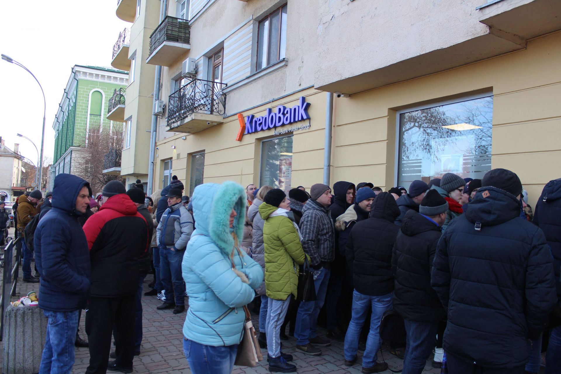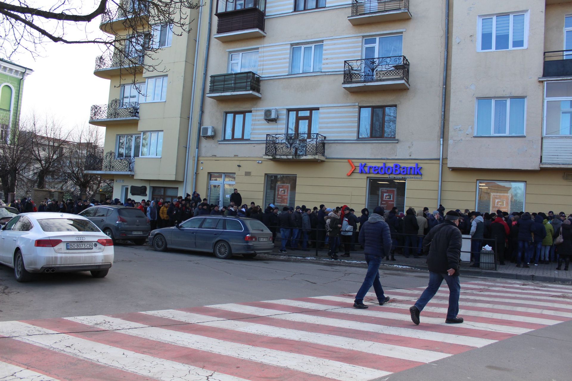 - Не один день у Тернополі біля відділень KredoBank та IdeaBank є черги людей, які планують їхати за кордон. Усі вони хочуть заплатити за візу та поїхати на заробітки.