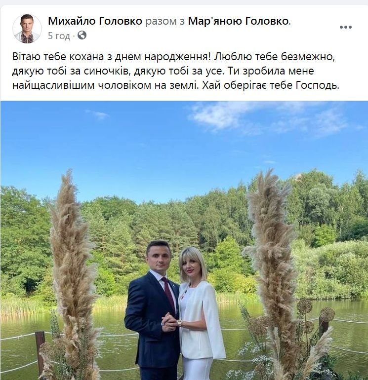 Ці ж, чи подібні слова справді є у нинішньому повідомленні на офіційній сторінці Михайла Головка. Там голова облради вітає свою дружину, запевняє, що любить безмежно, дякує за синів. Та зізнається, що дружина зробила його найщасливішим чоловіком на землі.