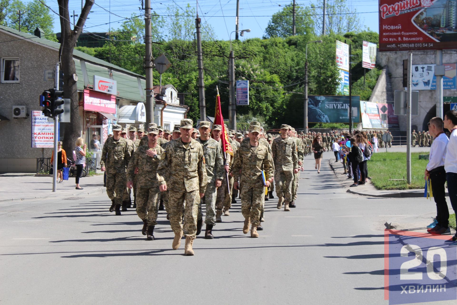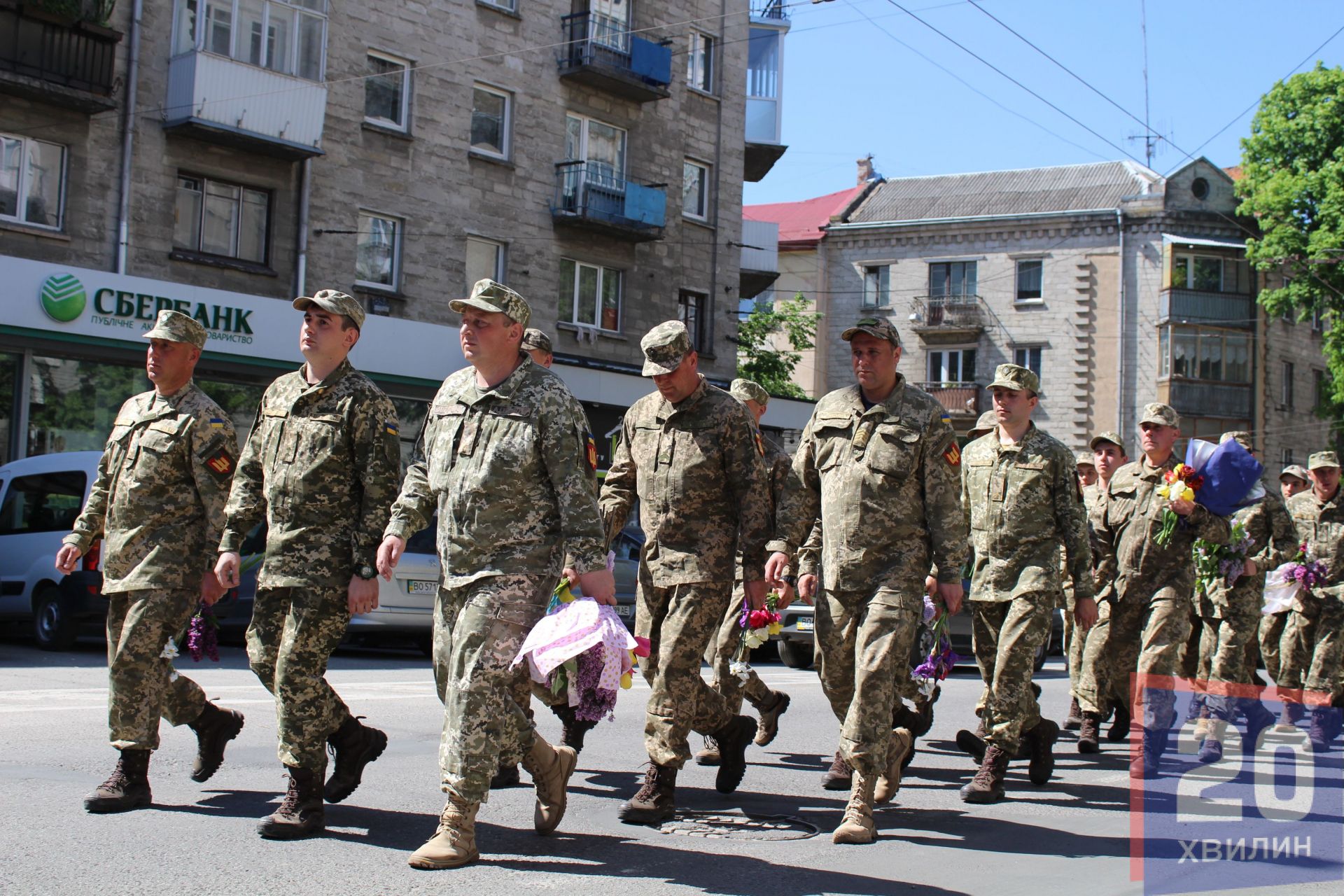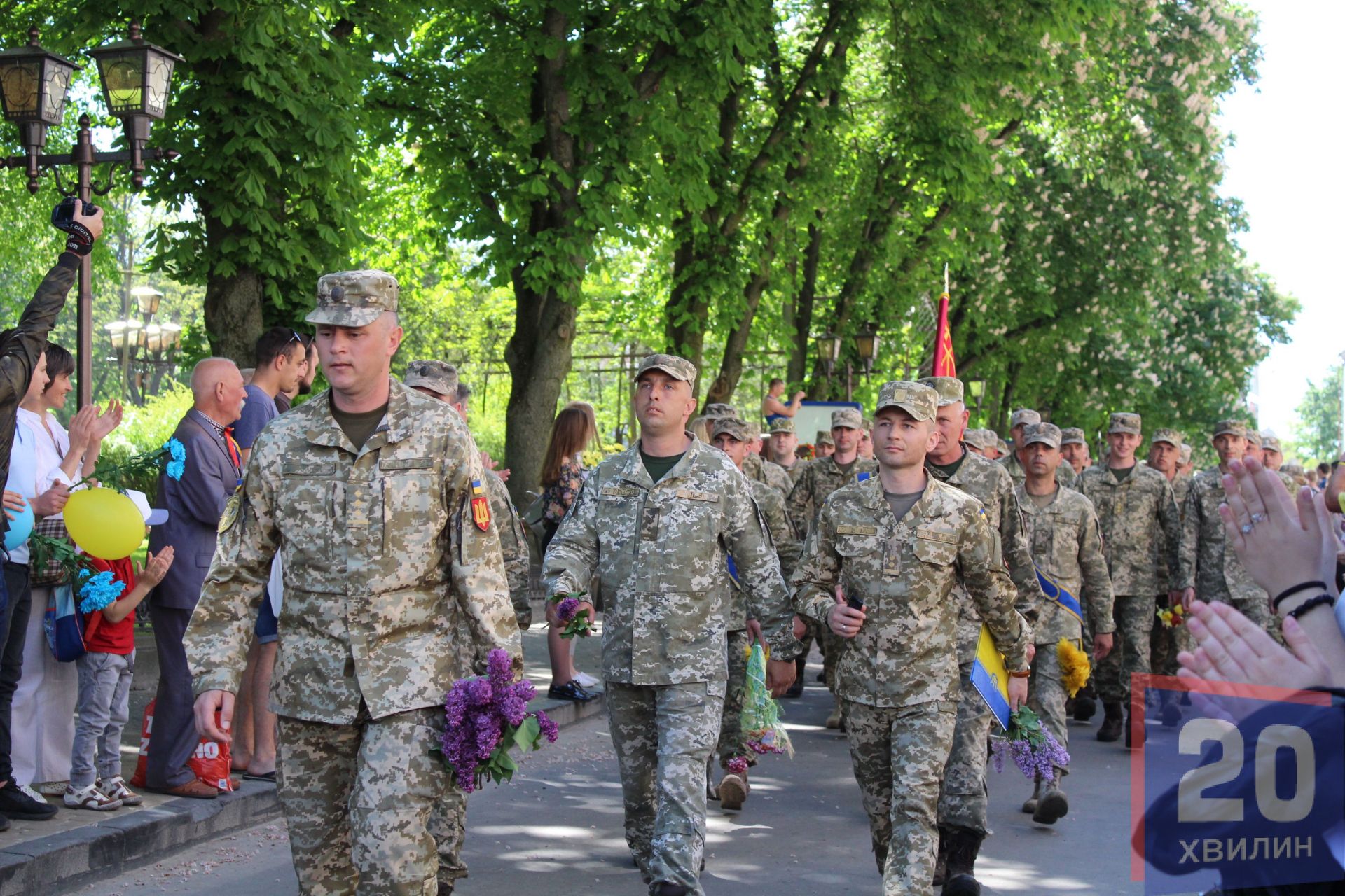 Військові пройшли маршем центральними вулицями міста з бойовим прапором на Театральний майдан. Там на них чекали чимало людей: рідні, близькі, волонтери та просто вдячні тернополяни.