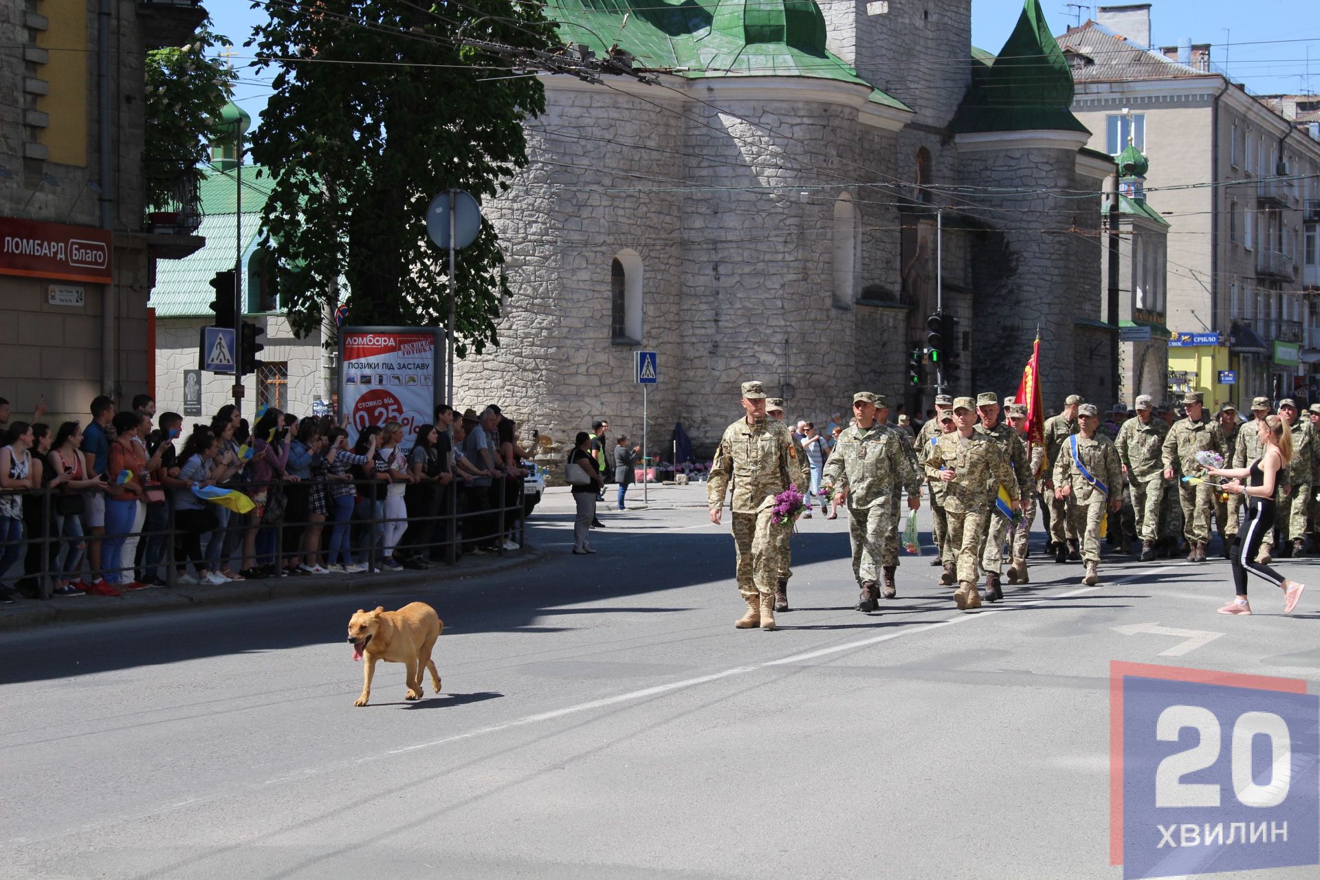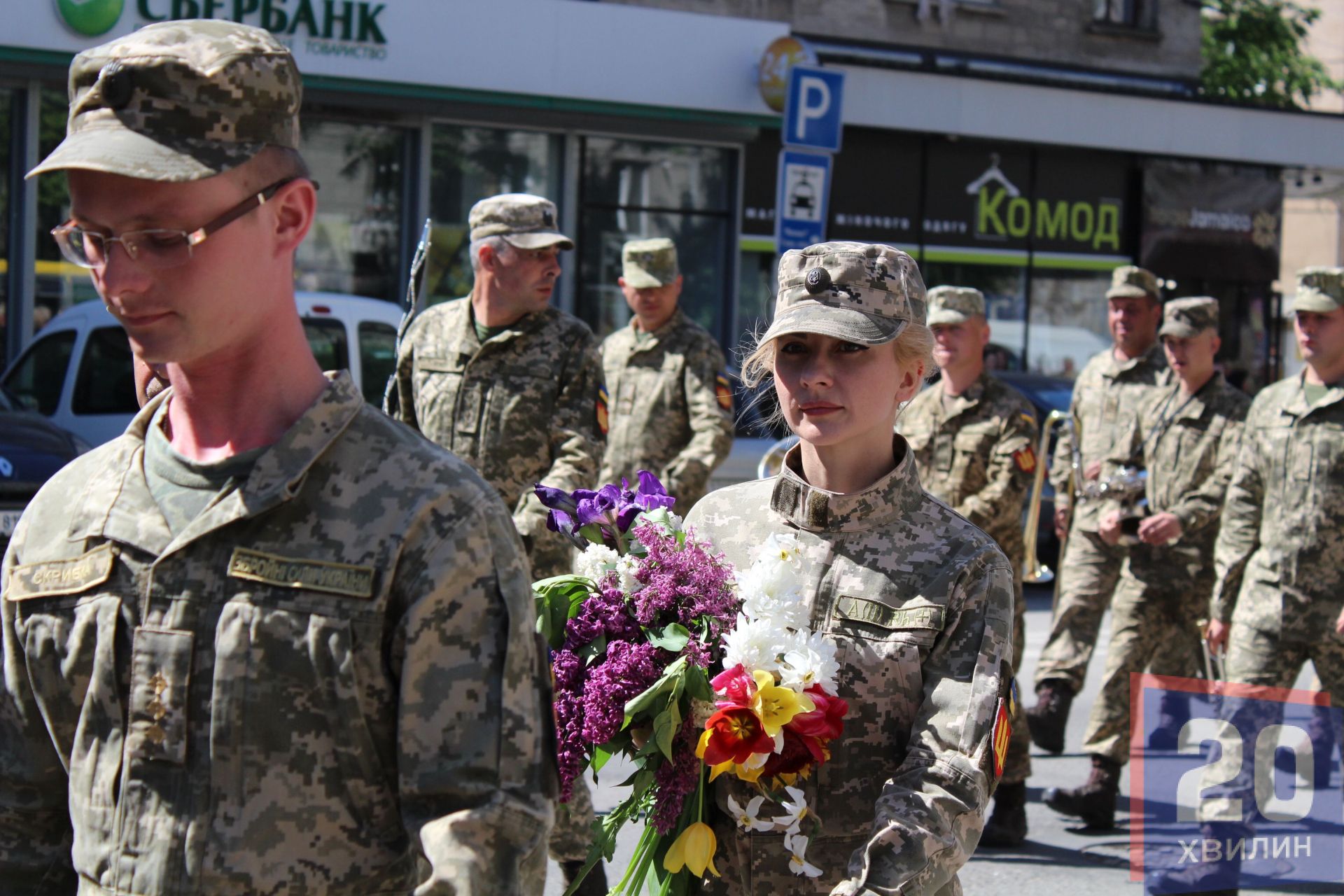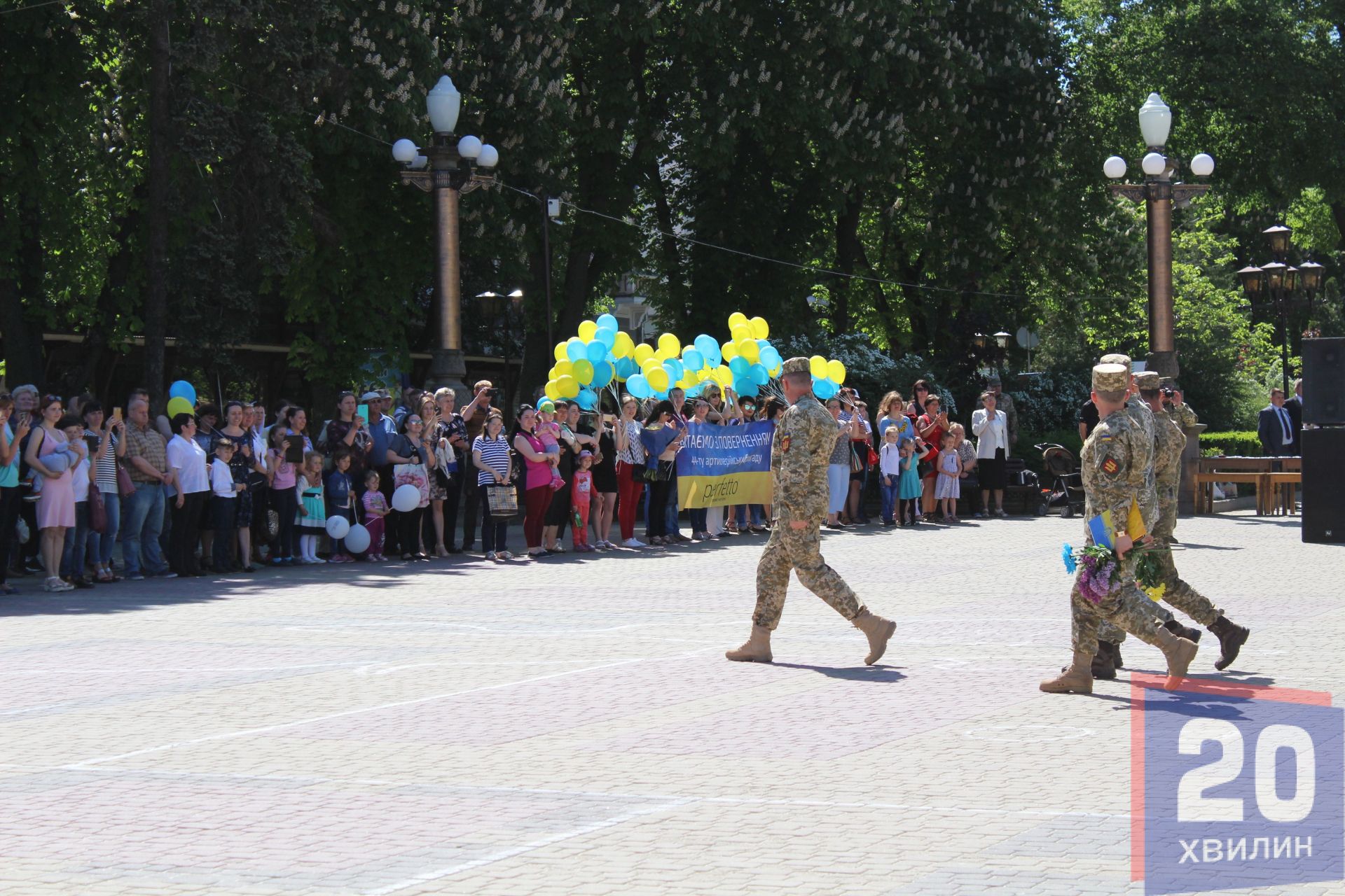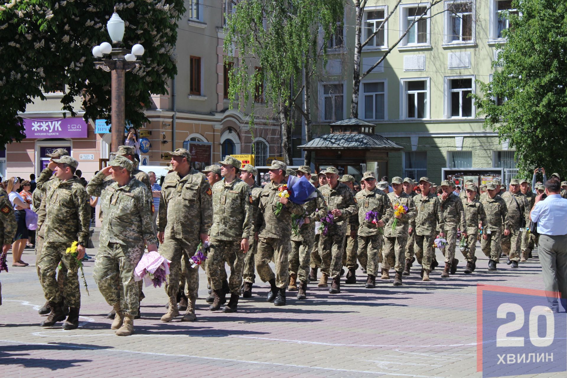 Військові пройшли маршем центральними вулицями міста з бойовим прапором на Театральний майдан. Там на них чекали чимало людей: рідні, близькі, волонтери та просто вдячні тернополяни.
