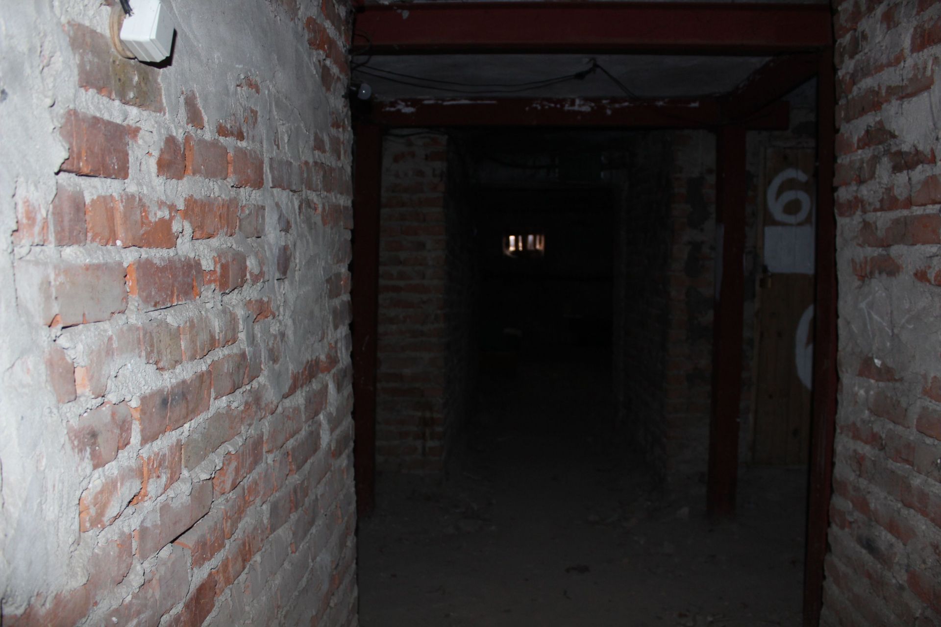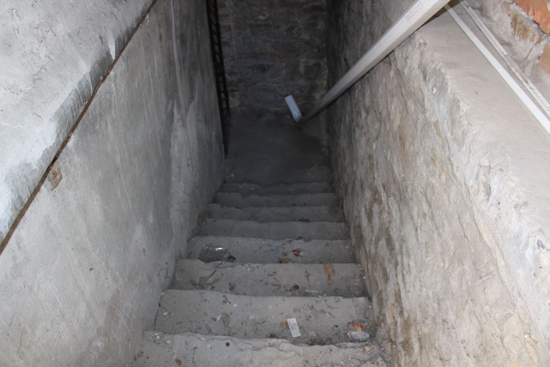 Наприклад, на вулиці Замковій ми побачили напис, що вказував на двері до підвалу. Перші двері були відчинені. За ними – сходи. Однак потрапити у підвал не вдалося – там була решітка із замком. Помітно, що підвал прибирали і мотлоху там немає.