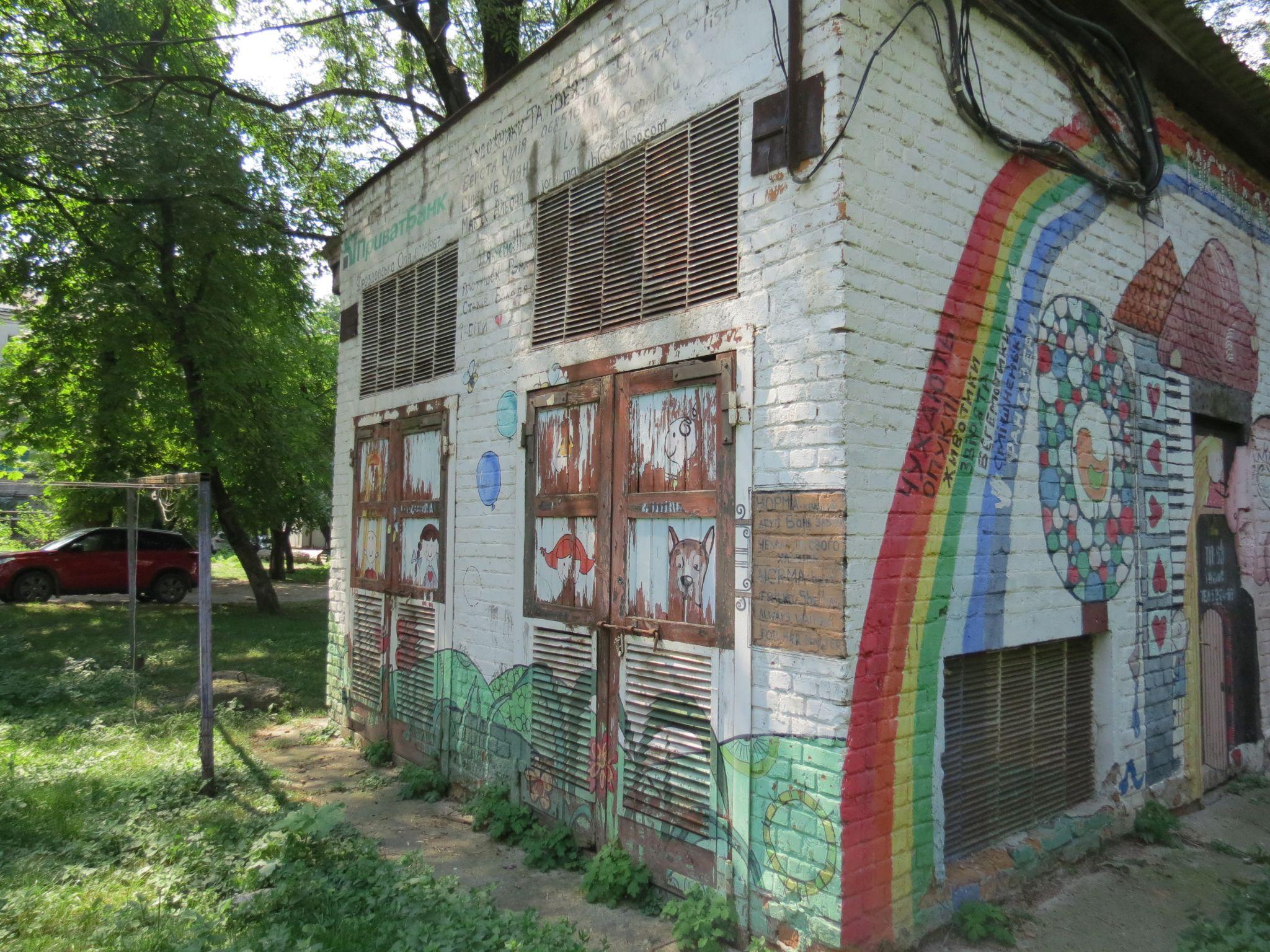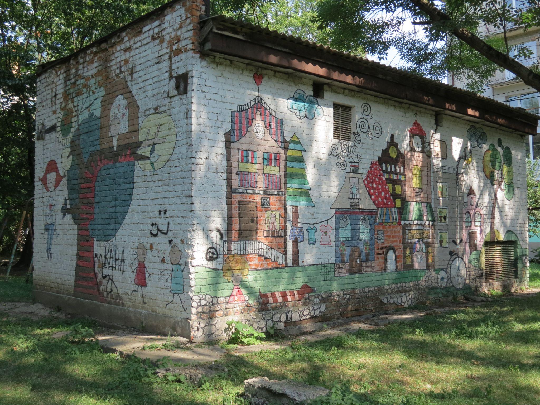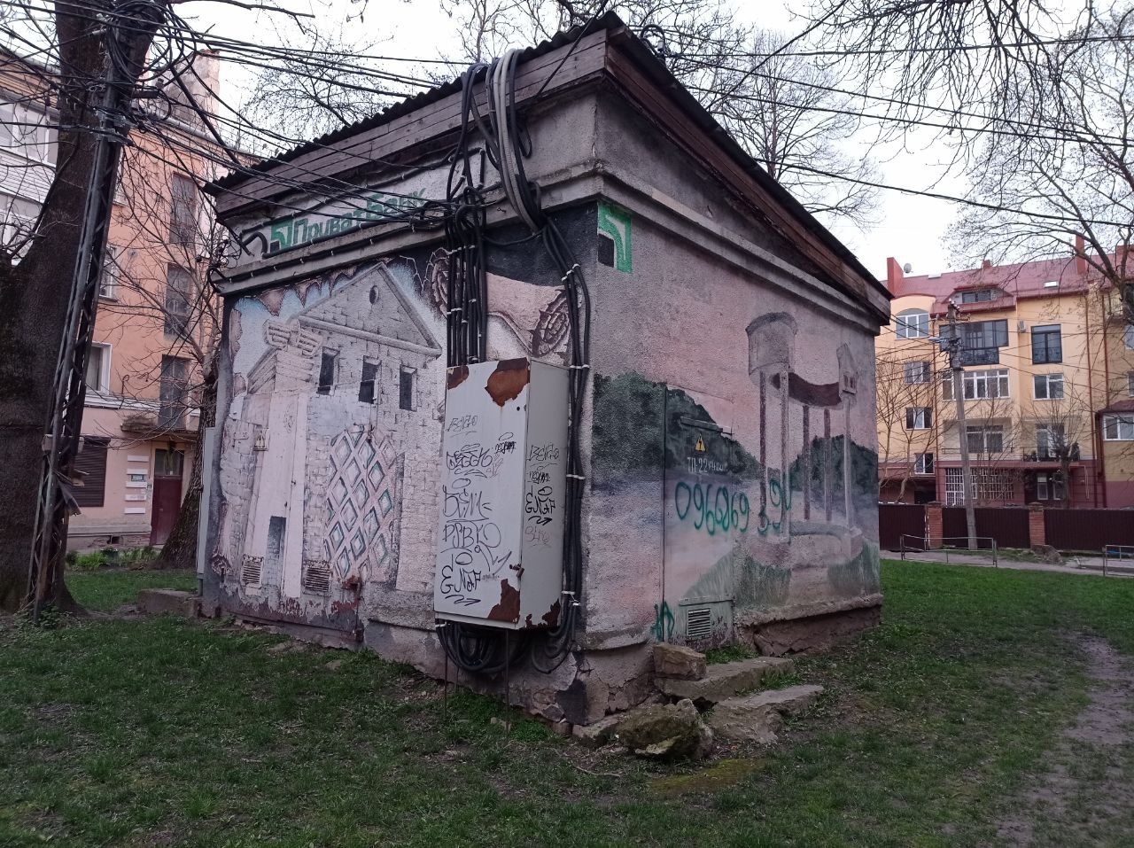 На подвір'ї будинку 1А на вулиці Старий ринок трансформаторне приміщення прикрашене дитячими малюнками.