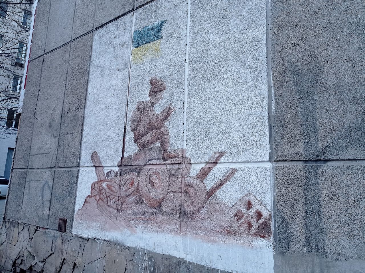 На вулиці Наливайка є малюнок на патріотичну тему.
