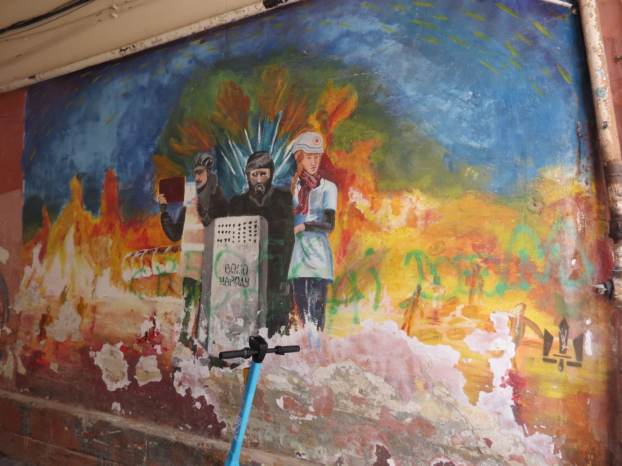 Неподалік головного управління Національної поліції є малюнок, часів Революції Гідності.