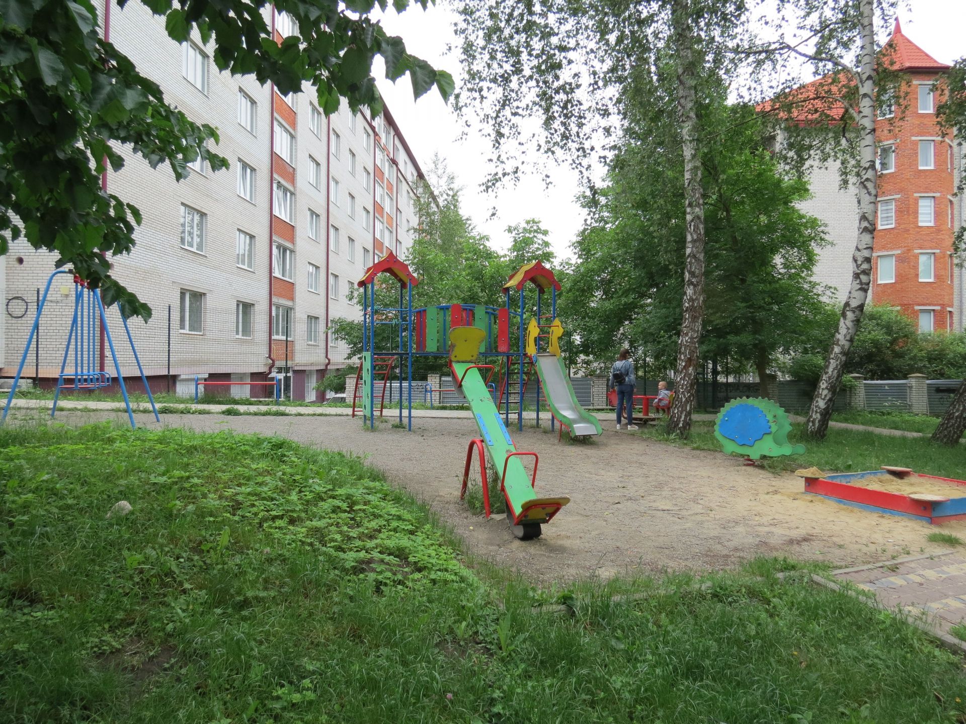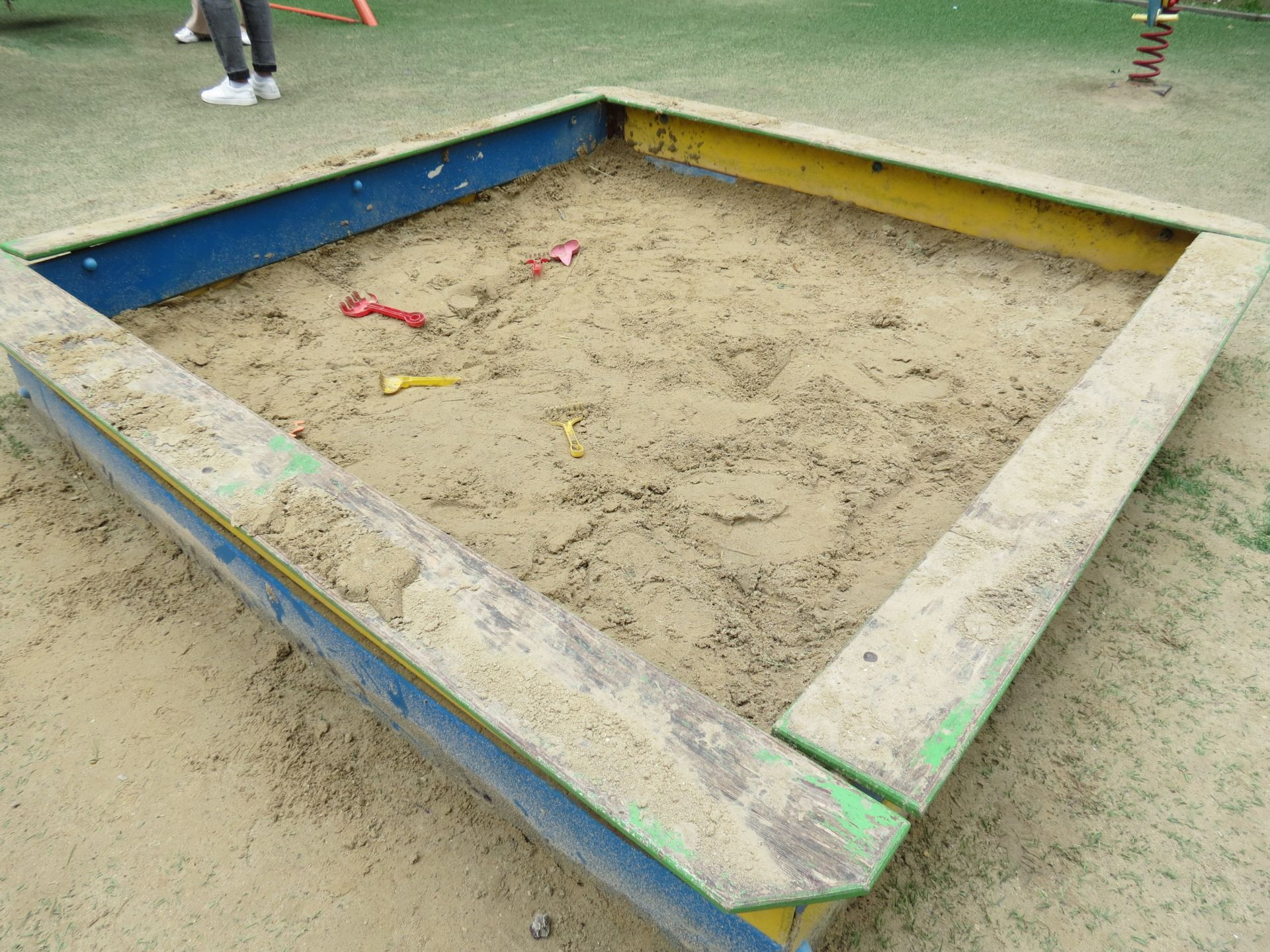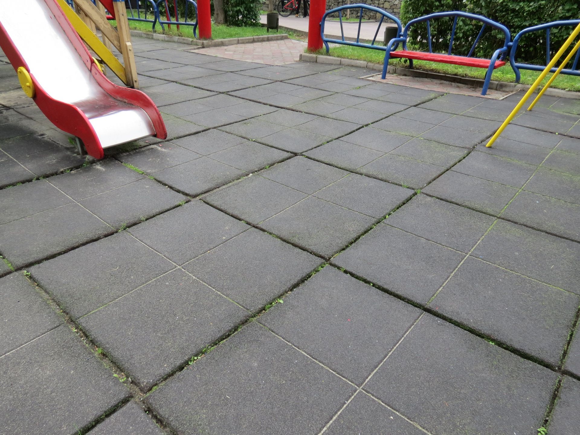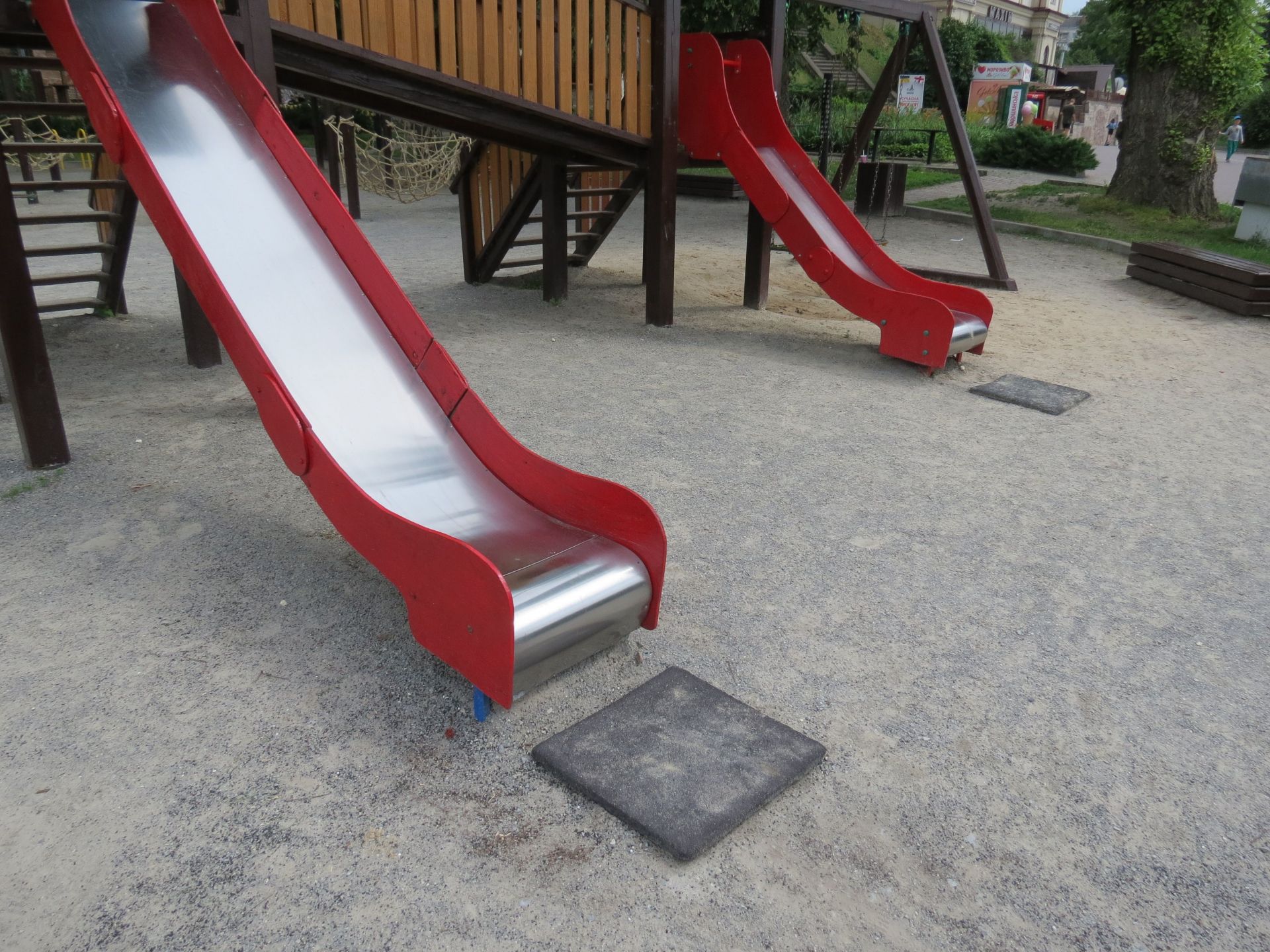 Біля атракціонів є ще один дитячий майданчик. Там – ще гірка, гойдалки, пісочниця. Безпечного м’якого покриття немає. Раніше на майданчику лежало кілька бетонних плит, через які можна було спіткнутися. Їх нарешті забрали.