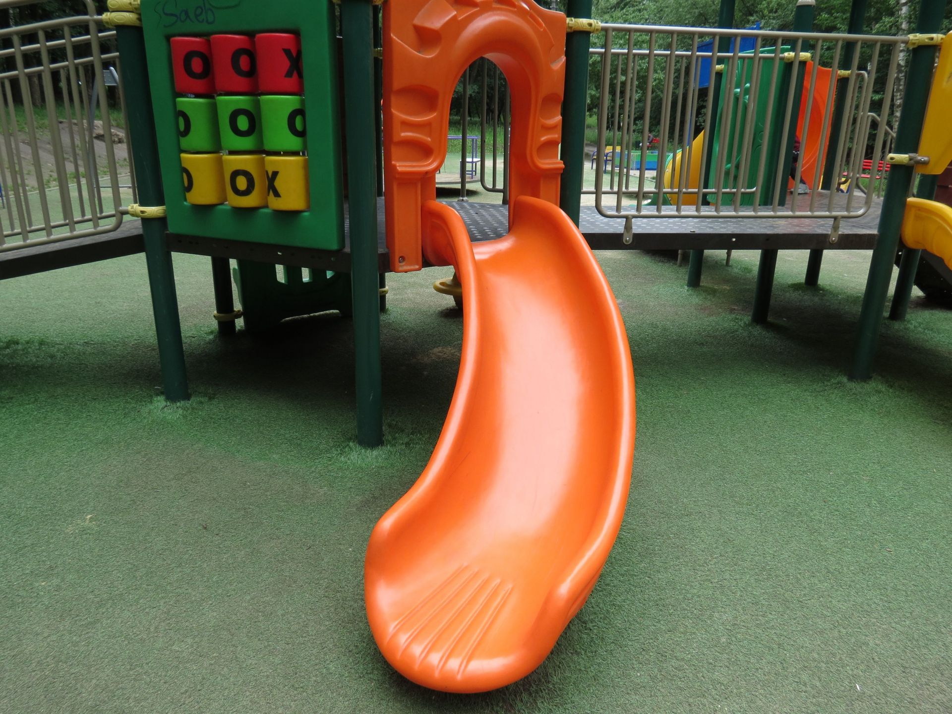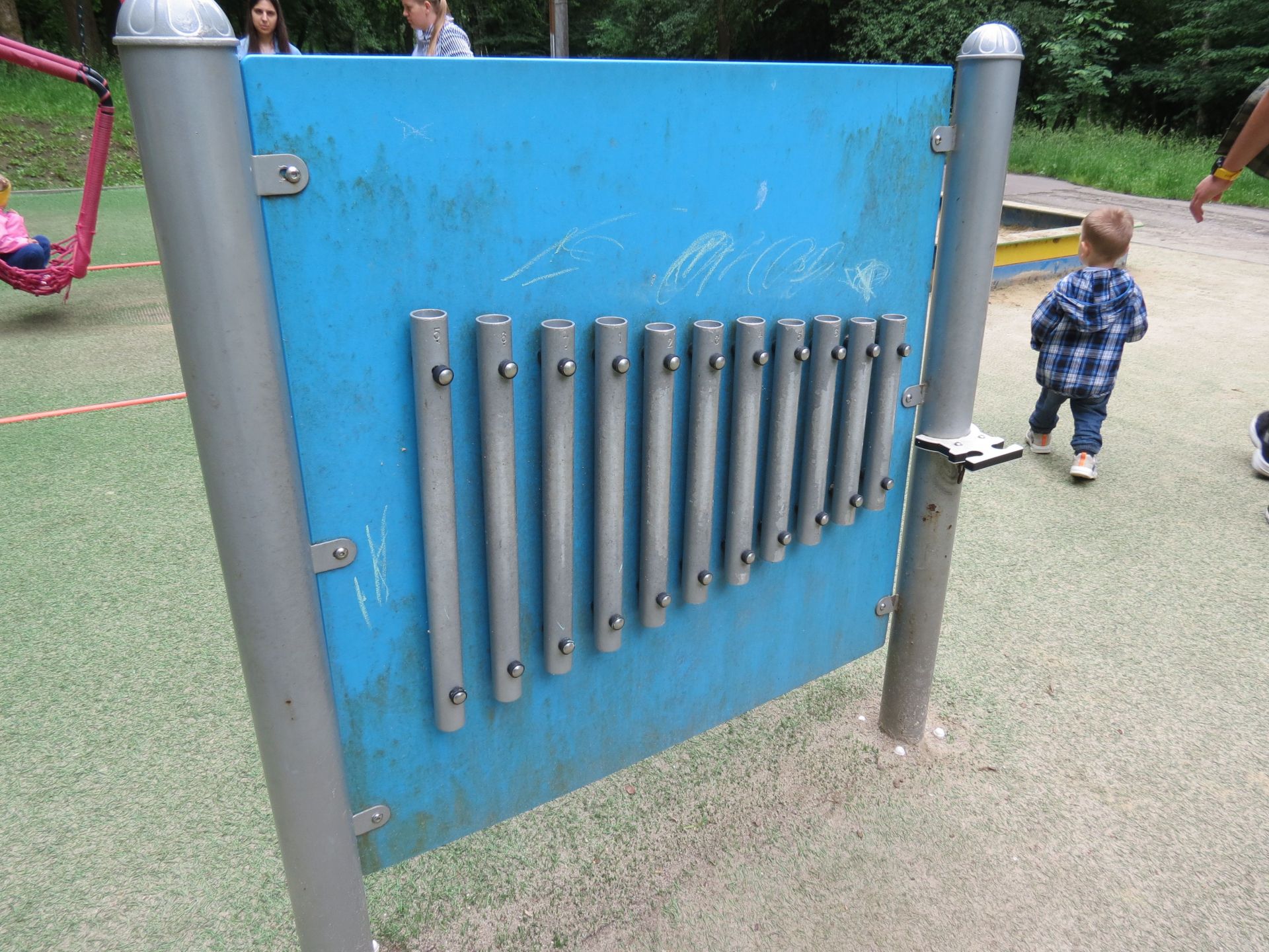 Найсучасніший майданчик у цьому парку – інклюзивний майданчик. Всі ігрові елементи пристосовані для дітей з інвалідністю. На карусель чи ігровий комплекс можна заїхати на інвалідному візку. Також є навчальні елементи. Однак деякі вже понищені. Хтось вкрав молоточок для ксилофону. Навчальний стенд для мови жестів брудний. Ігровий комплекс в написах. Майданчик має м’яке покриття зі штучної трави.