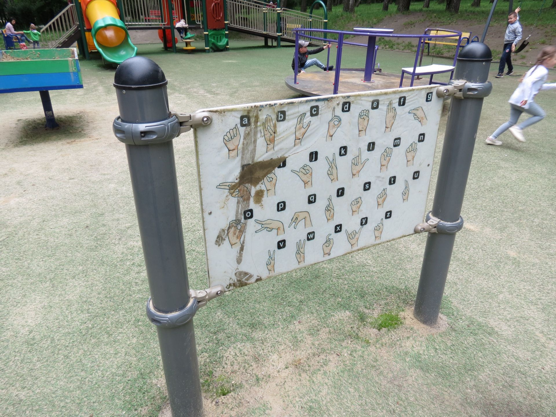 Цей майданчик пристосований для дітей з інвалідністю. Частина гойдалок та каруселі пристосовані до інвалідних візків.