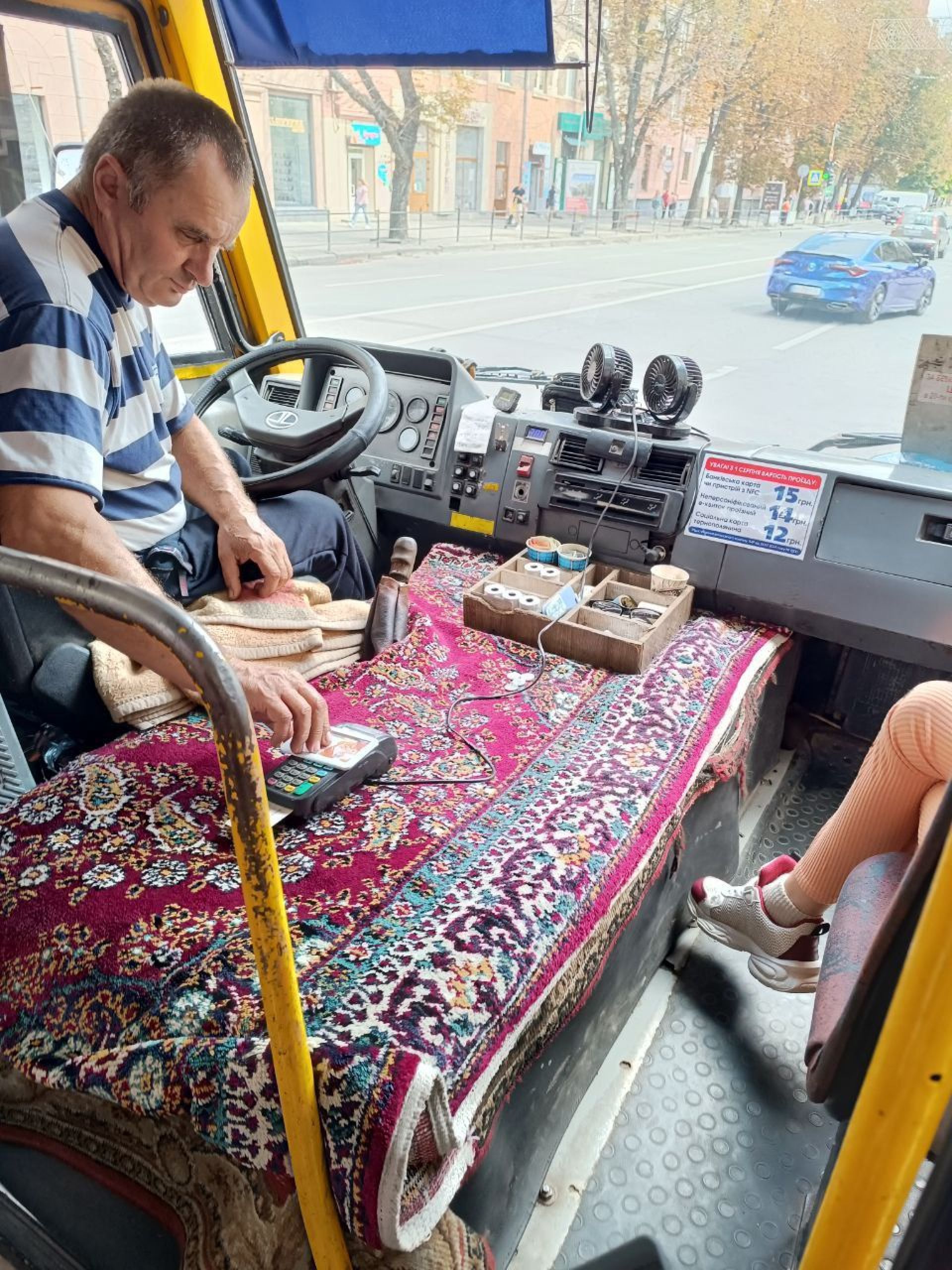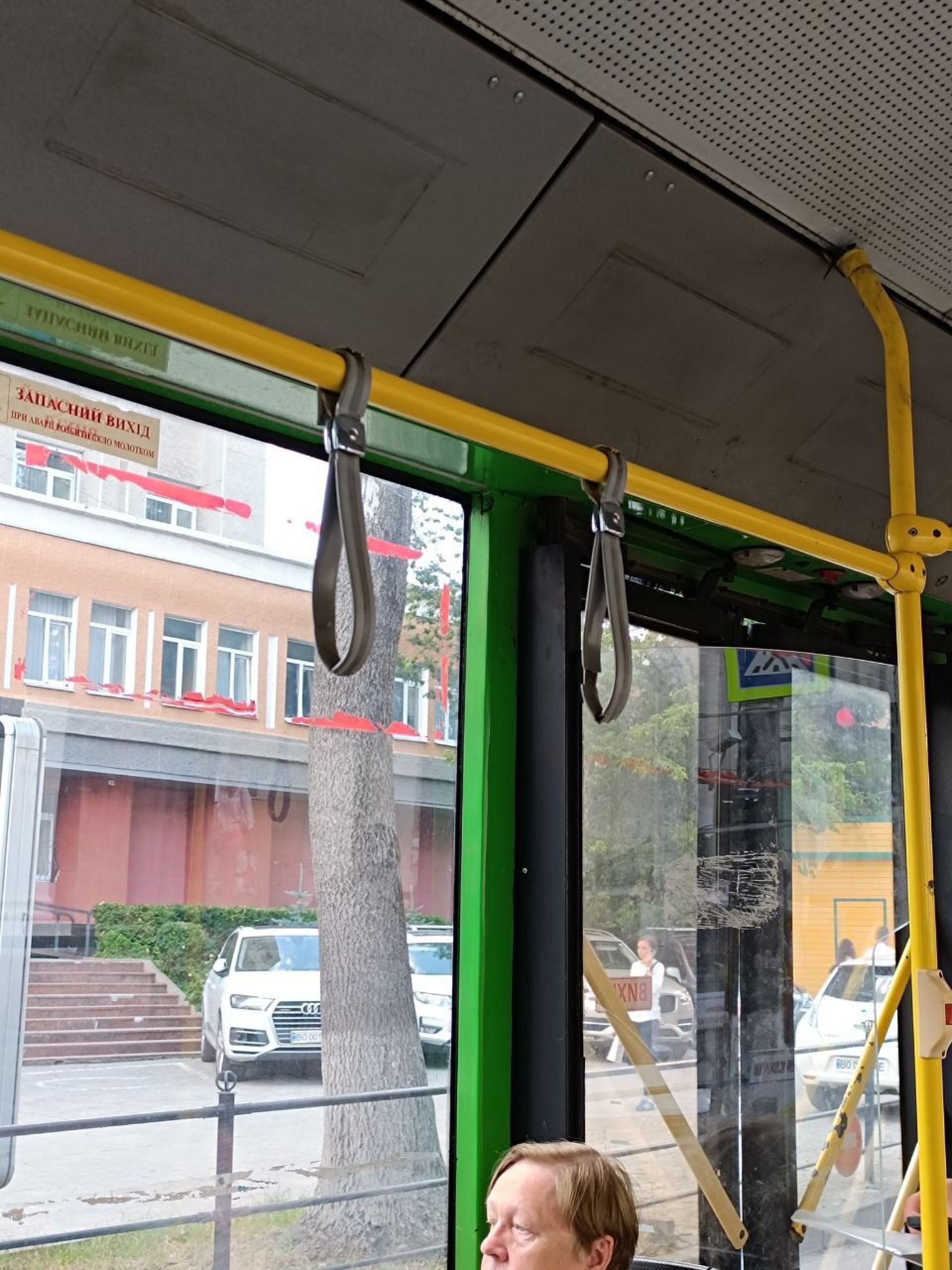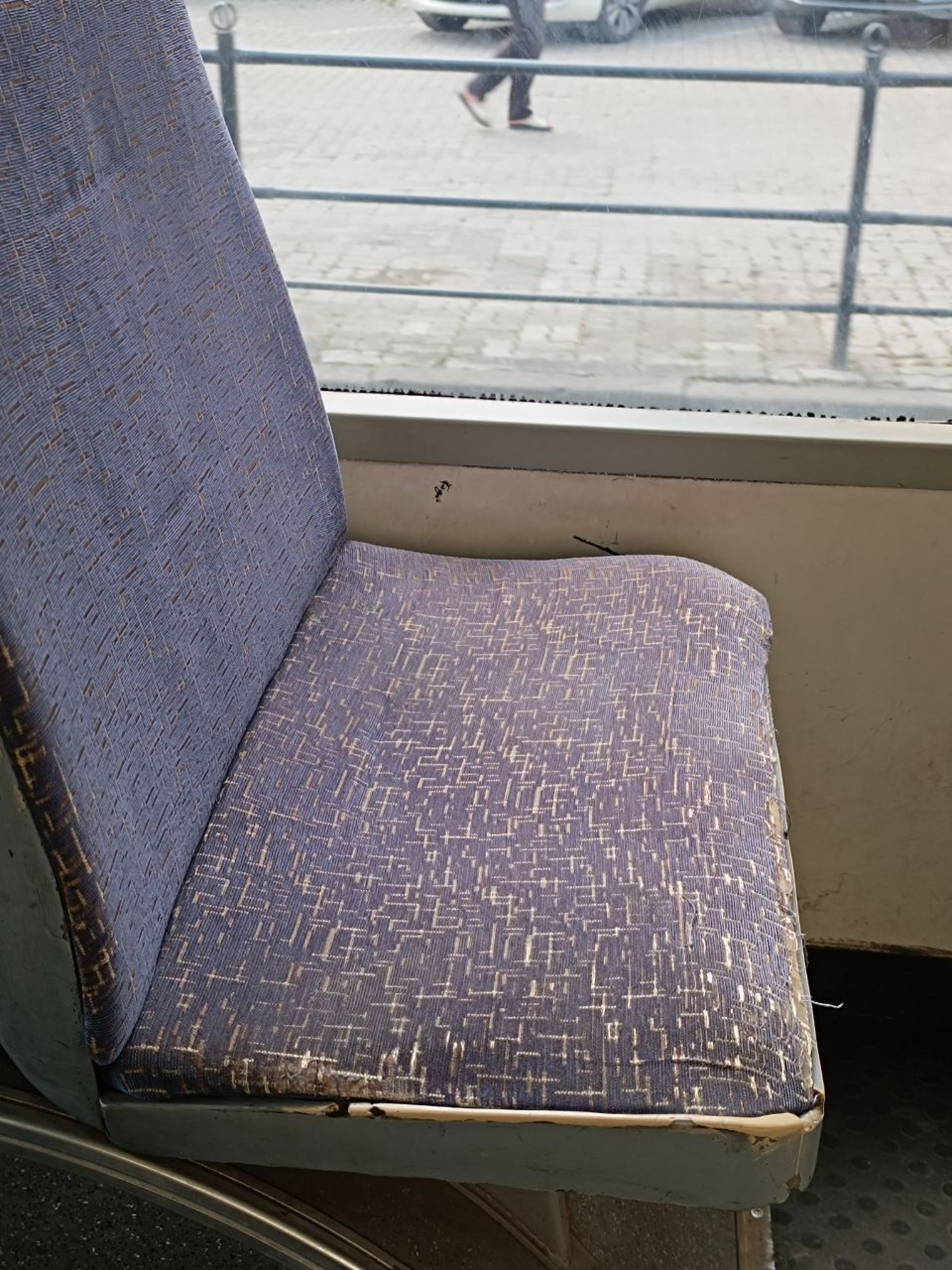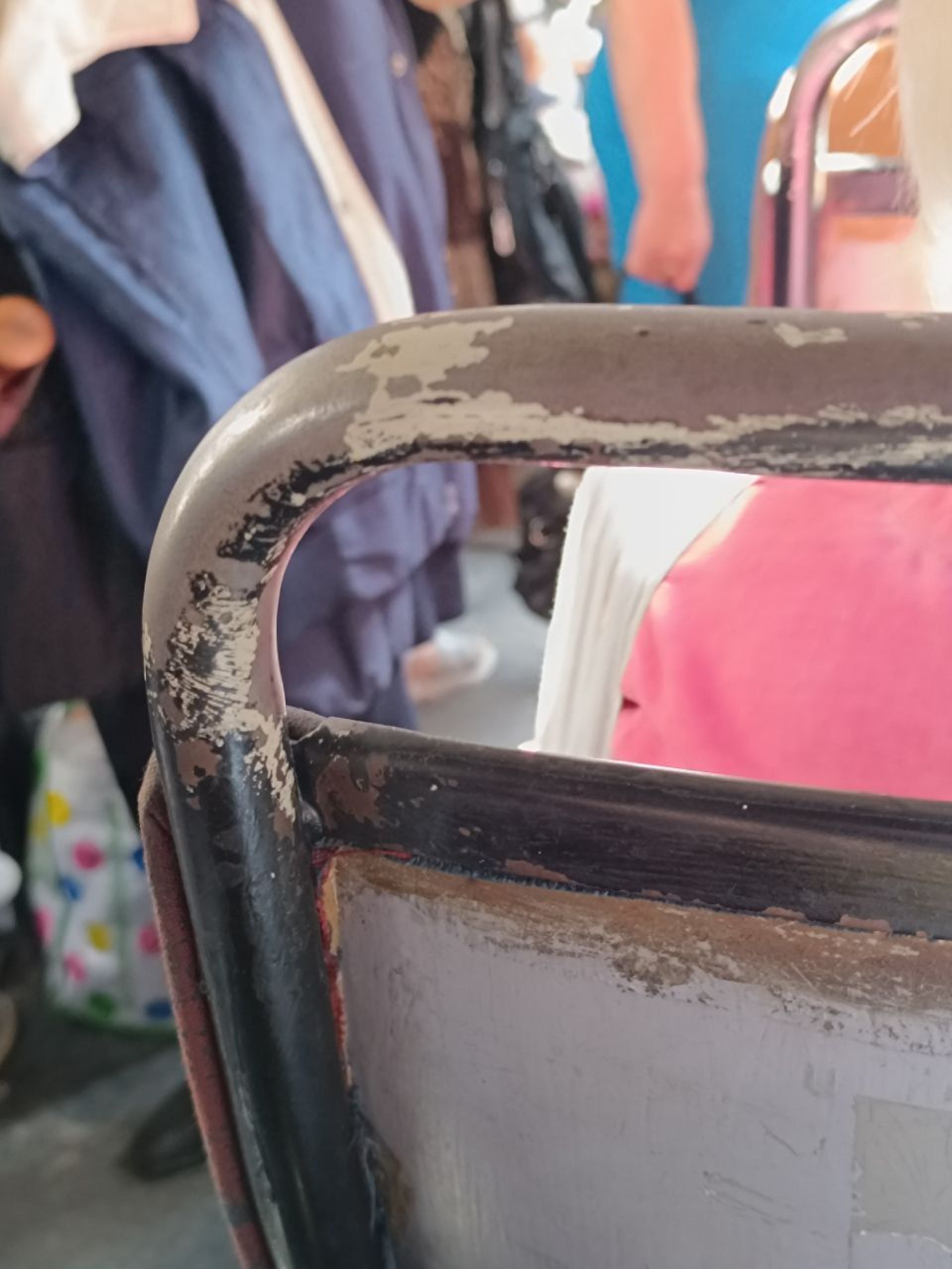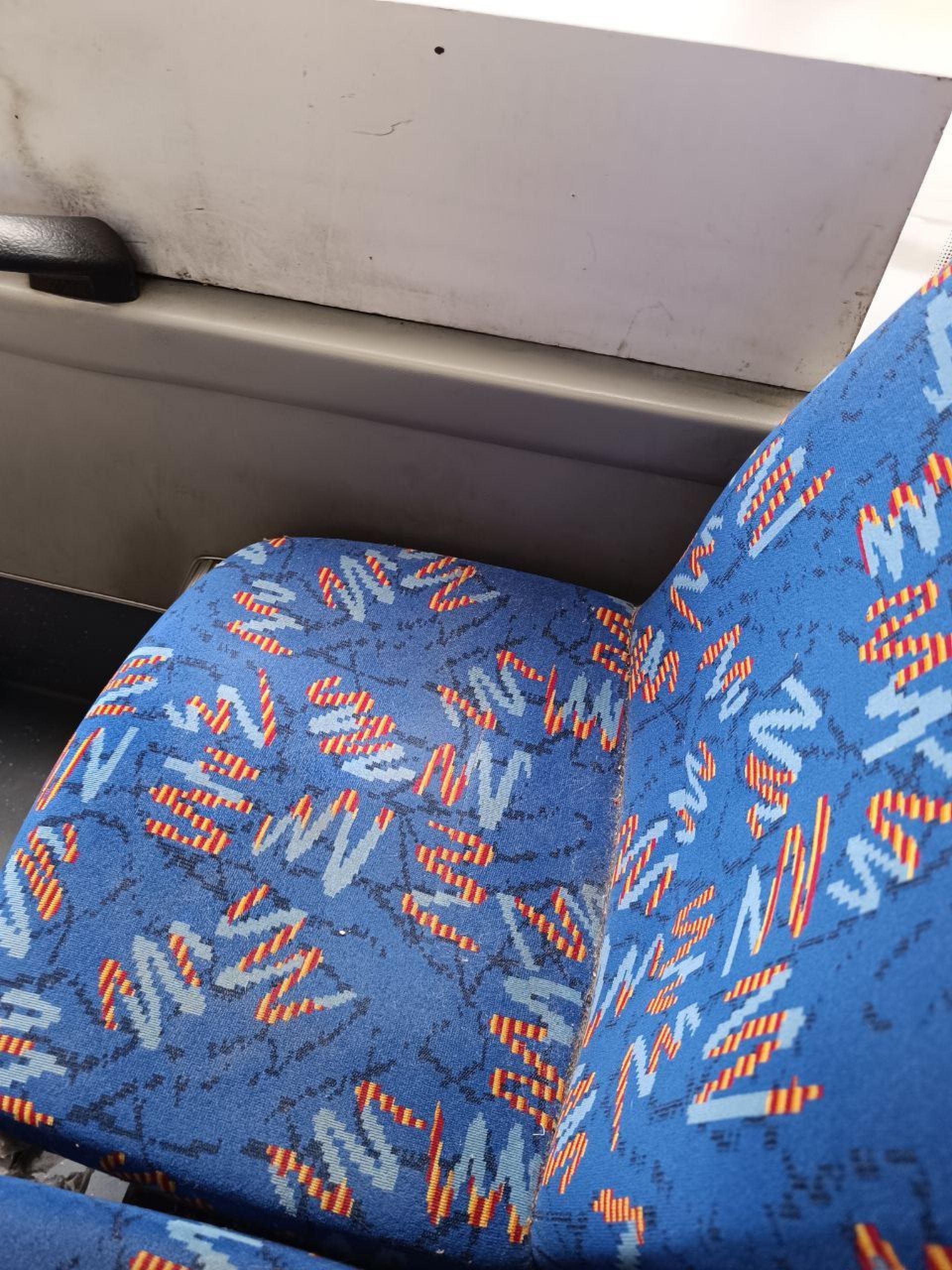 Салон був брудний. Стіни в незрозумілих слідах бризків, потьоках та старому бруду. Деякі ремені для тримання були зламані. Під час поїздки у автобусі гуркотять панелі. Вони погано закріплені та складається враження, що вони можуть відвалитися та впасти на голову пасажирам.