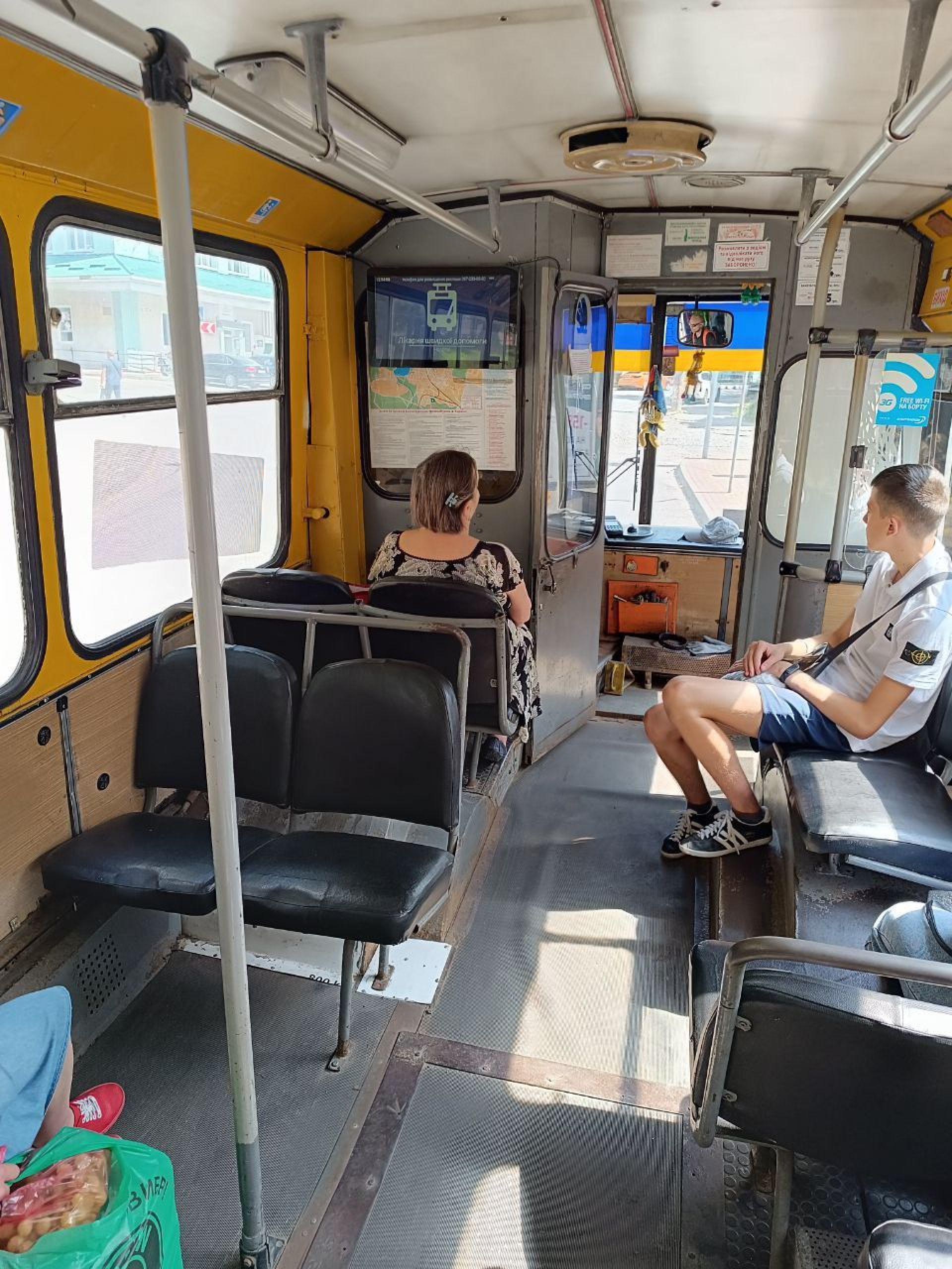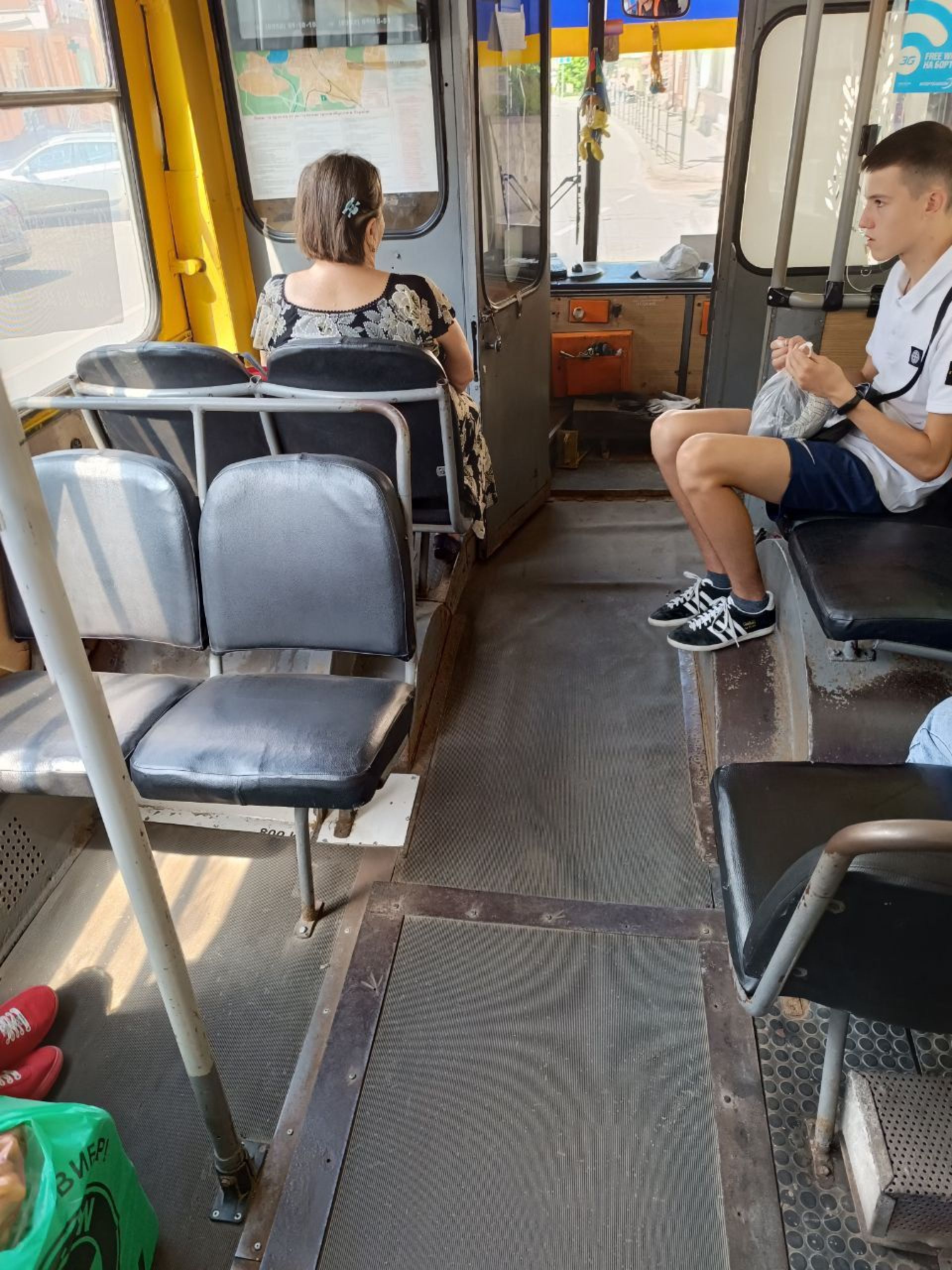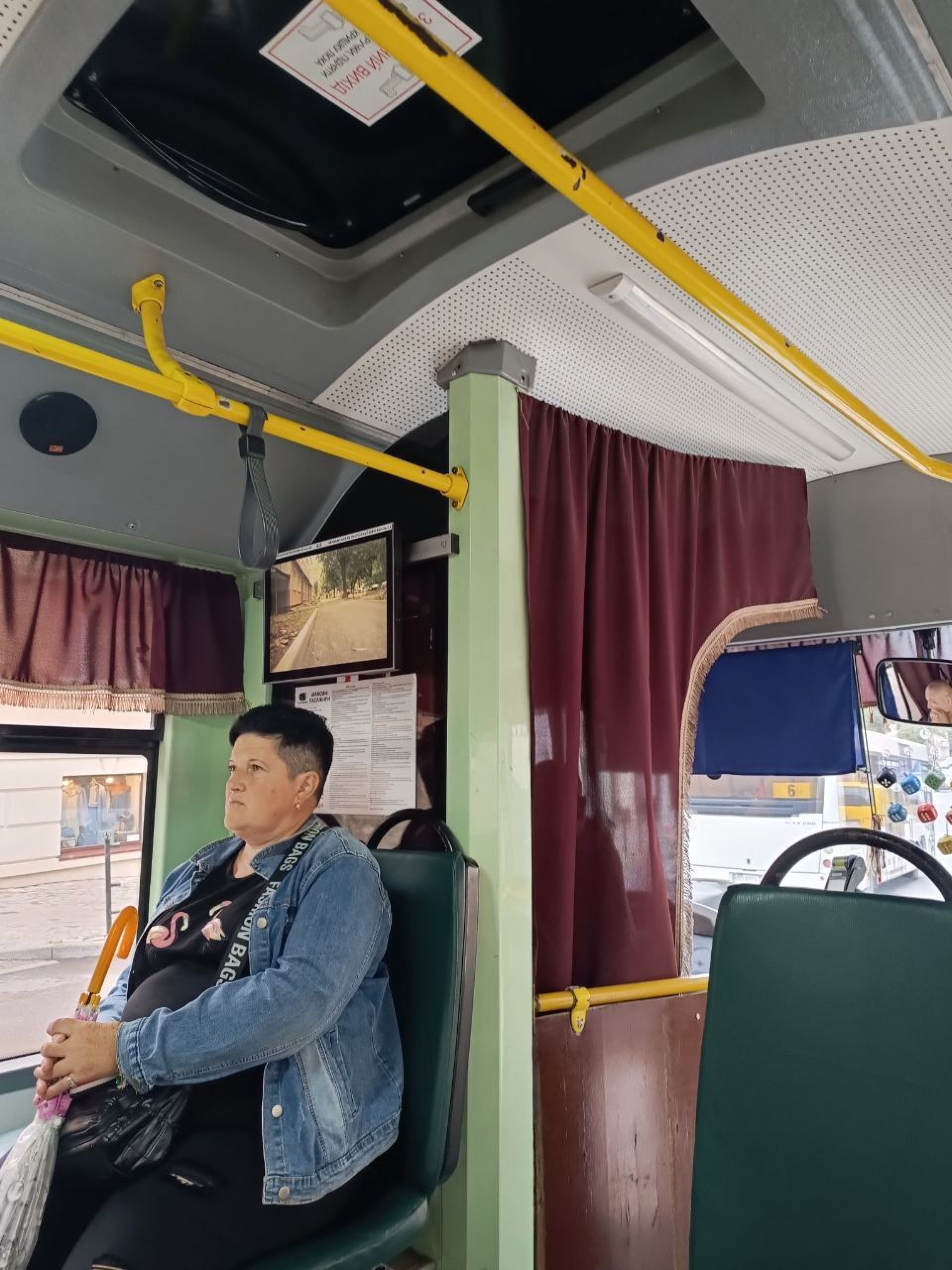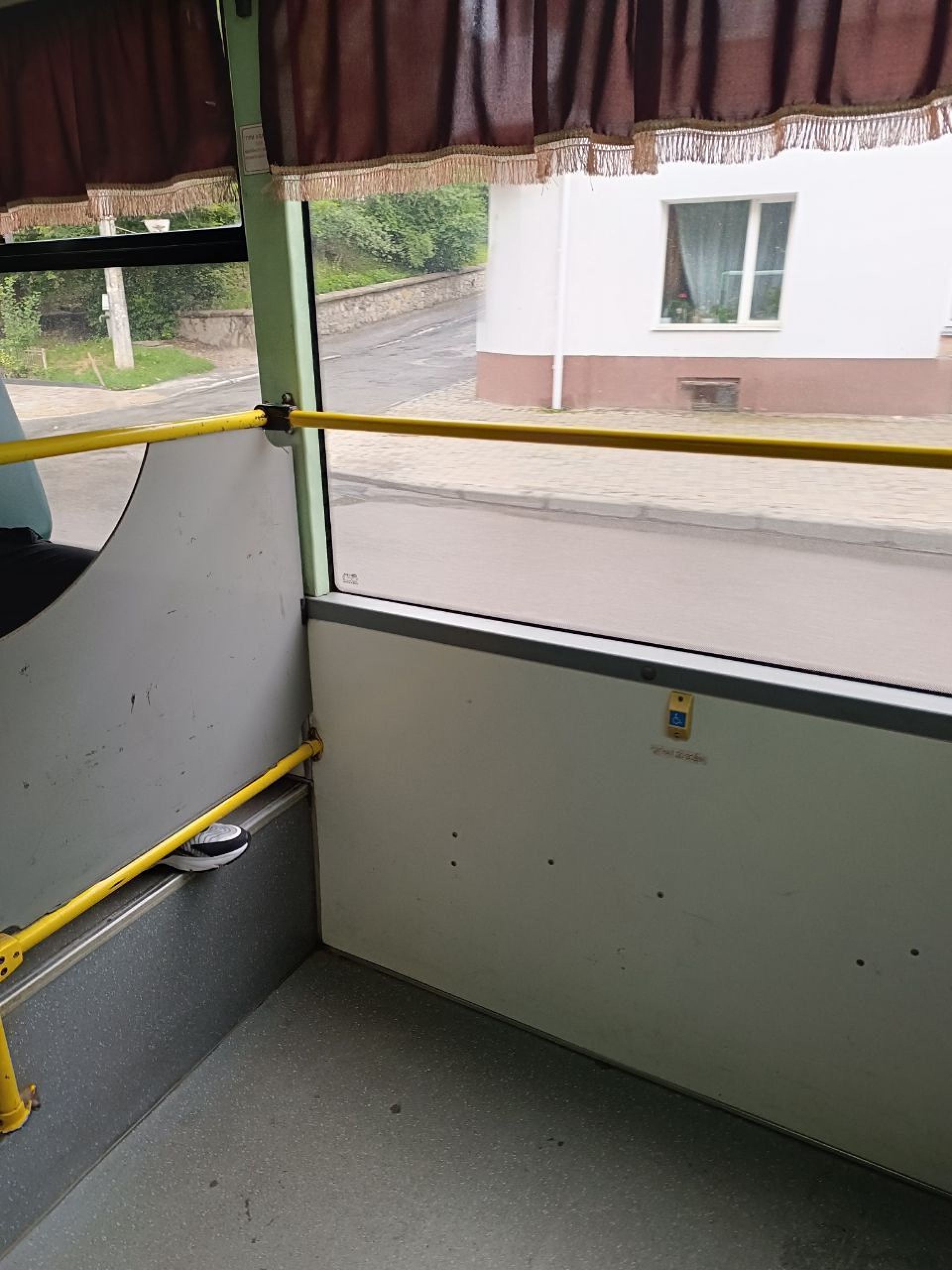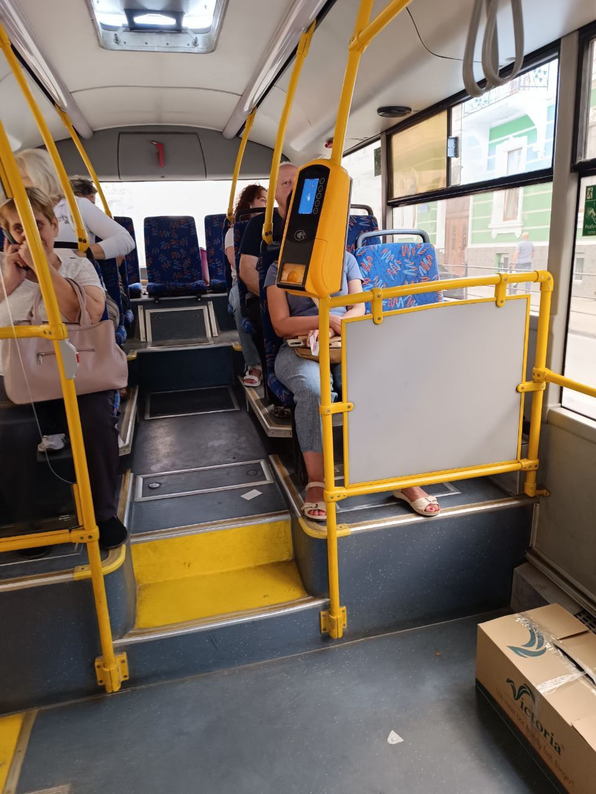 Це великий низькопідлоговий автобус. У ньому є місця для дитячих візків та крісел колісних, яке розташоване на центральному вході. Салон був чистий. Сидіння не брудні. Від сонця є шторки, які закривають верхню частину вікон.