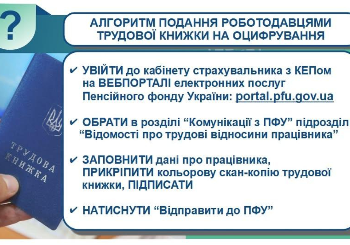 Для швидкого подання трудової книжки на оцифрування роботодавцям необхідно виконати чотири кроки через портал Пенсійного фонду: