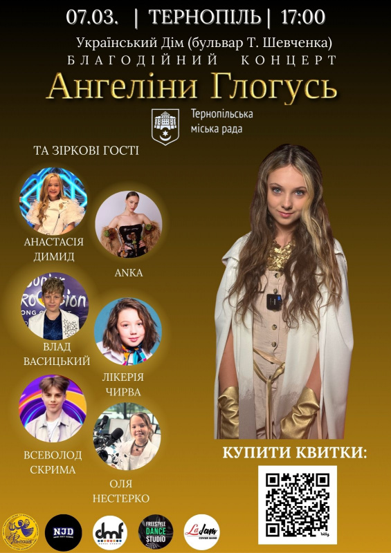 У Тернополі відбудеться благодійний концерт юної співачки Ангеліни Глогусь на підтримку Збройних Сил України. Захід пройде 7 березня в Українському домі. Початок - о 17.00.
