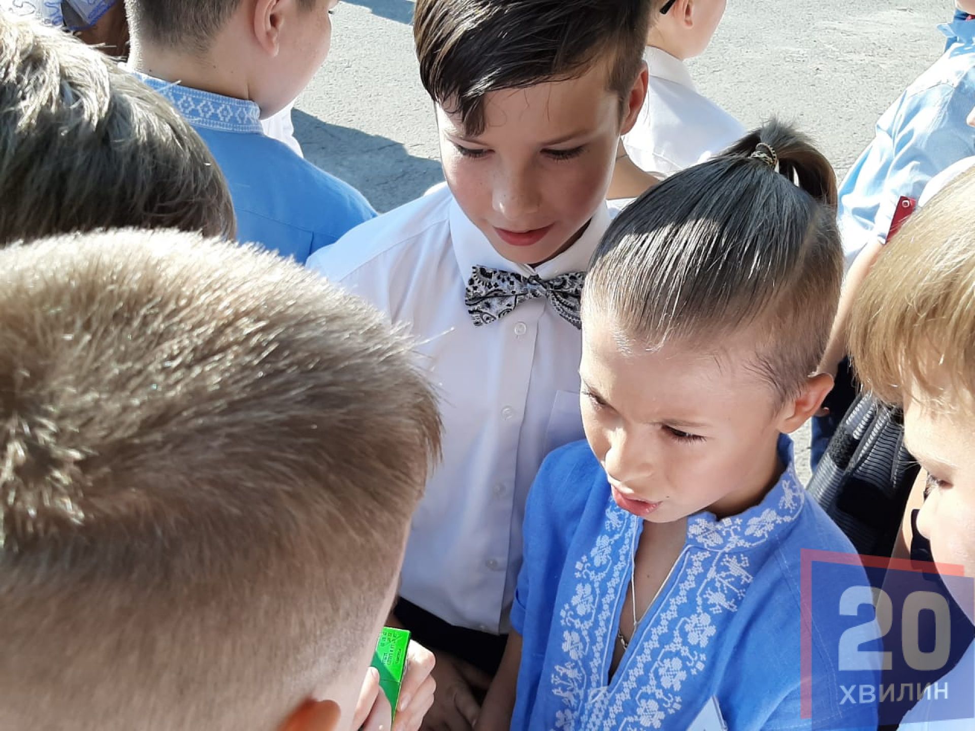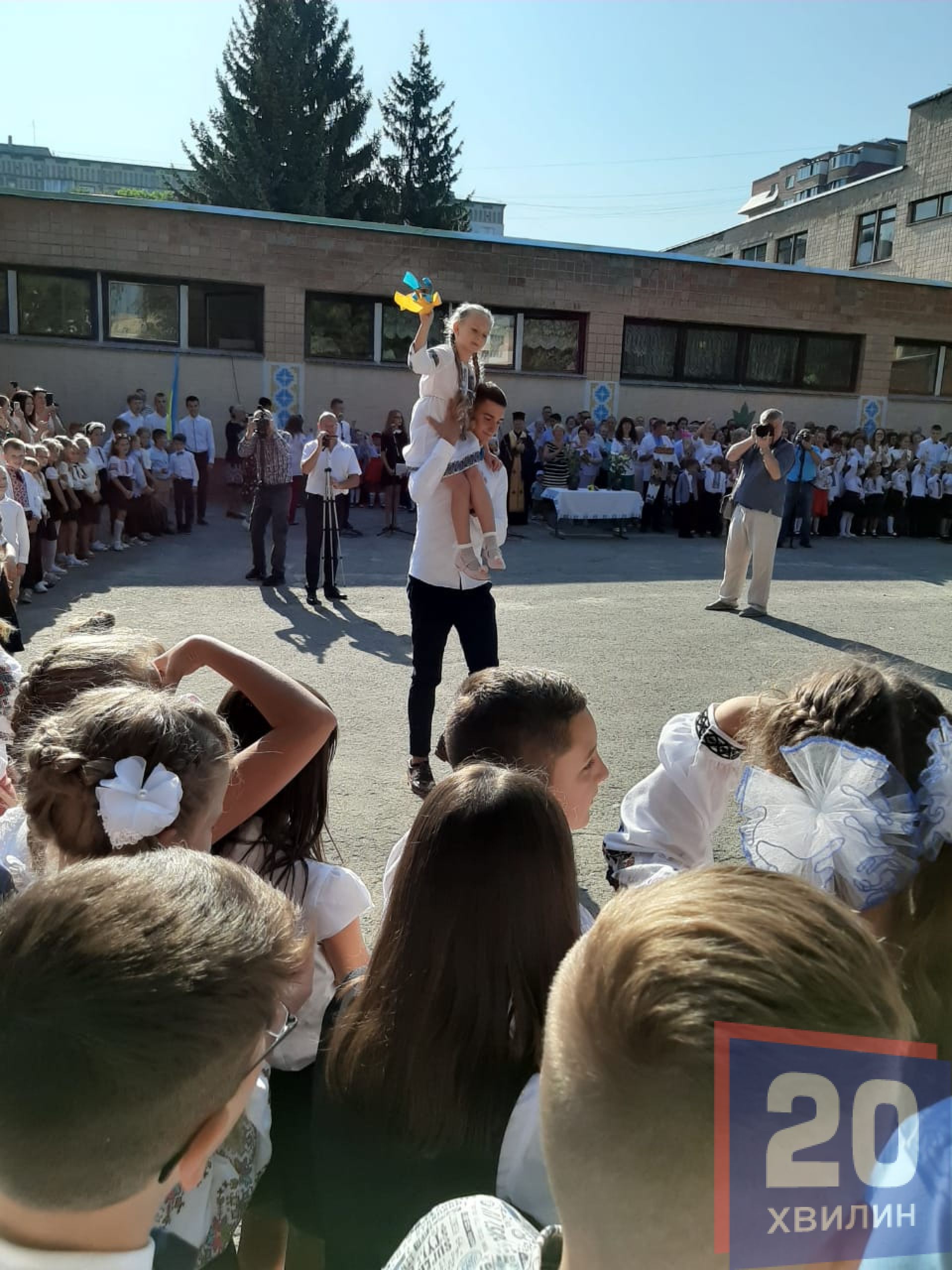 По-новому тут звучав і сам перший дзвінок. Право подзвонити надали учневі кожного із класів. Під оплески діти передавали його із рук у руки.