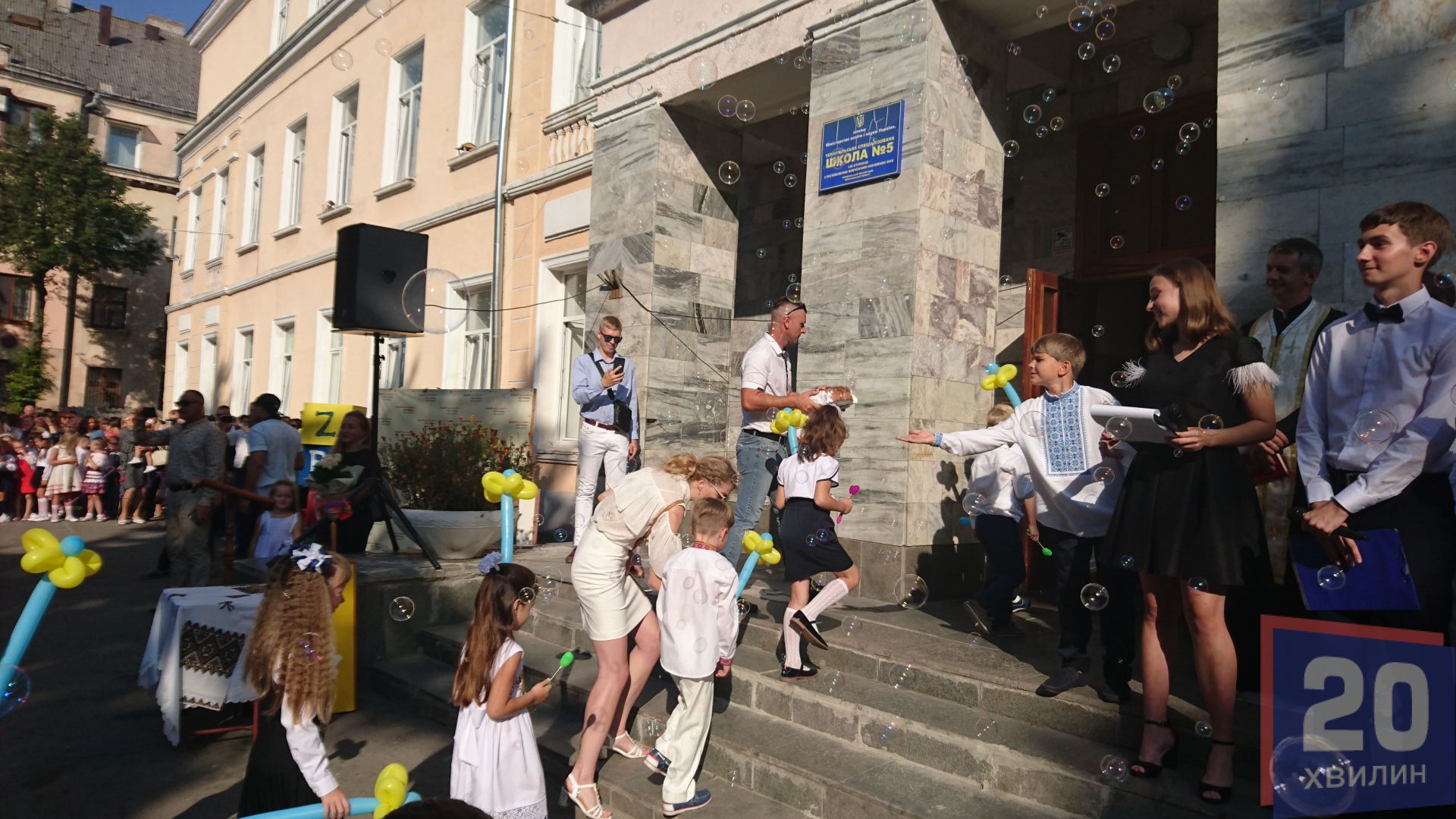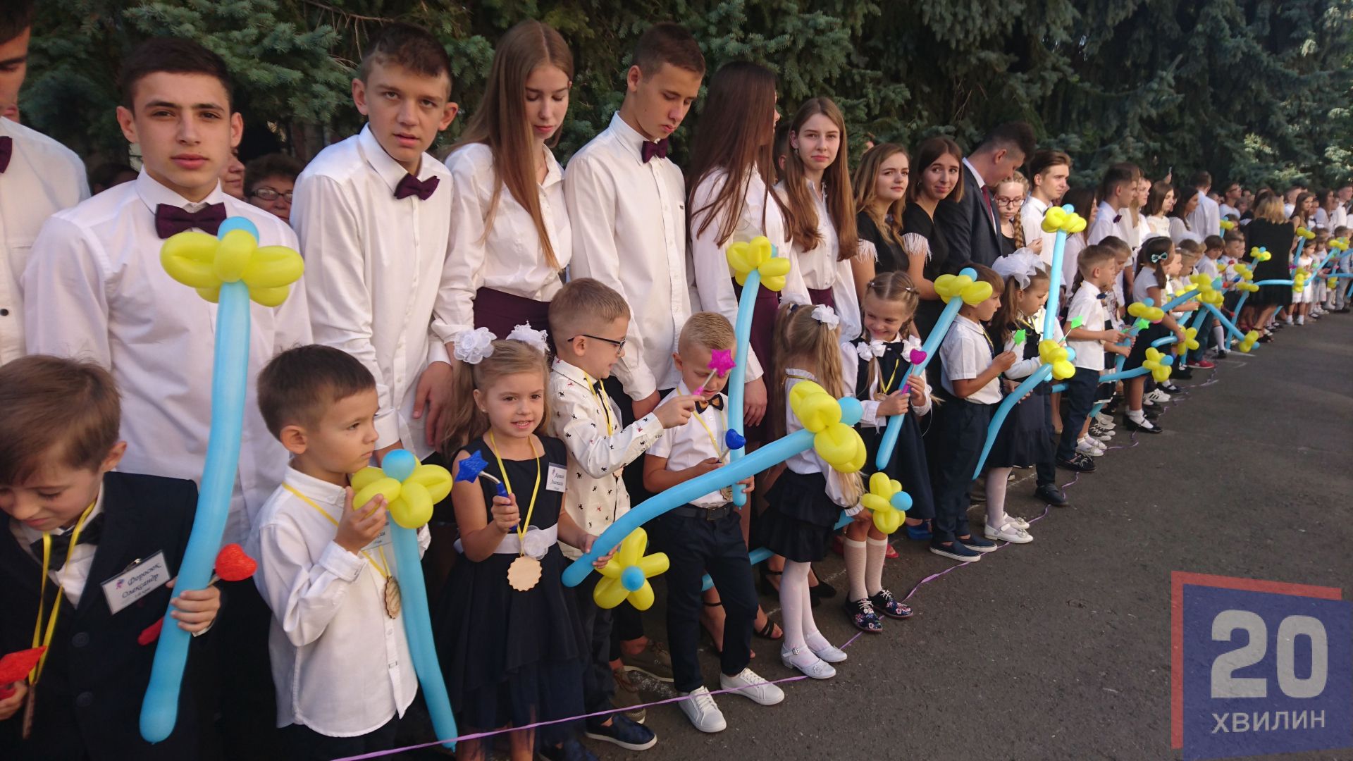 Тут свято Першого Дзвоника провели із радістю для дітей. Одинадцятикласники оргнаізували ігри для першачків. Посеред шкільного подвіря намалювали величезну картину крейдою, а під час свята розпалили кольоовий дим.