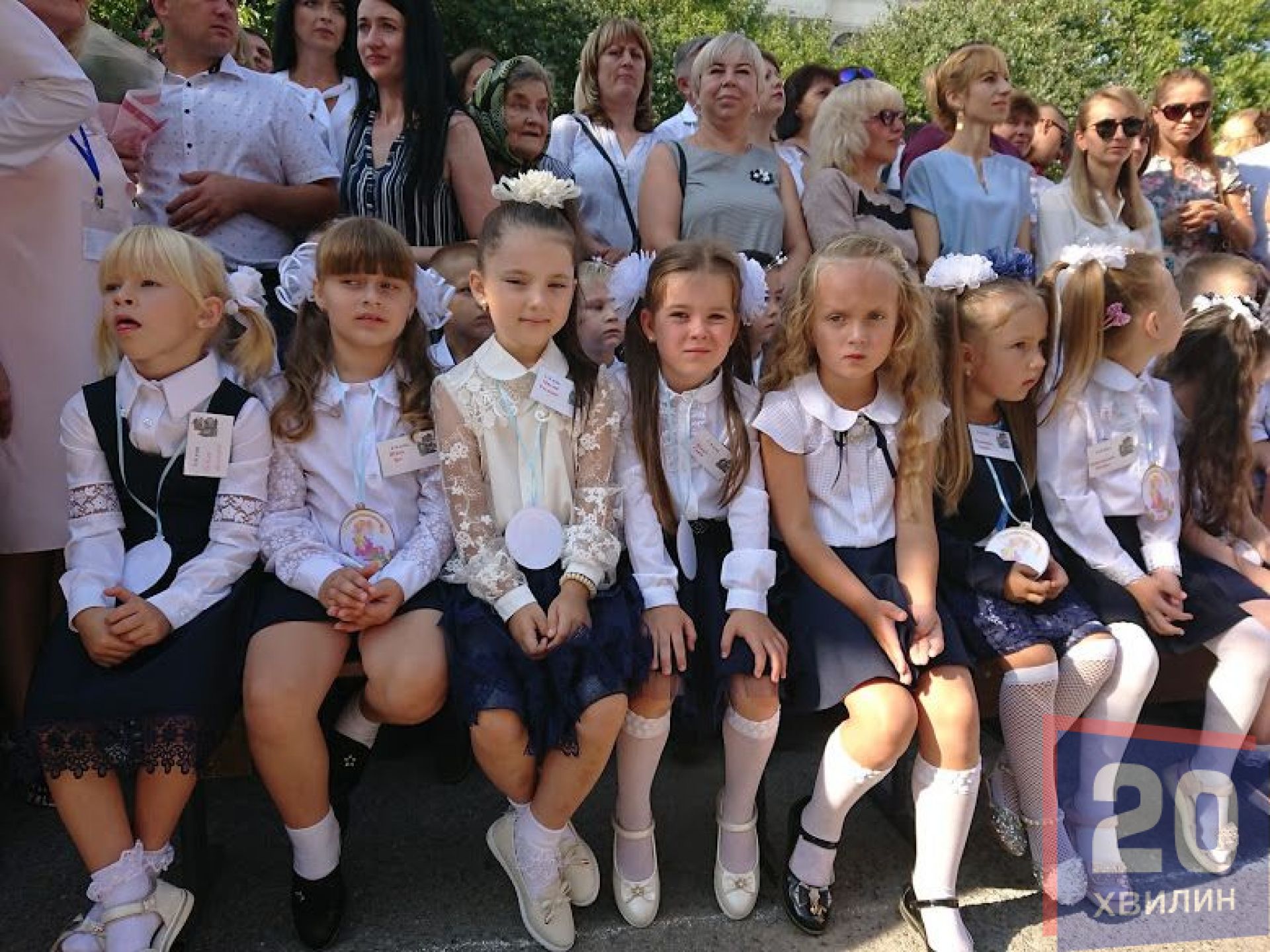 Чотири перших класи, у яких навчатиметься 124 учні на перший урок провели вчителі у супроводі аніматорів-героїв із мультфільмів, які забавляли дітей на лінійці.