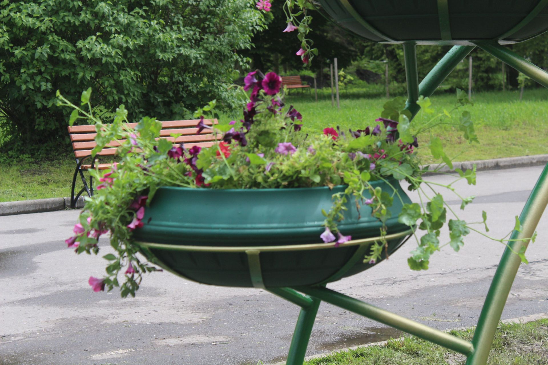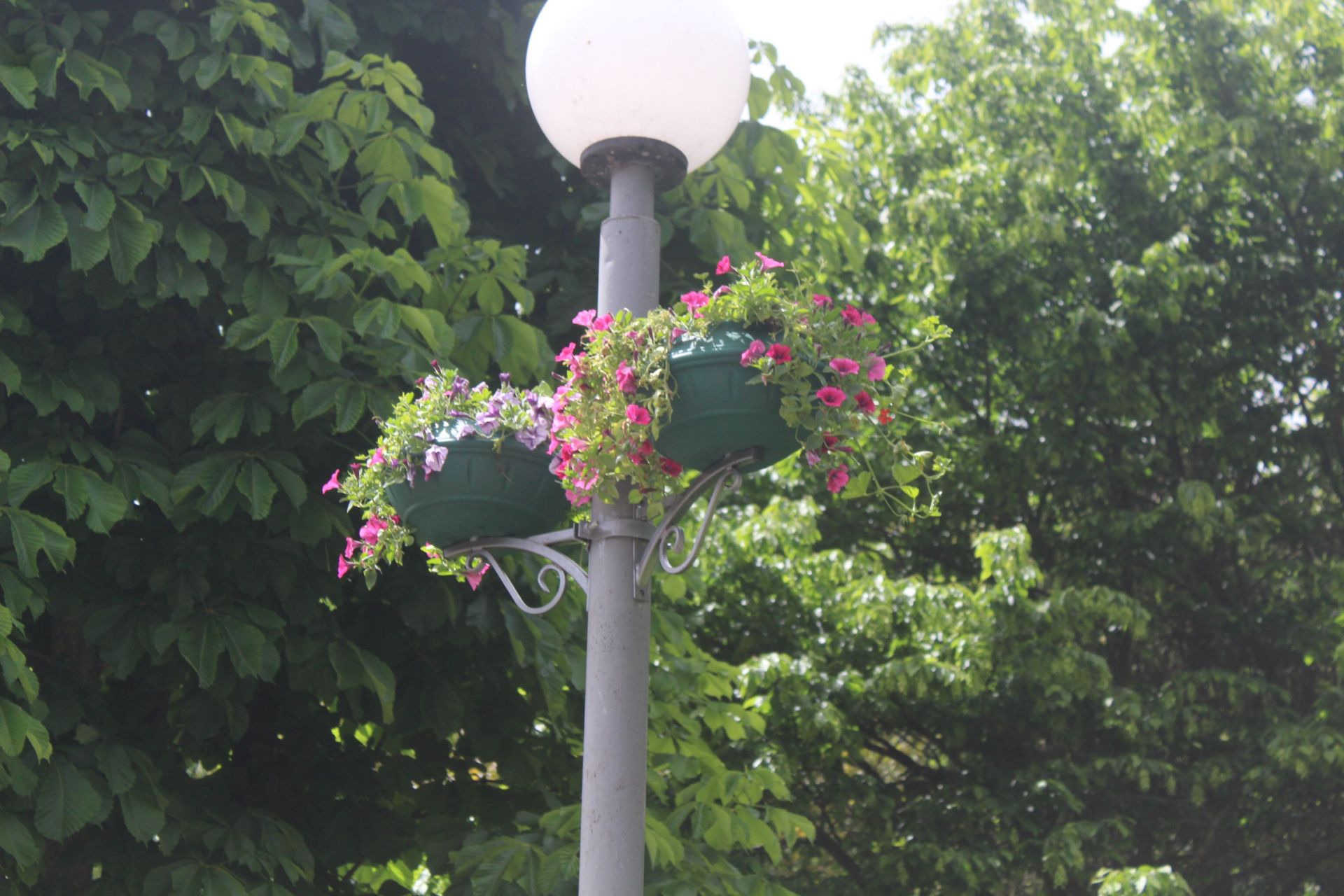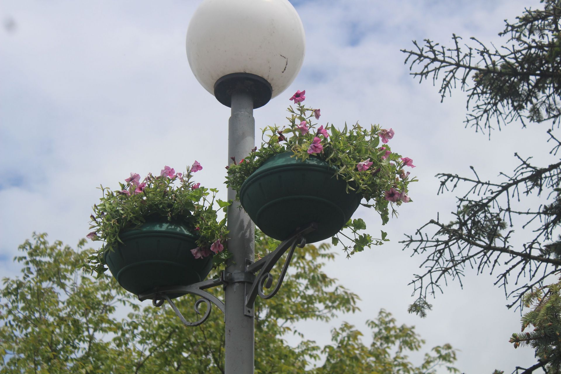 Також робітники висадили петунії на ліхтарі у гідропарку.