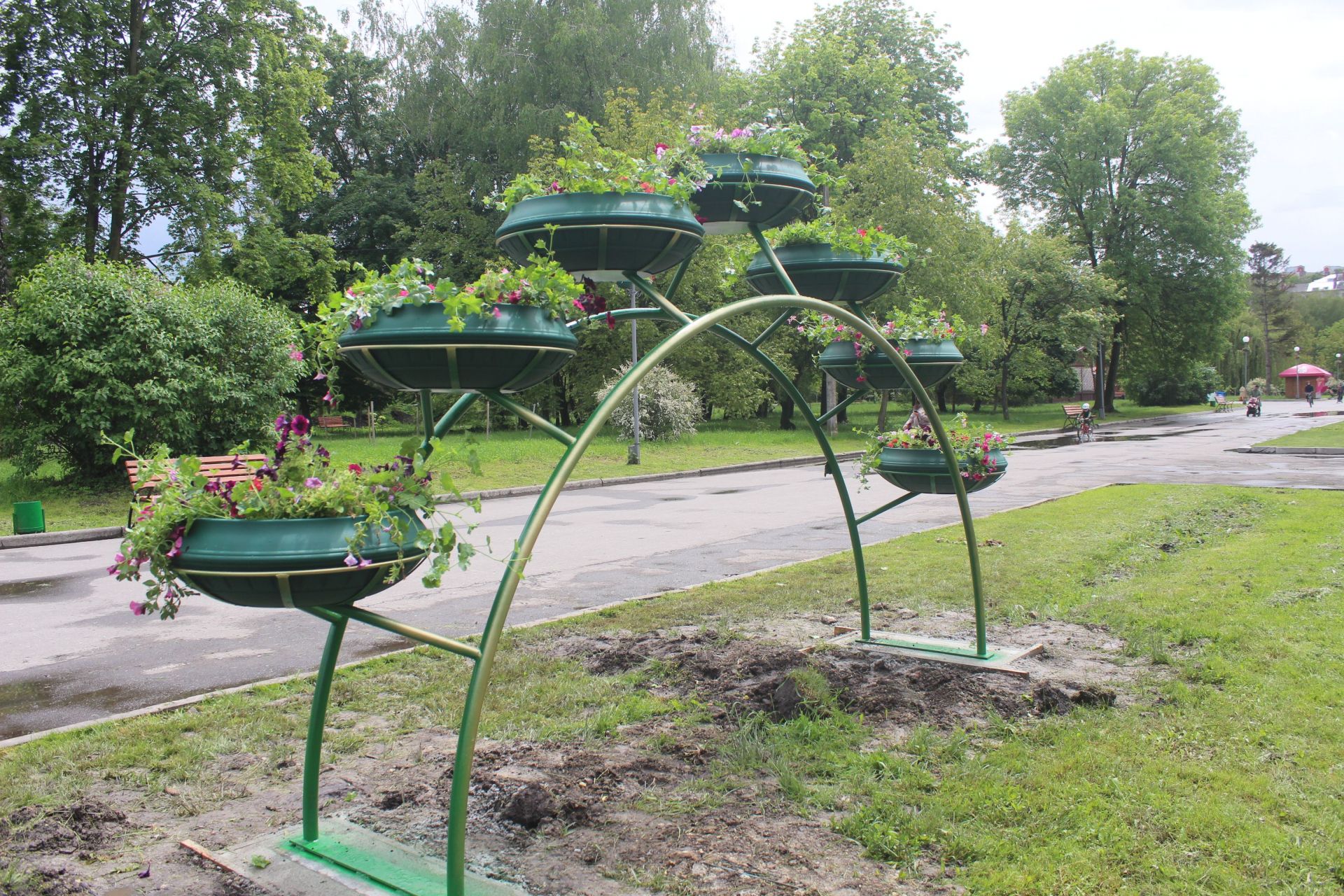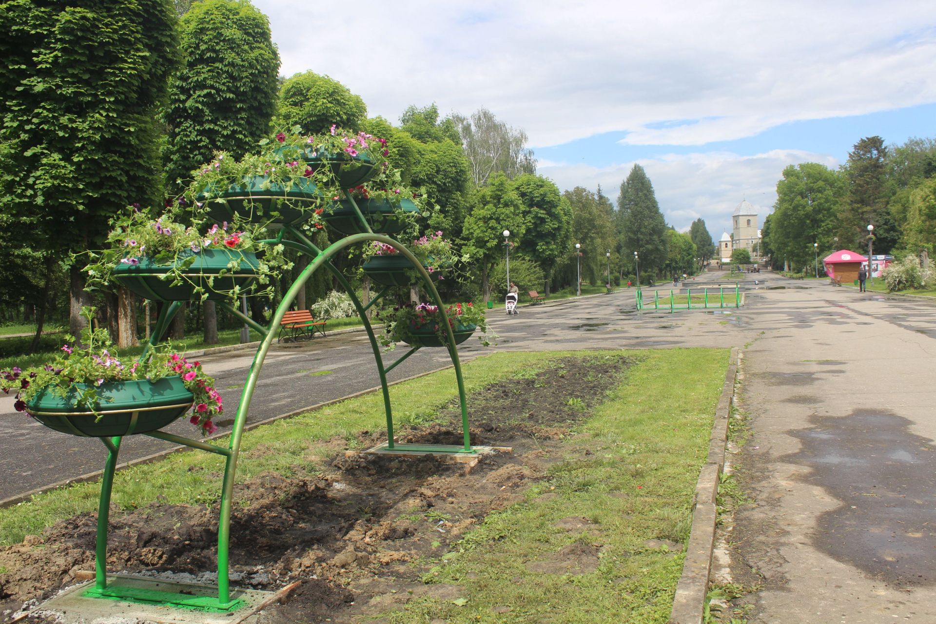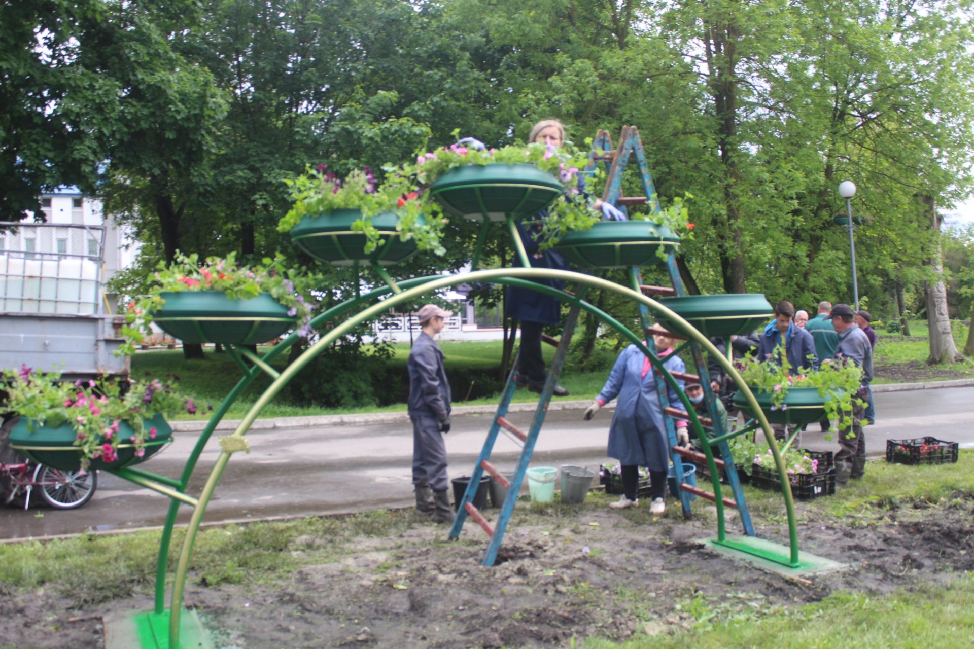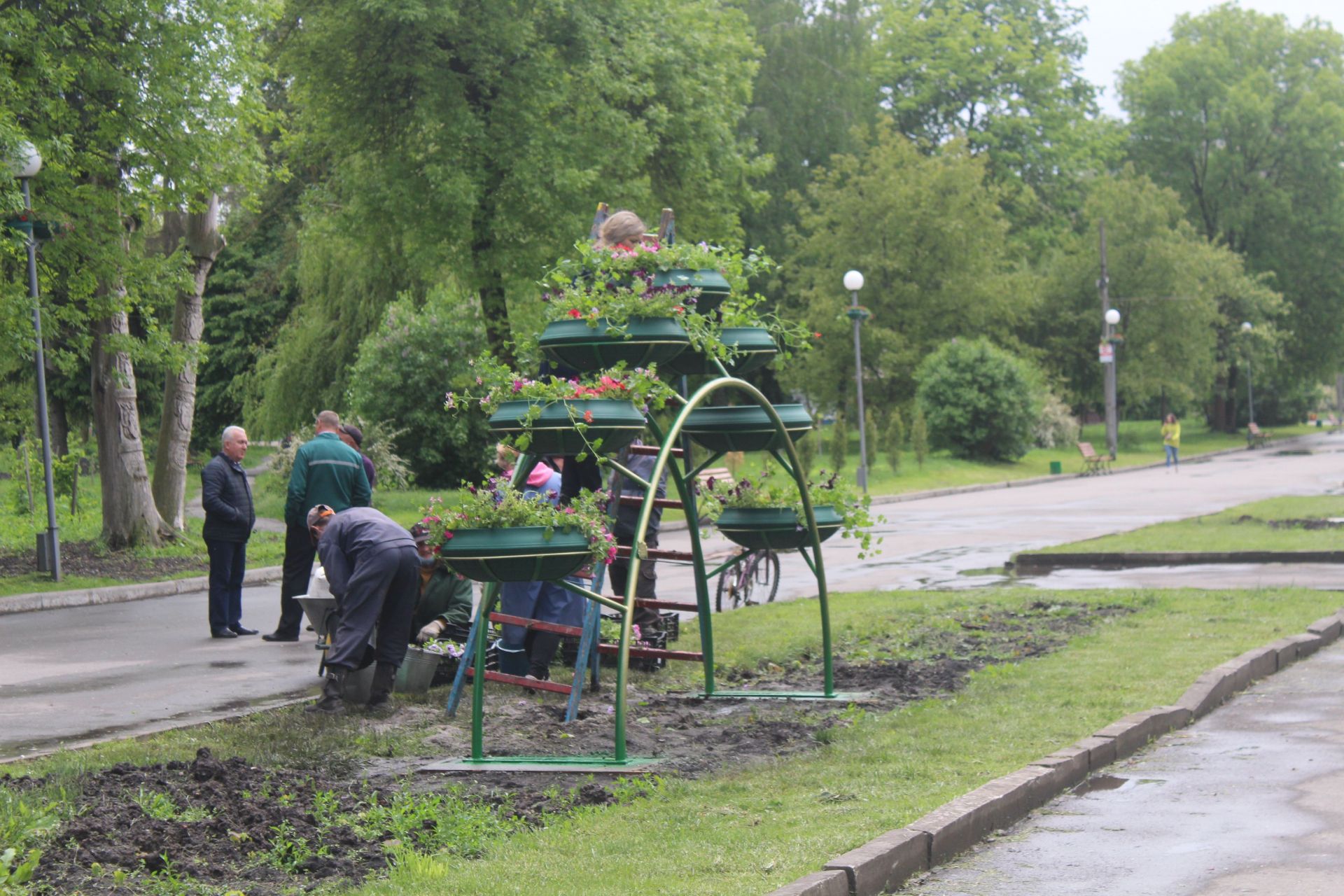 У гідропарку «Топільче» також висаджують квіти. Однак їх саджають не просто на клумби, а в нові металеві конструкції у вигляді арок. Це ове вертикальне озеленення, яке встановили в парках міста. Нагадаємо, вертикальне озеленення у вигляді кованого серця, дерев та арок облаштували у парку Шевчека. Там вже висадили квіти. Ще одну арку встановили у парку «Національного відродження».