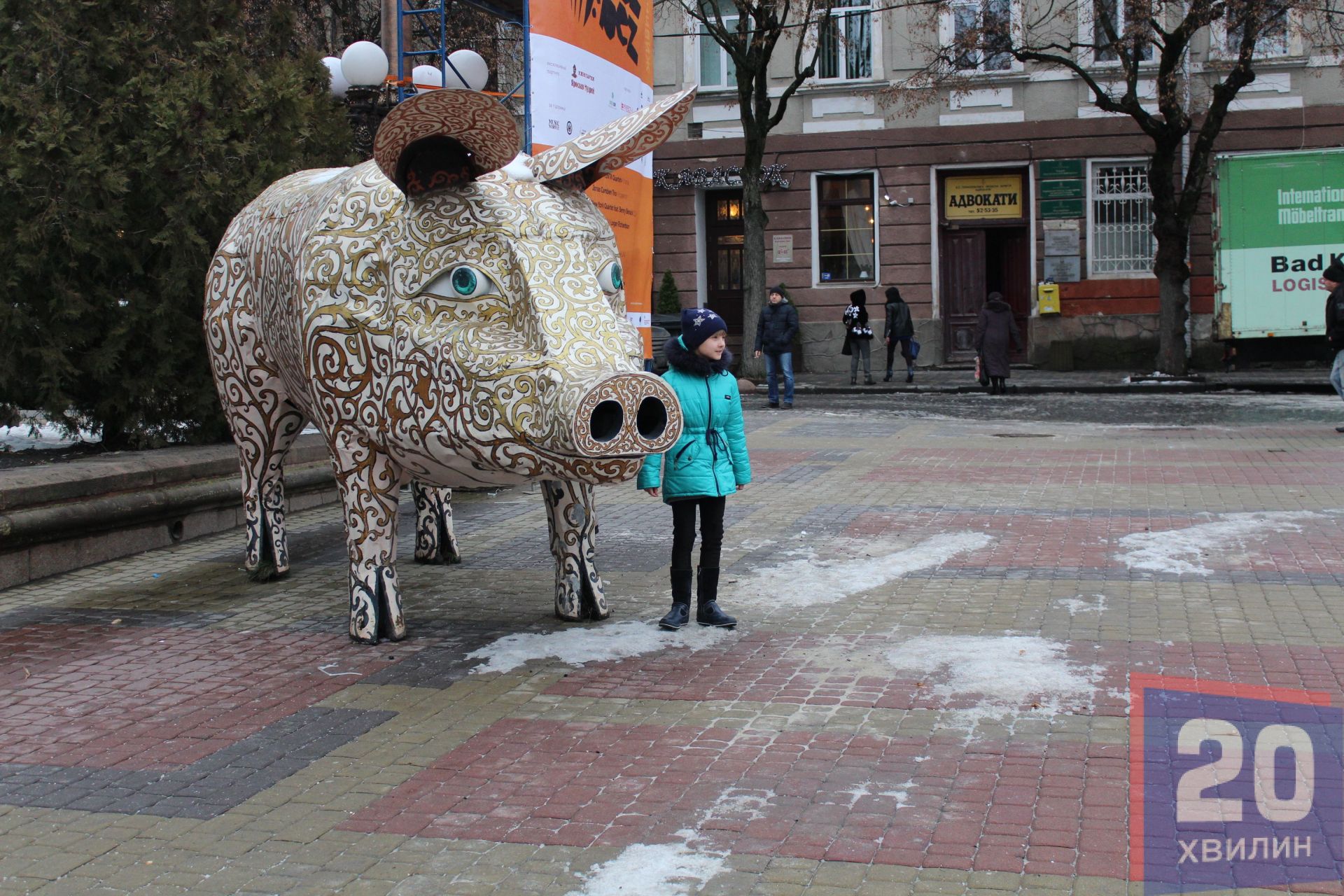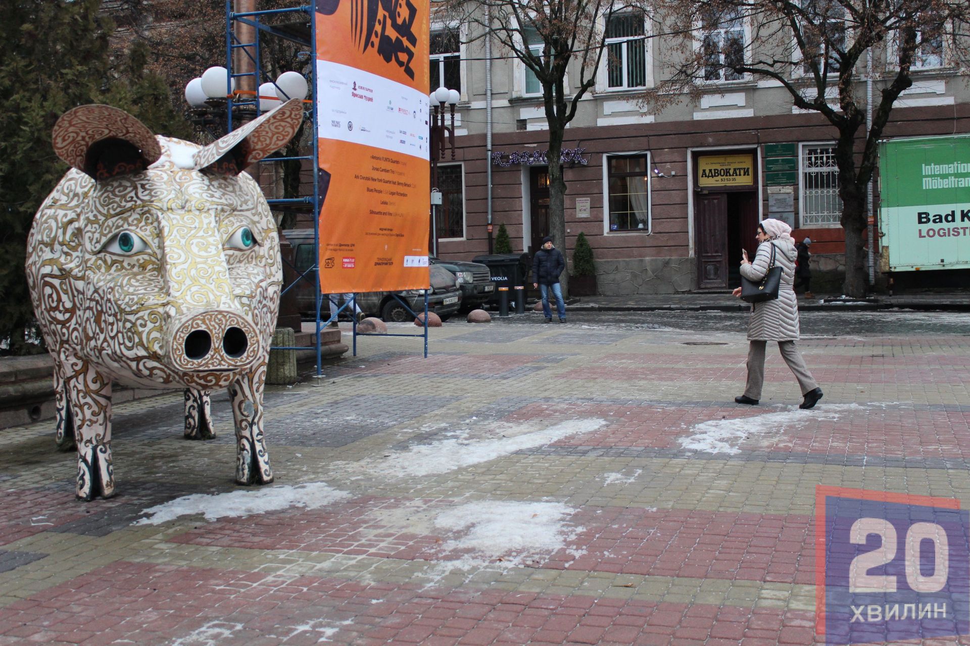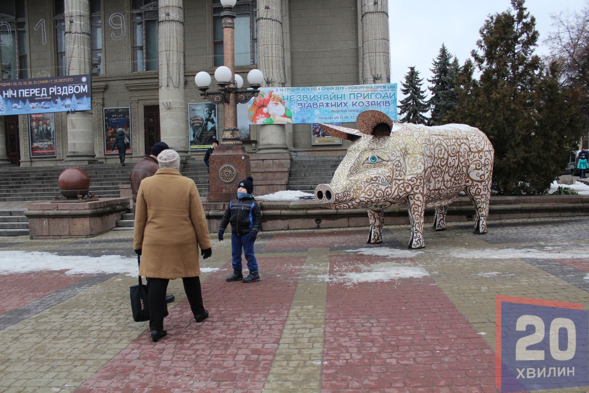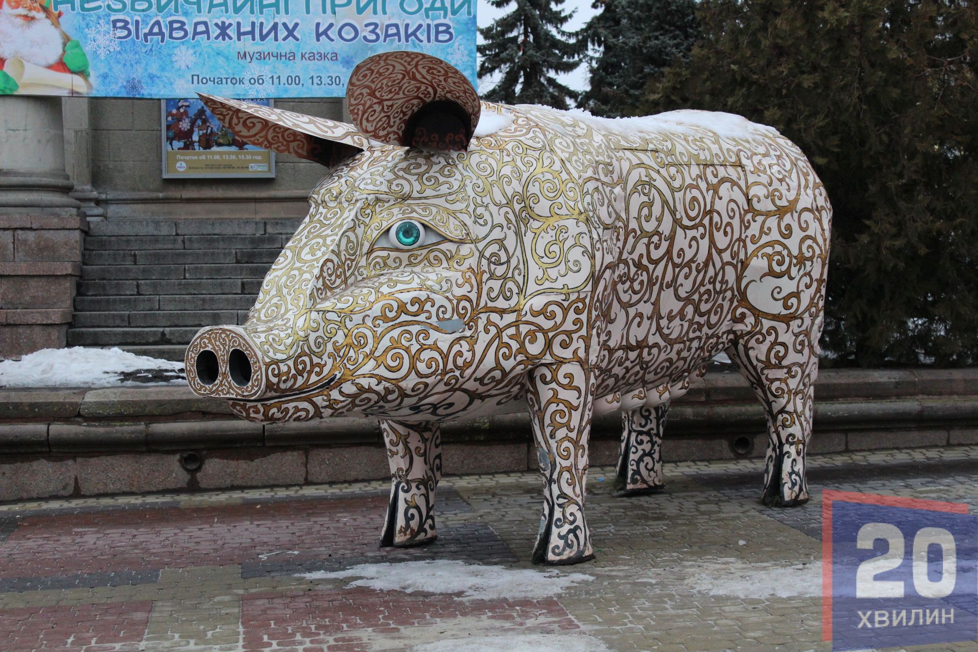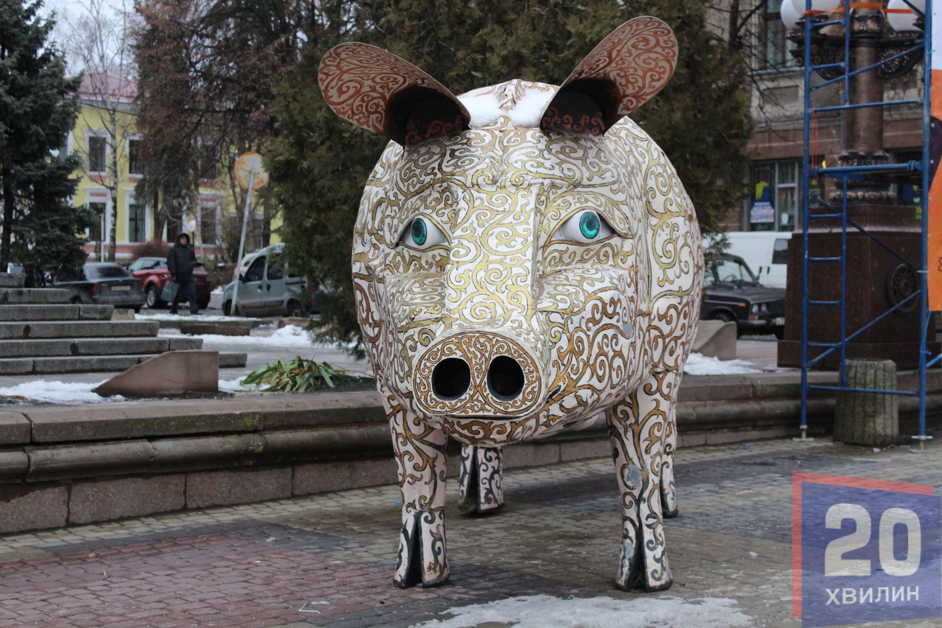 Сьогодні на Театральному майдані встановлюють символ Нового року - свинку. Вона розташована біля входу у драмтеатр. Сама фігура металева і з перших хвилин після встановлення вже привертає чимало уваги. Перехожі фотографують зі свинкою діток або просто роблять фото символу прийдешнього року. Нагадаємо, за Східним гороскопом, ця тварина опікуватиметься 2019-м роком.