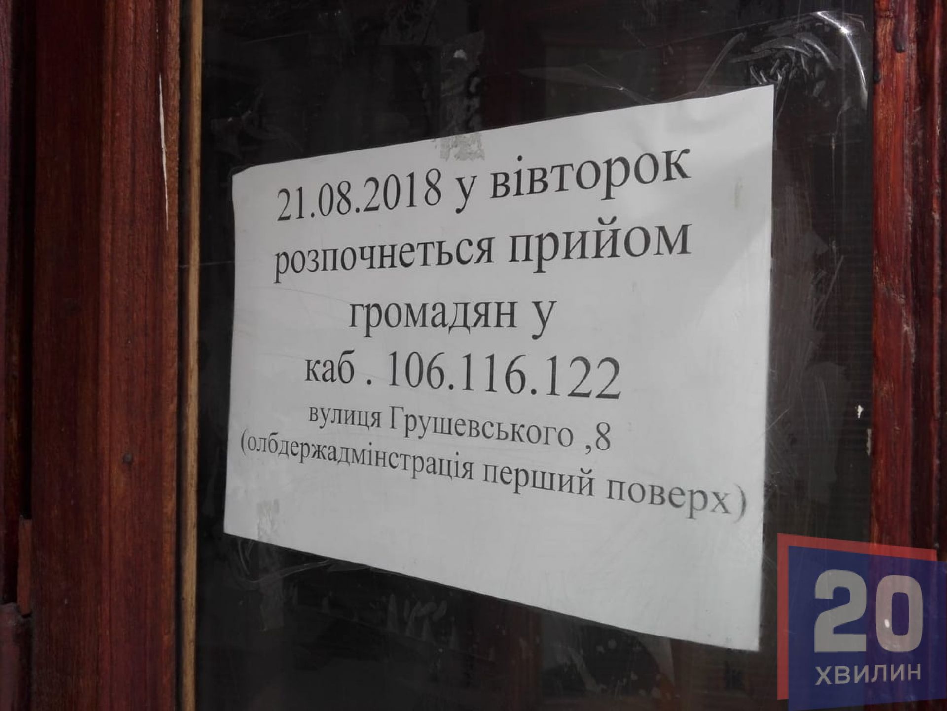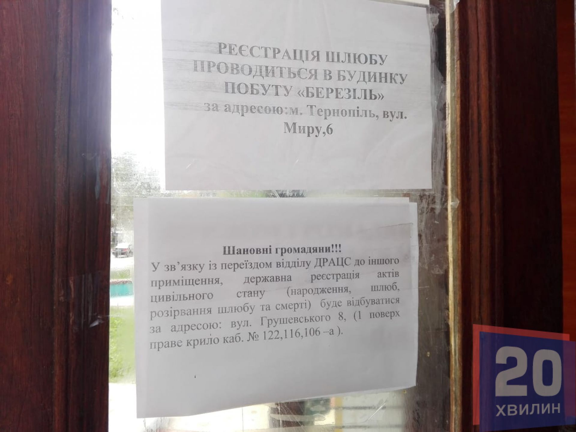 21 серпня з колишнього приміщення РАЦСу на Майдані Волі вивезли меблі. А на дверях з'явилося оголошення про те, що у зв’язку із переїздом відділу ДРАЦС до іншого приміщення, державна реєстрація актів цивільного стану, тобто реєстрація народження, шлюбу, смерті та розірвання шлюбу - відбуватиметься на першому поверсі облдержадміністрації, що на вулиці Грушевського 8 (123 к).