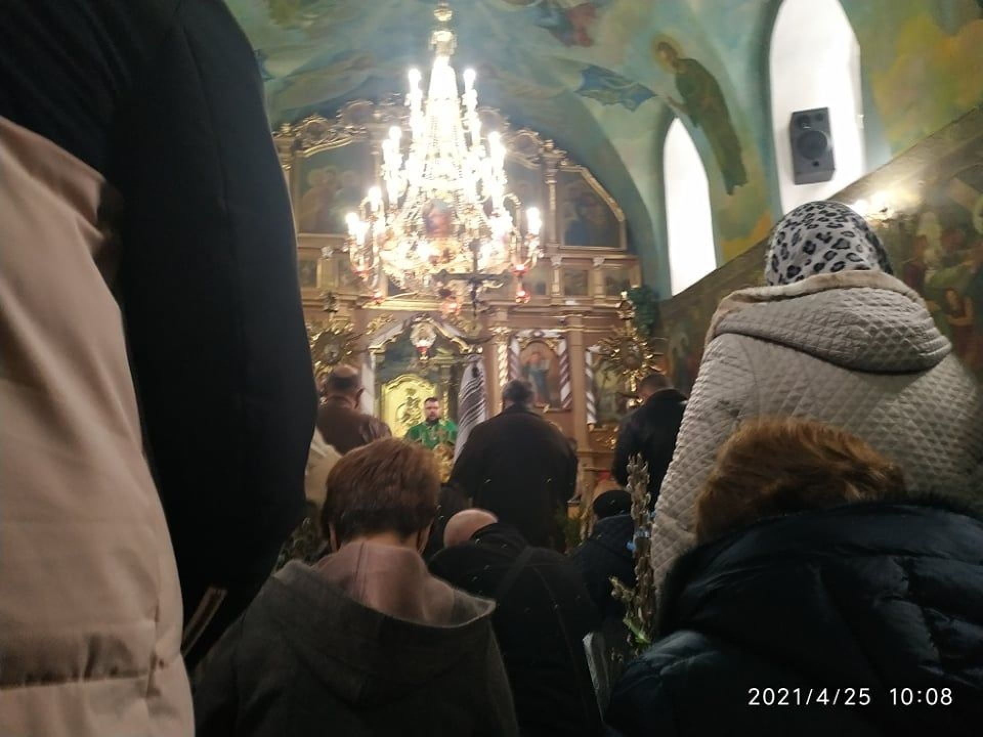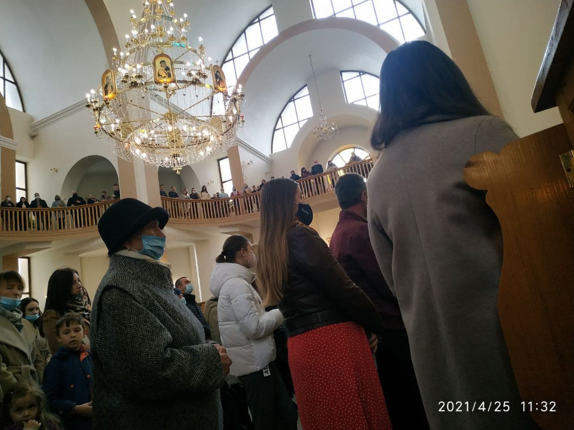 Третина парафіян надворі були в масках. Та в храмі майже всі маски вдягнули. Дистанція між присутніми була мінімальною, адже людей в храмі було дуже багато.