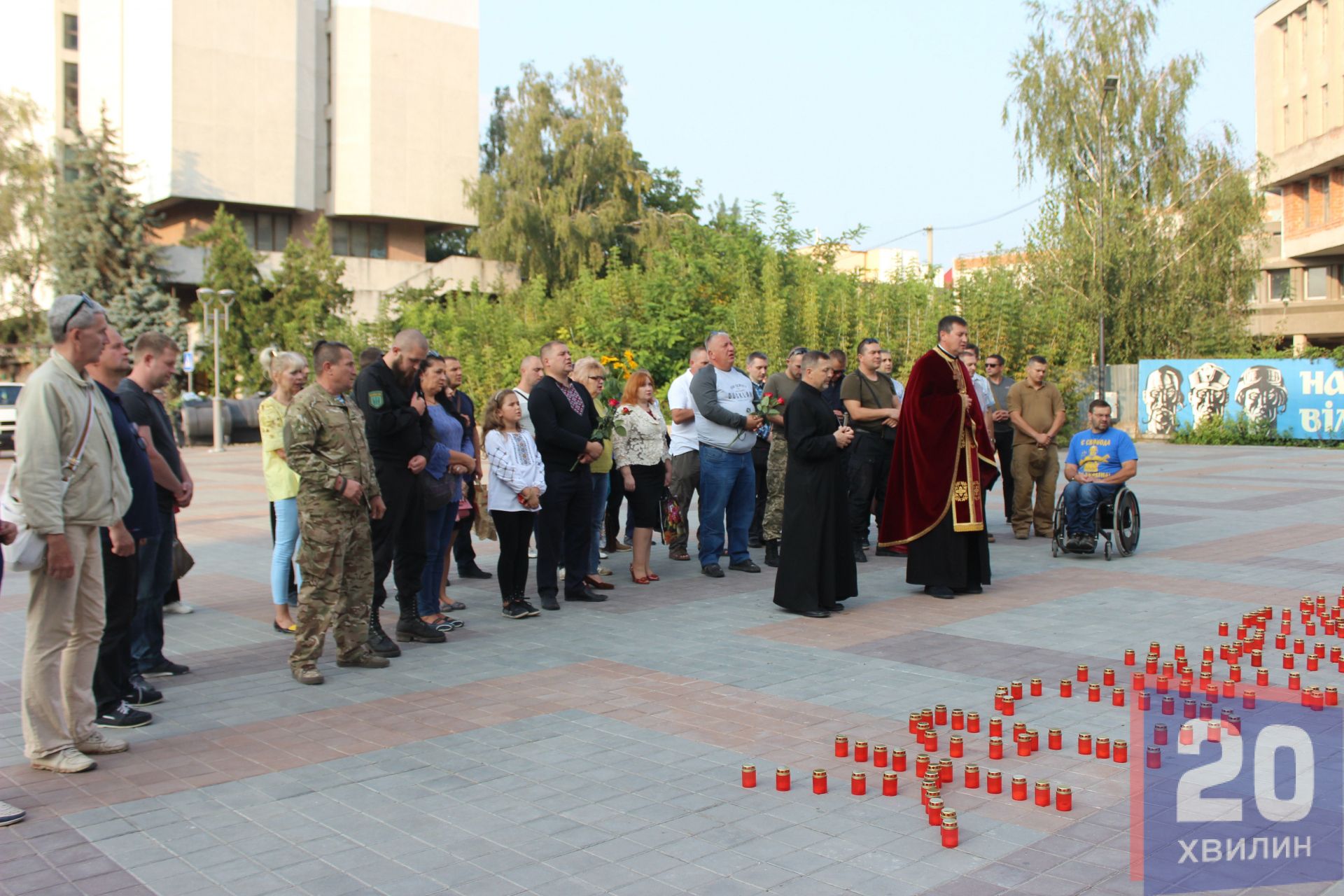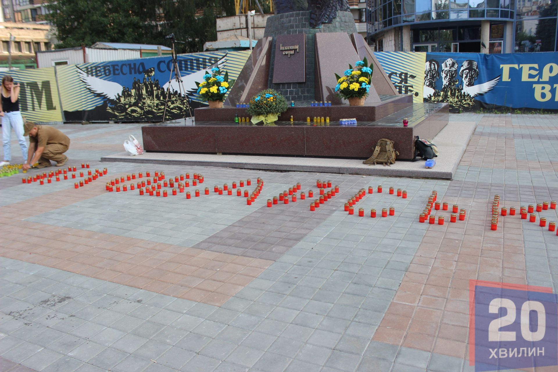 Родичі воїнів, бійці, тернополяни і перехожі разом зі священиками молилися за вічну пам’ять загиблих хлопців. Символічно лампадками виклали слово “Іловайськ”.