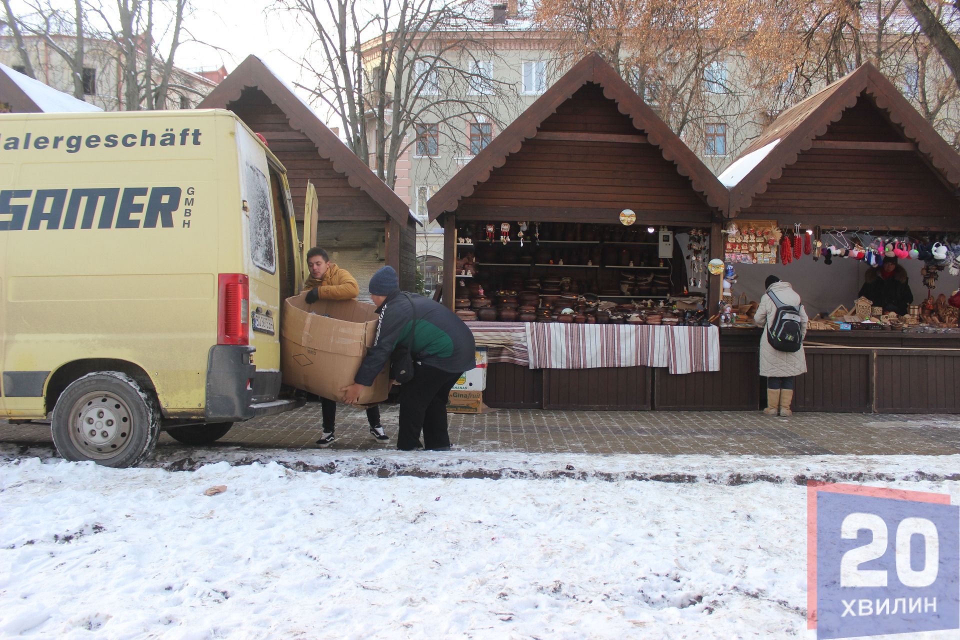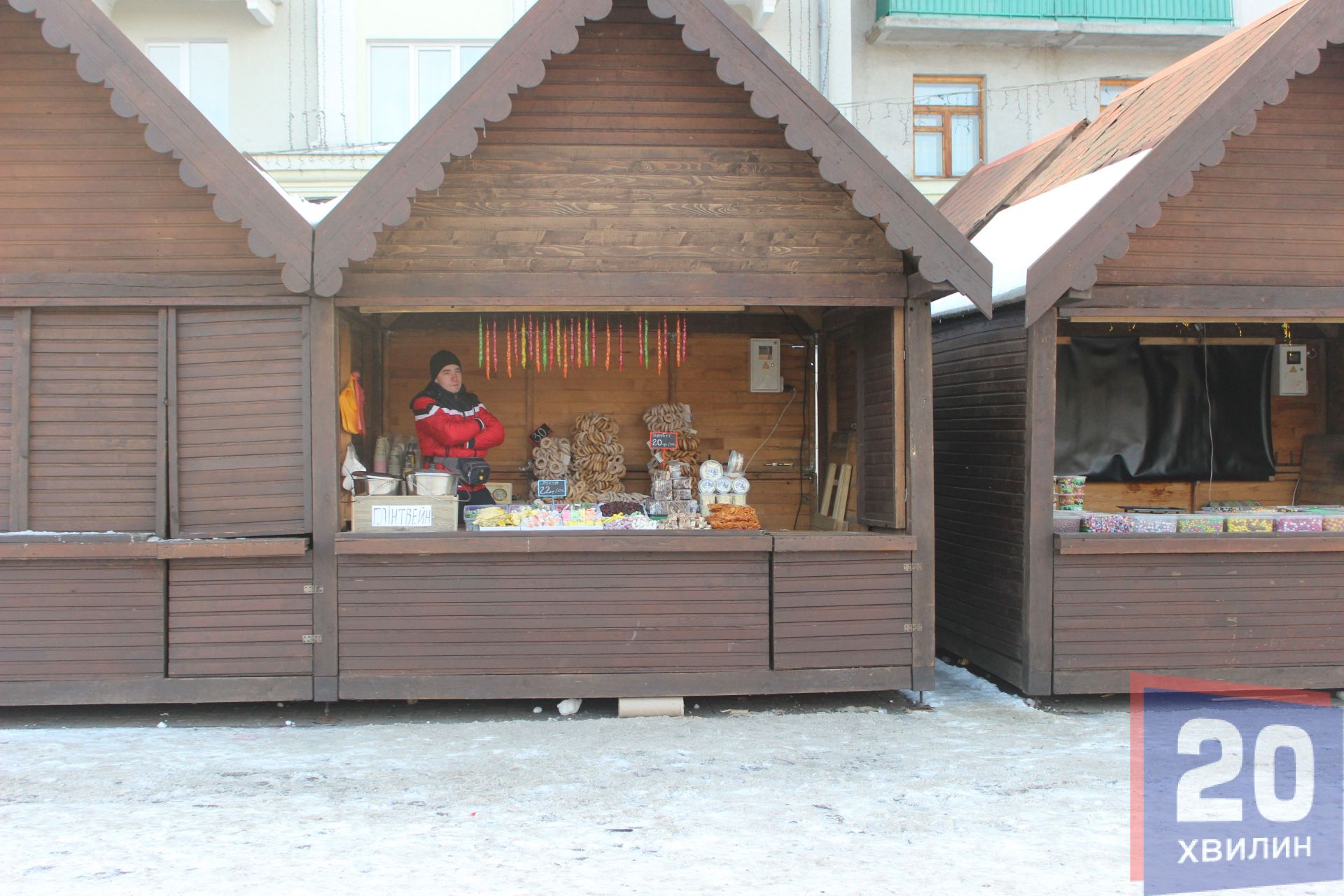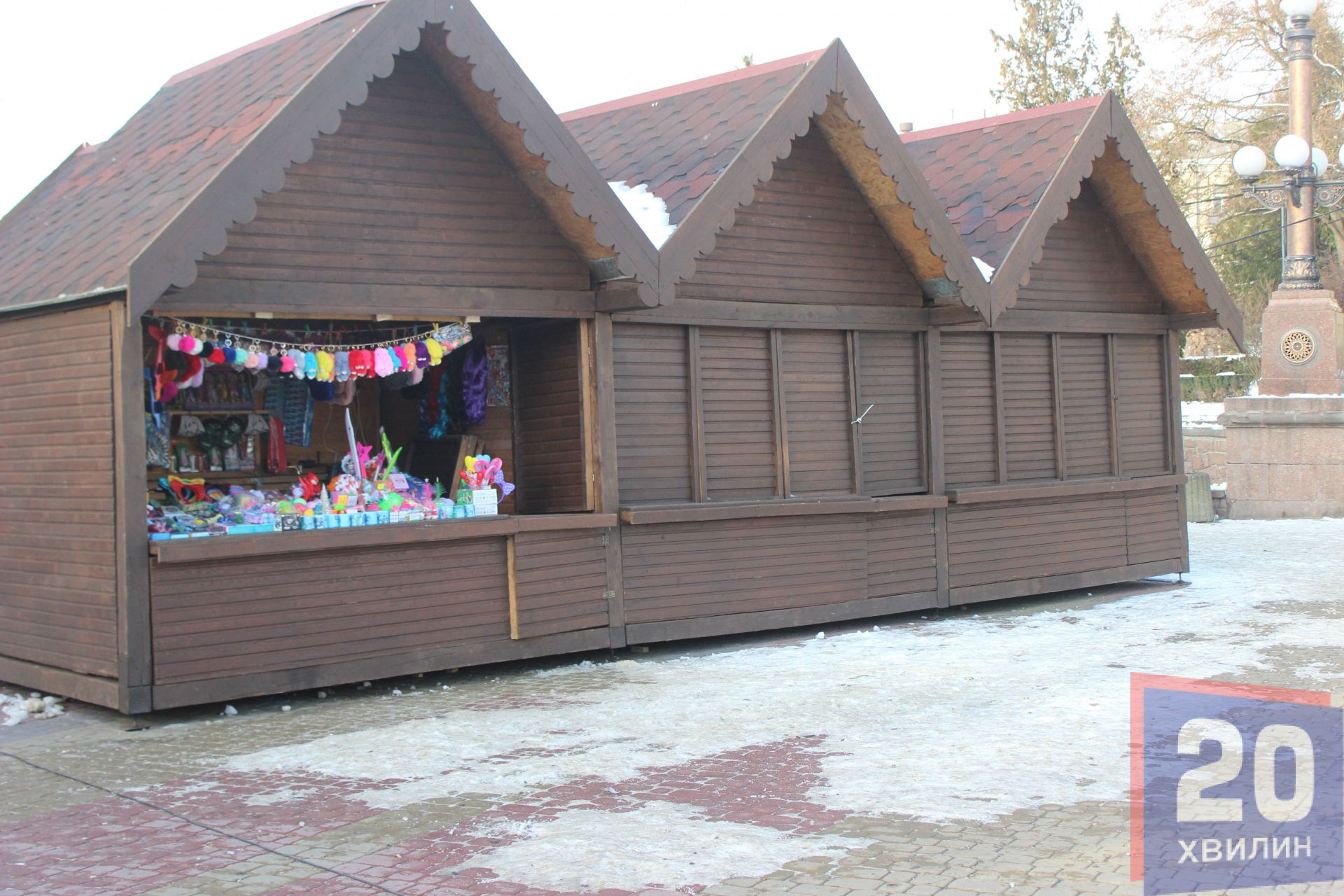 З 1 грудня продавці почали облаштовуватись у найнятих дерев’яних будиночках. Сьогодні, 2 грудня біля торгових точок перші покупці.