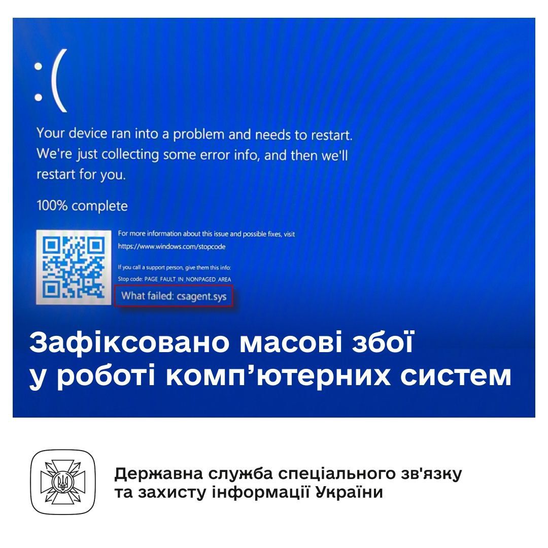 У відомстві пояснили, що ряд організацій в Україні та світі 19 липня зіштовхнулись з проблемою запуску комп’ютерів, які функціонують на операційній системі Microsoft Windows та використовують програмне забезпечення CrowdStrike Falcon.