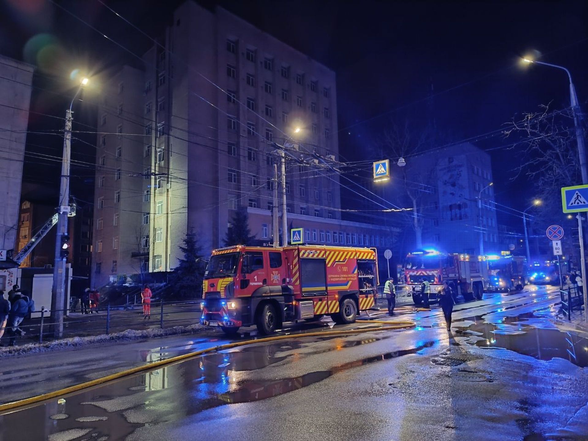 Повідомлення про вибух і пожежу на верхньому поверсі у будівлі Будинку правосуддя надійшло о 21.31 год, — розповів речник головного управління ДСНС в області Сергій Данілін. — Площа пожежі — 3 кв.м.