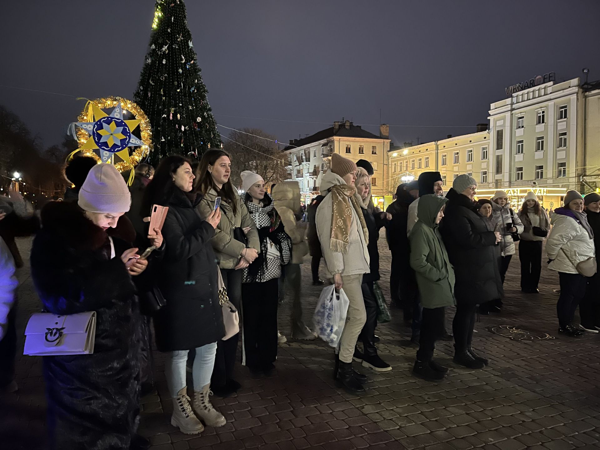 На Театральному майдані триває благодійний вертеп. Тернопільські волонтери виконують різноманітні колядки. Таким чином вони нагадують про важливість підтримувати українські традиції та збирають кошти на виготовлення дронів.
