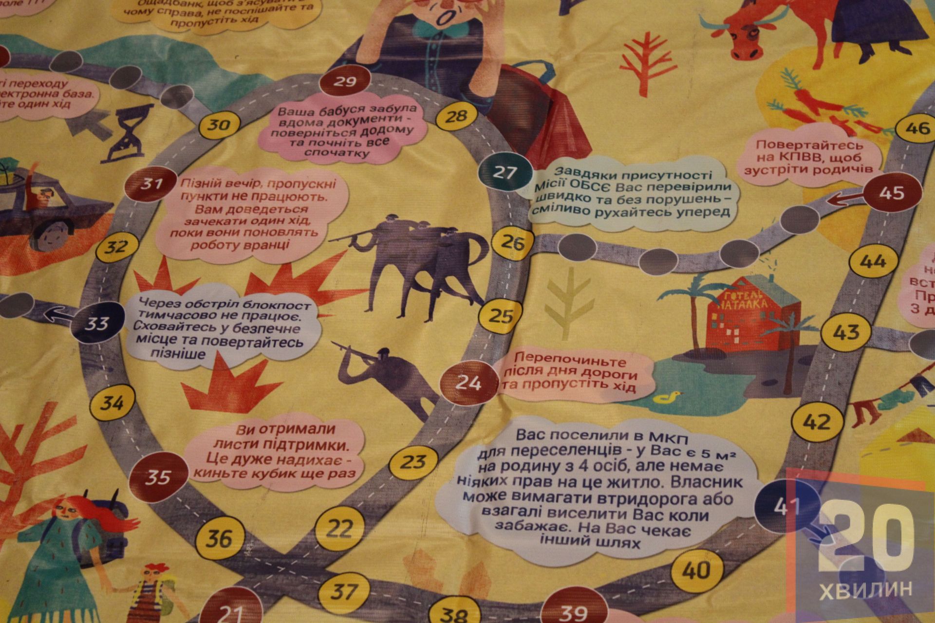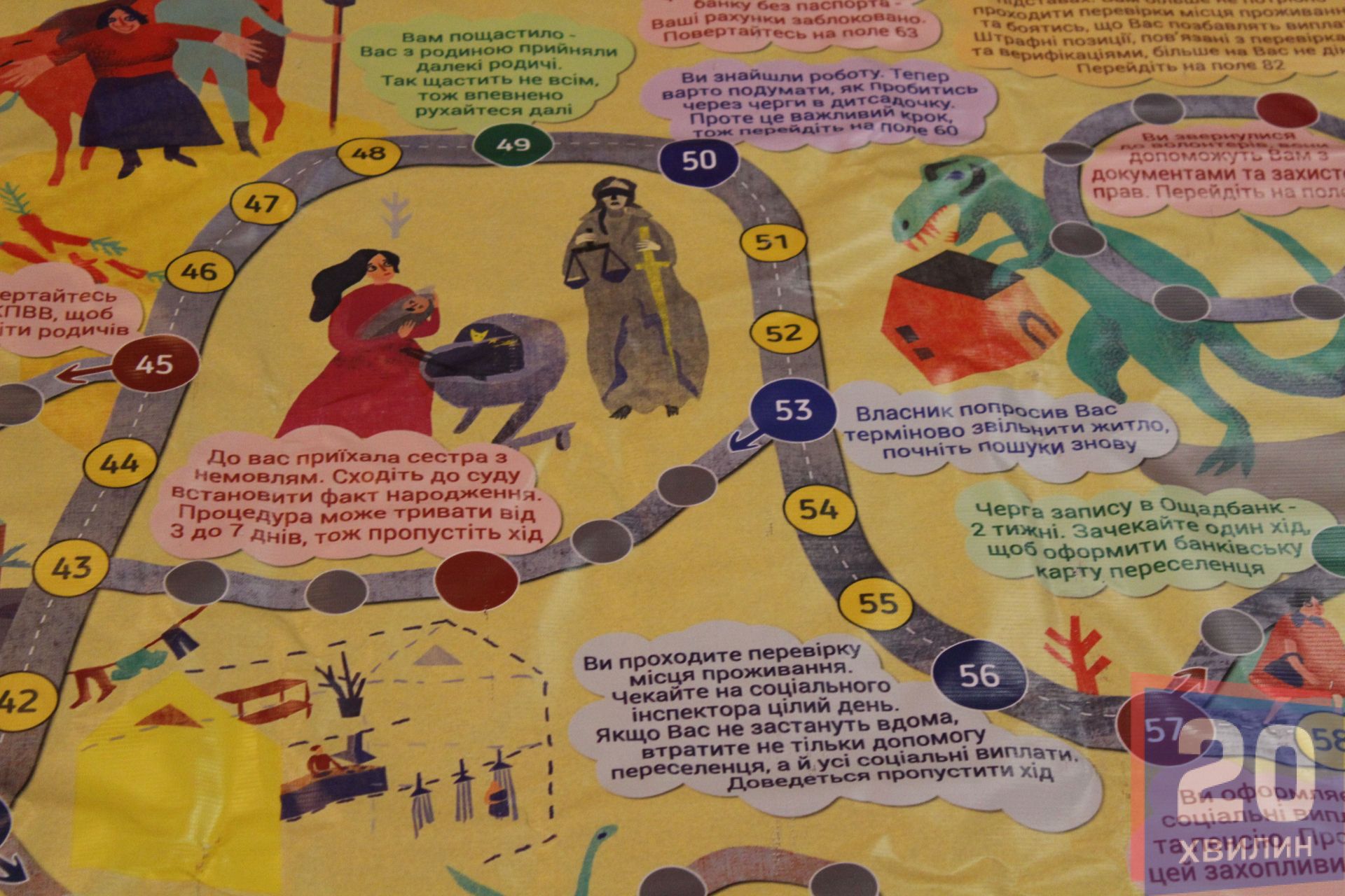 - Ця гра має зовсім не розважальний формат, а соціальний та навчальний, - розповідає представник програми «Радник з питань ВПО» Людмила Неверицька. – Це «бродилка», у якій за допомогою ходів люди зможуть побачити реальні ситуації, які трапляються з переселенцями.