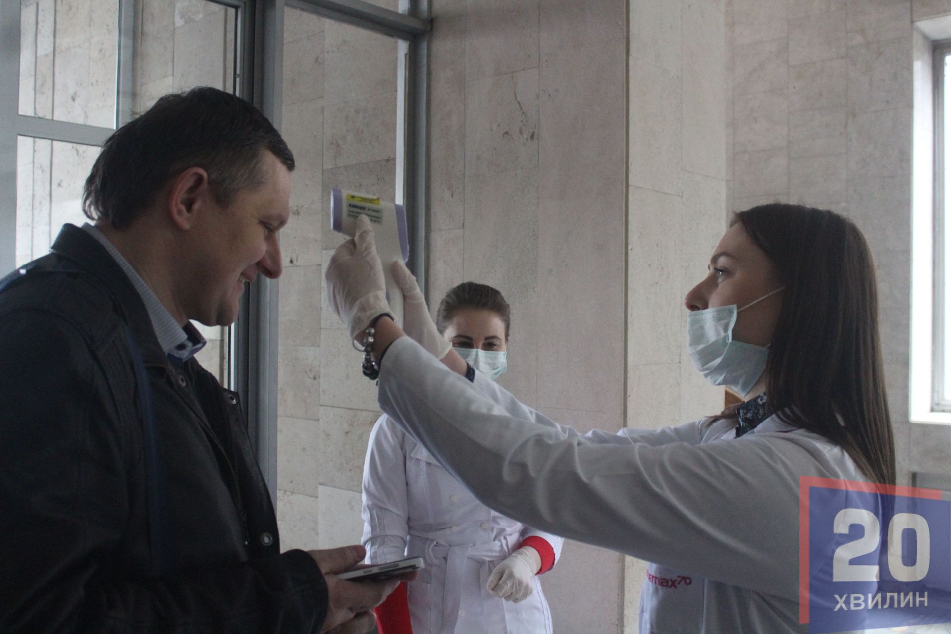 - Ми вимірюємо температуру усім, хто хоче потрапити до приміщення, - каже медсестра Університетської лікарні Христина. - Ми використовуємо безконтактні термометри. Вони вимірюють температуру на відстані близько 5 сантиметрів від об'єкту.