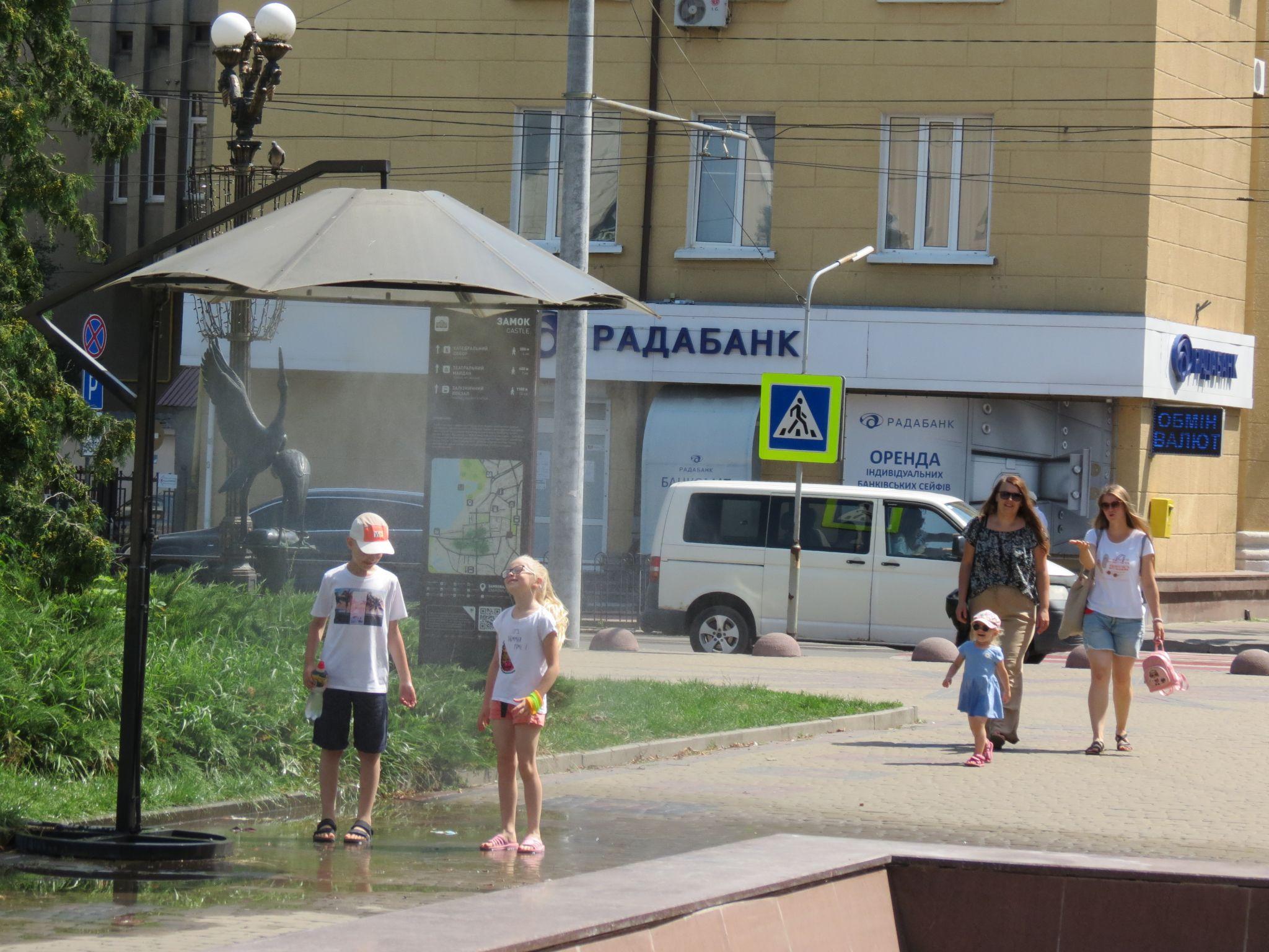 Ховаються під парасольками та купаються у фонтанах: як тернополяни рятуються від спеки на вулиці