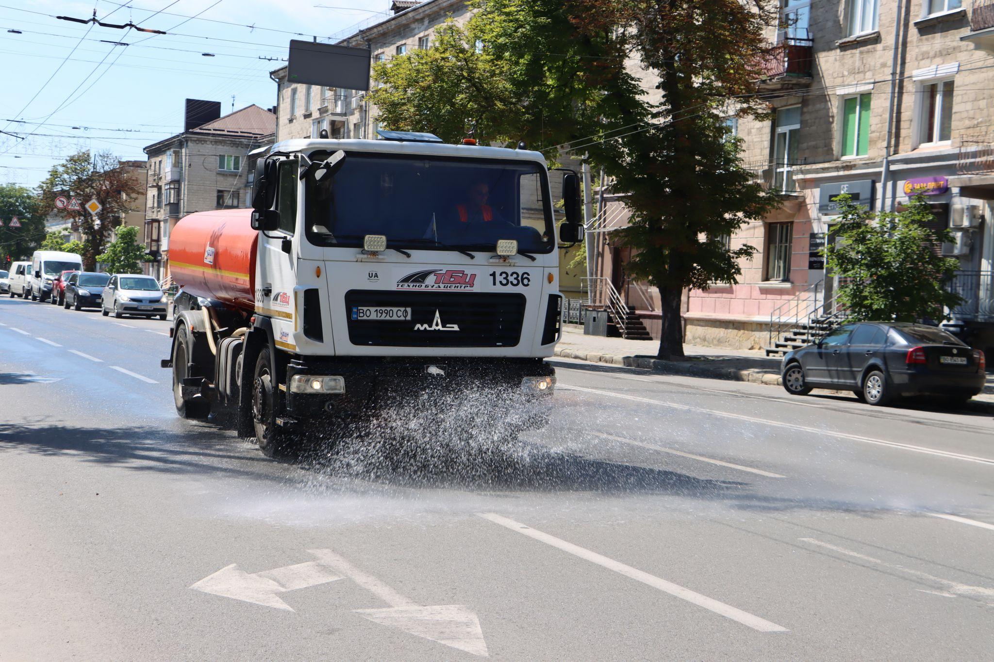 Вдень на вулицях міста їздить спеціальна техніка, яка поливає дорогу. Однак вода висихає за 5-10 хвилин.