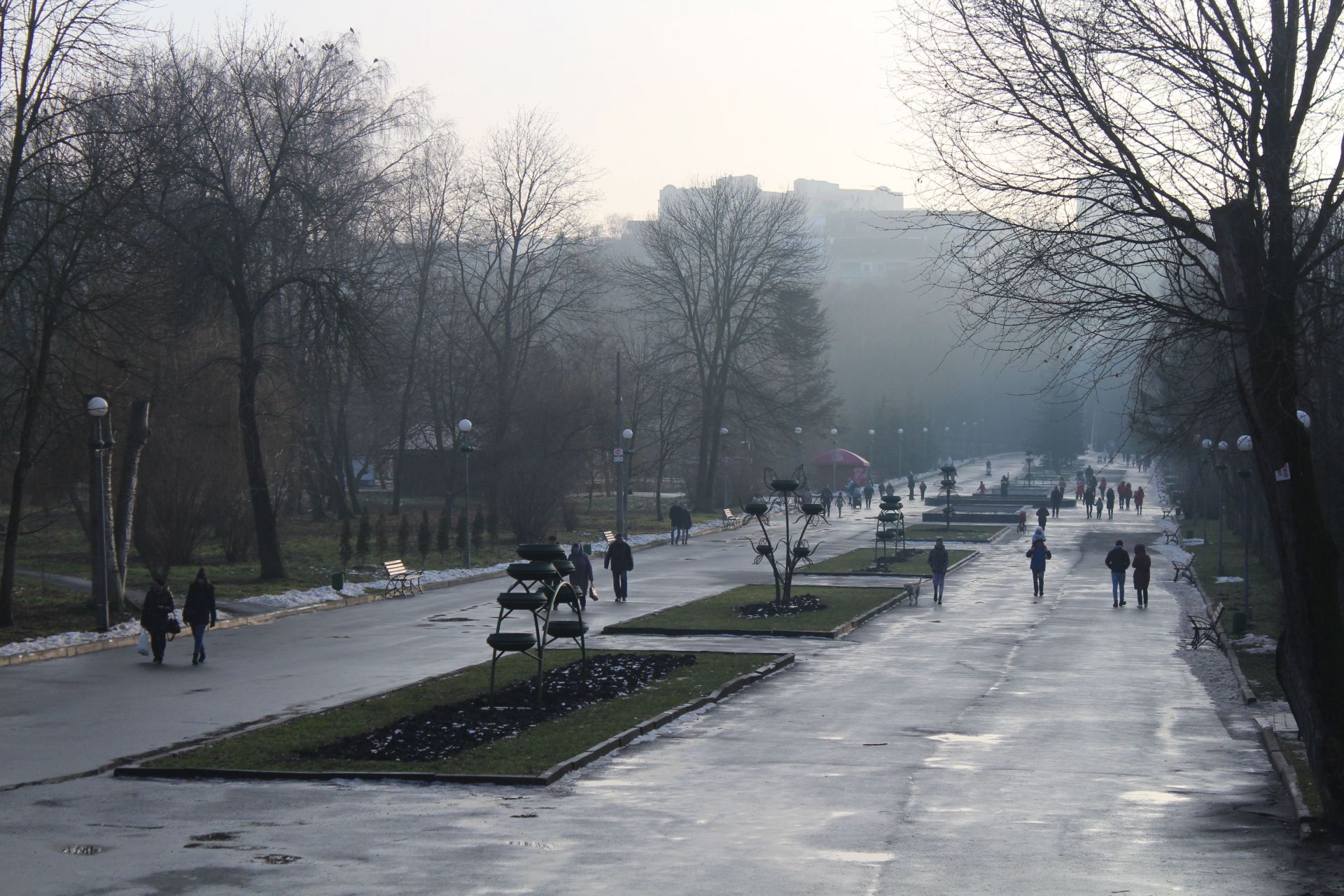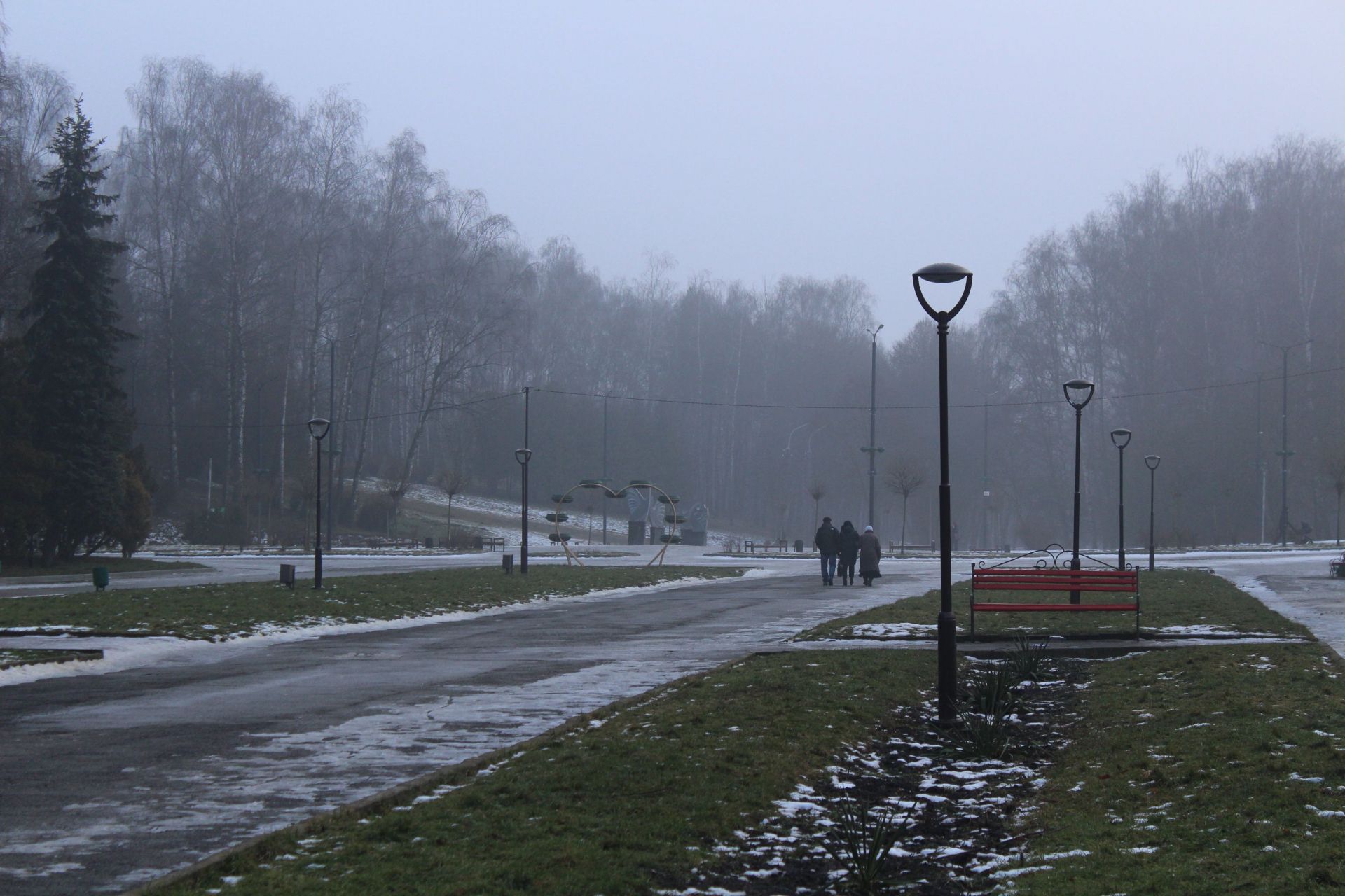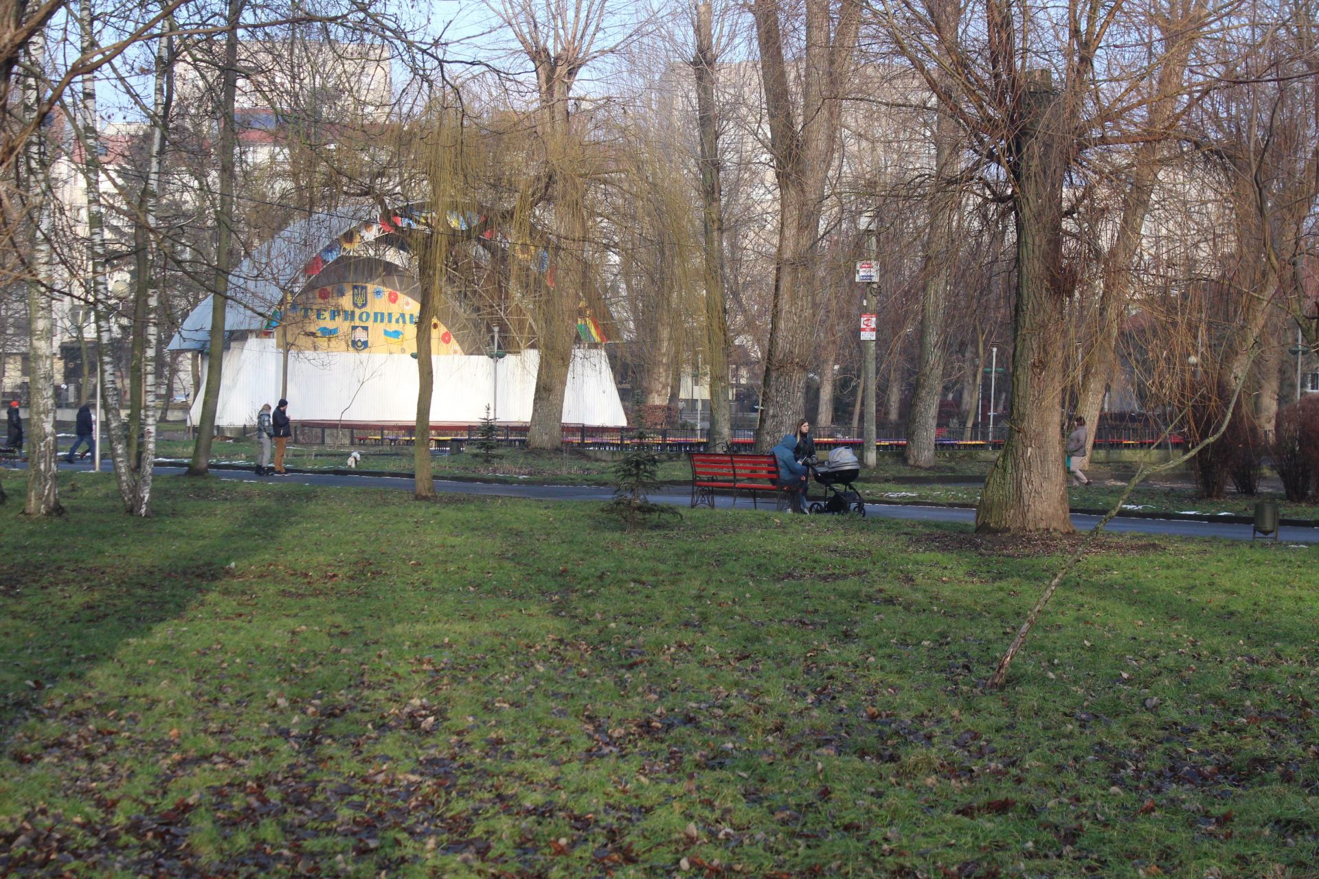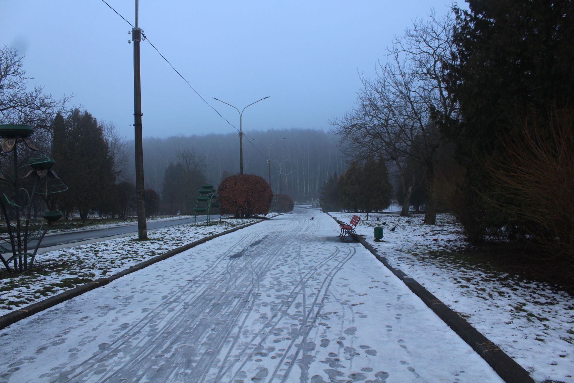 А от у парку Національного відродження ще не розтав увесь сніг, хоча на санчатах там не покатаєшся, бо можна промокнути. Треба чекати заморозків.