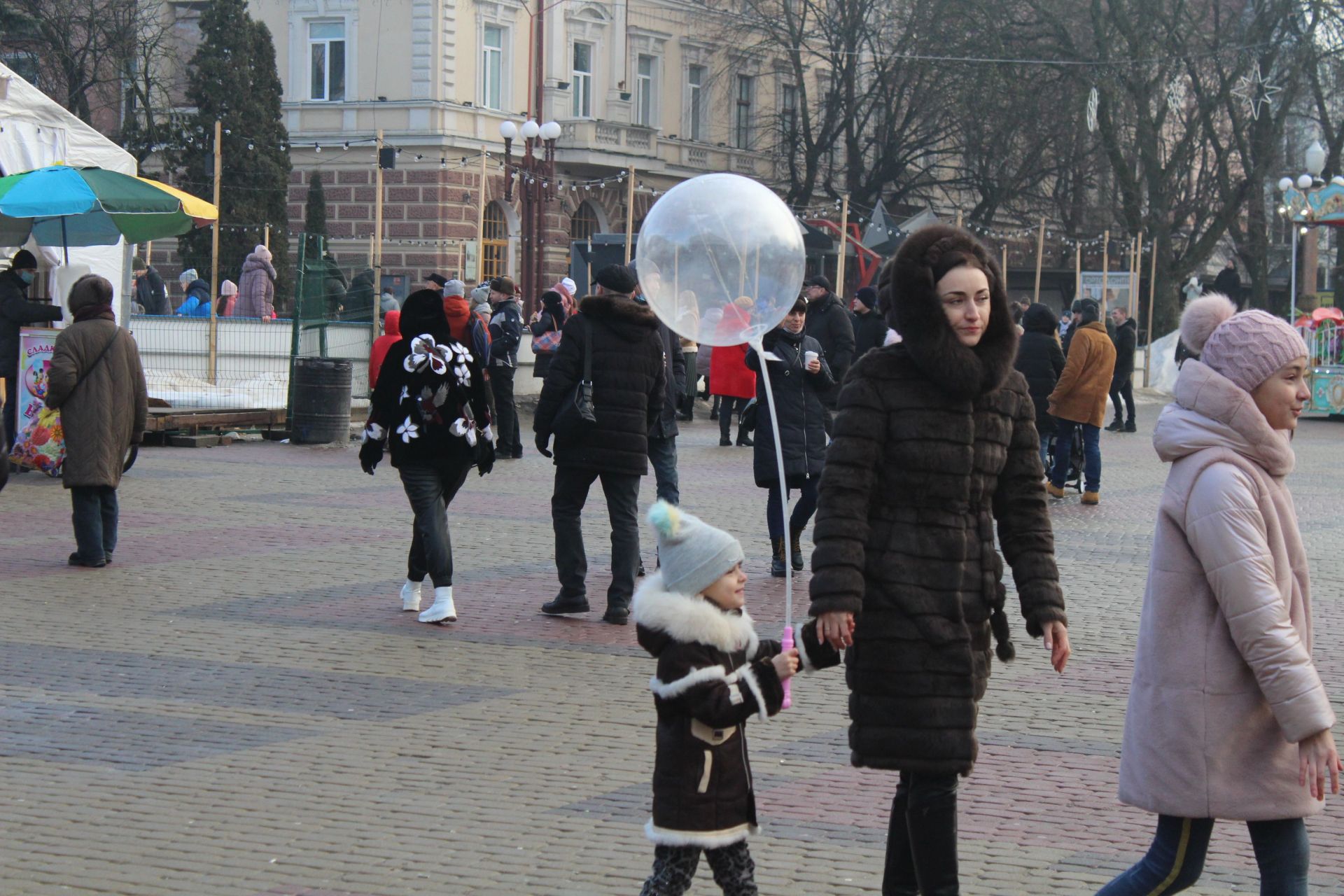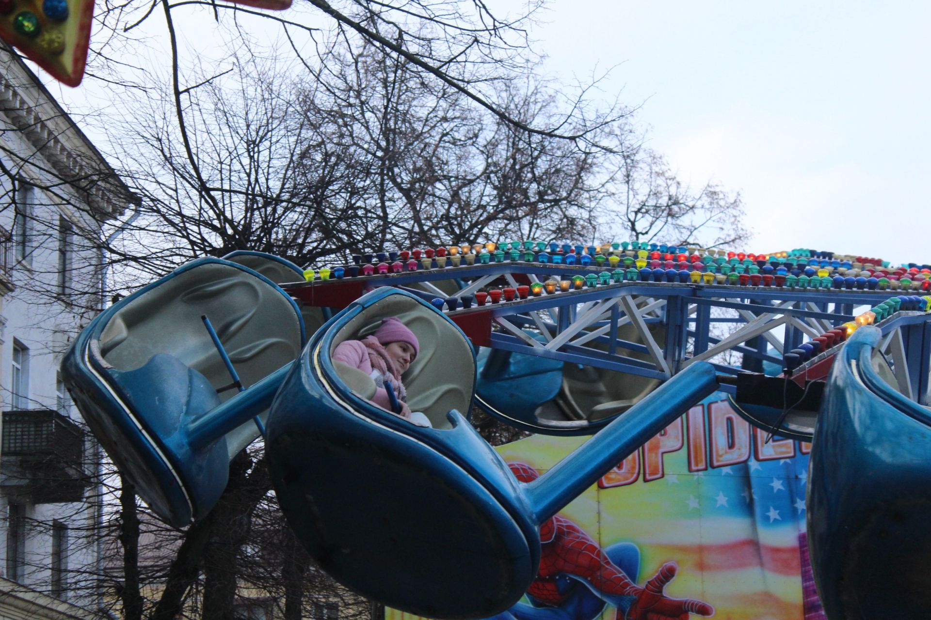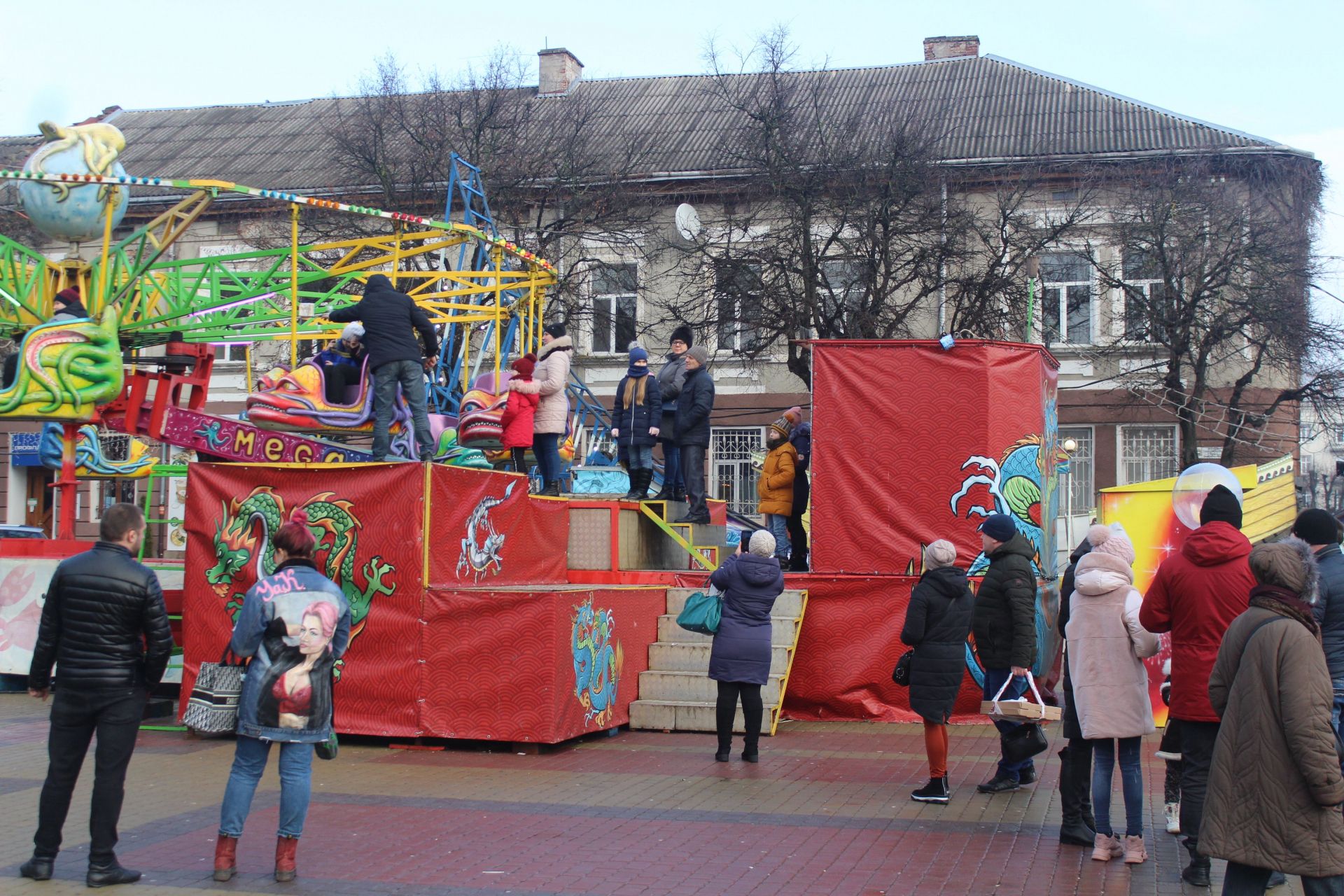 На Театральному майдані «аншлаг». Там чимало людей, які прийшли покататись на ковзанці чи розважитись на атракціонах. На деякі каруселі є черги.