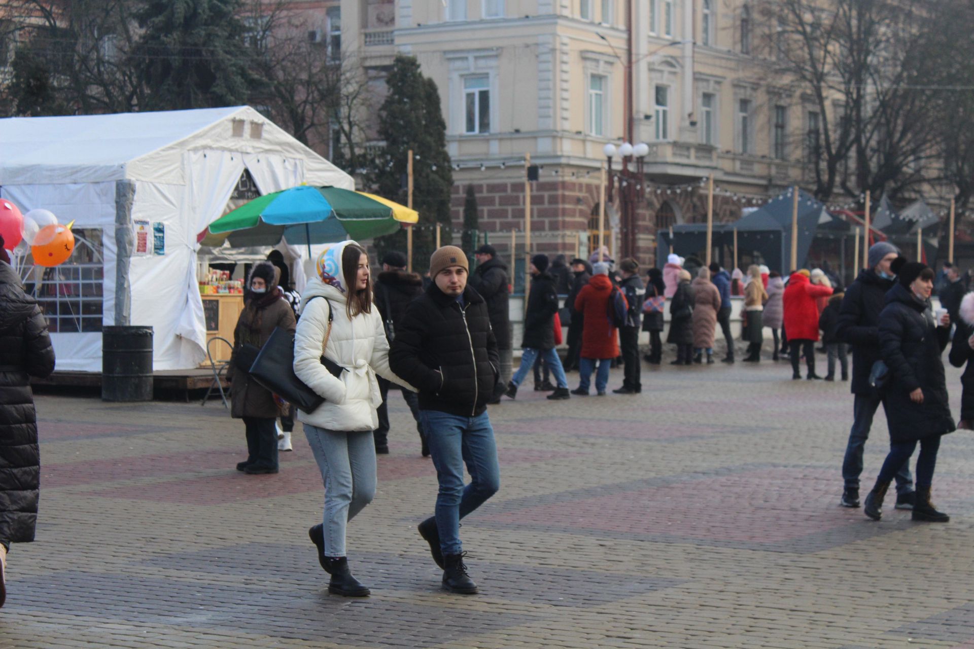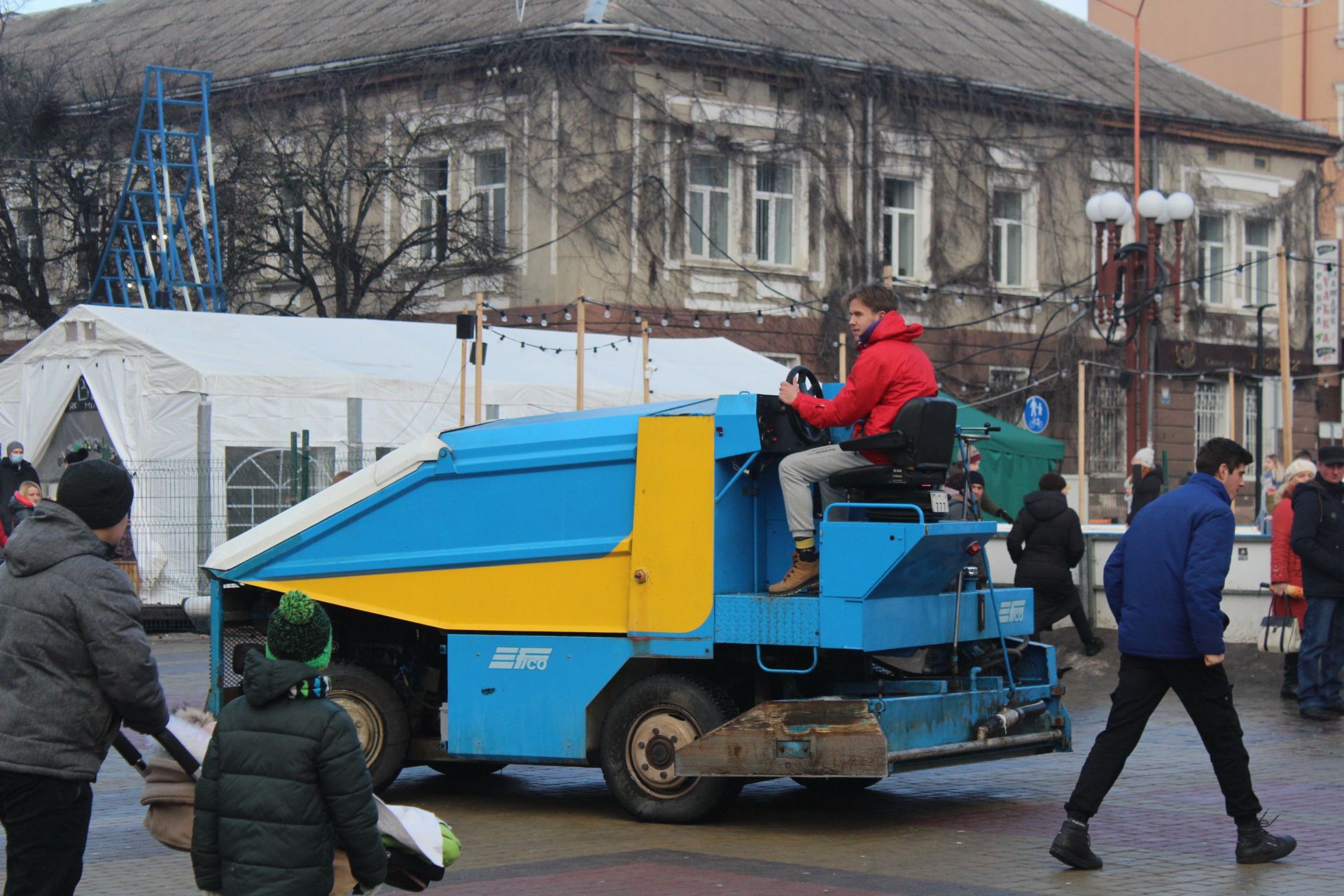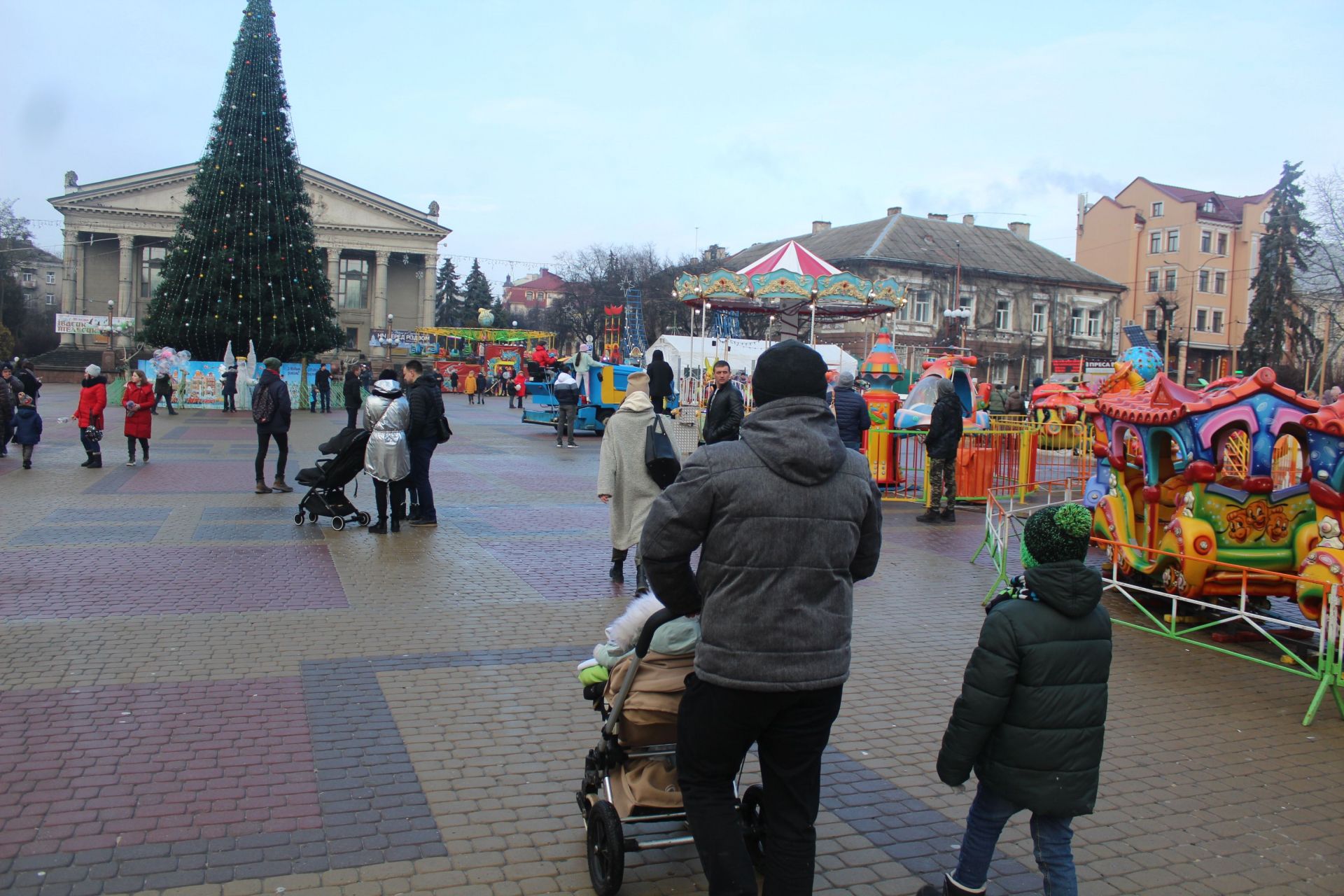 На Театральному майдані «аншлаг». Там чимало людей, які прийшли покататись на ковзанці чи розважитись на атракціонах. На деякі каруселі є черги.