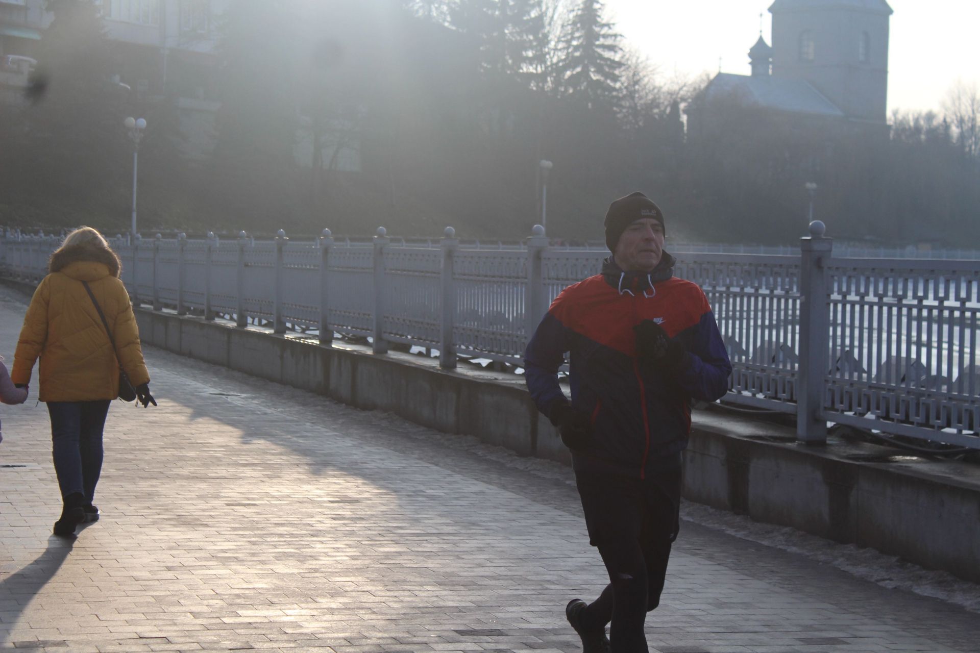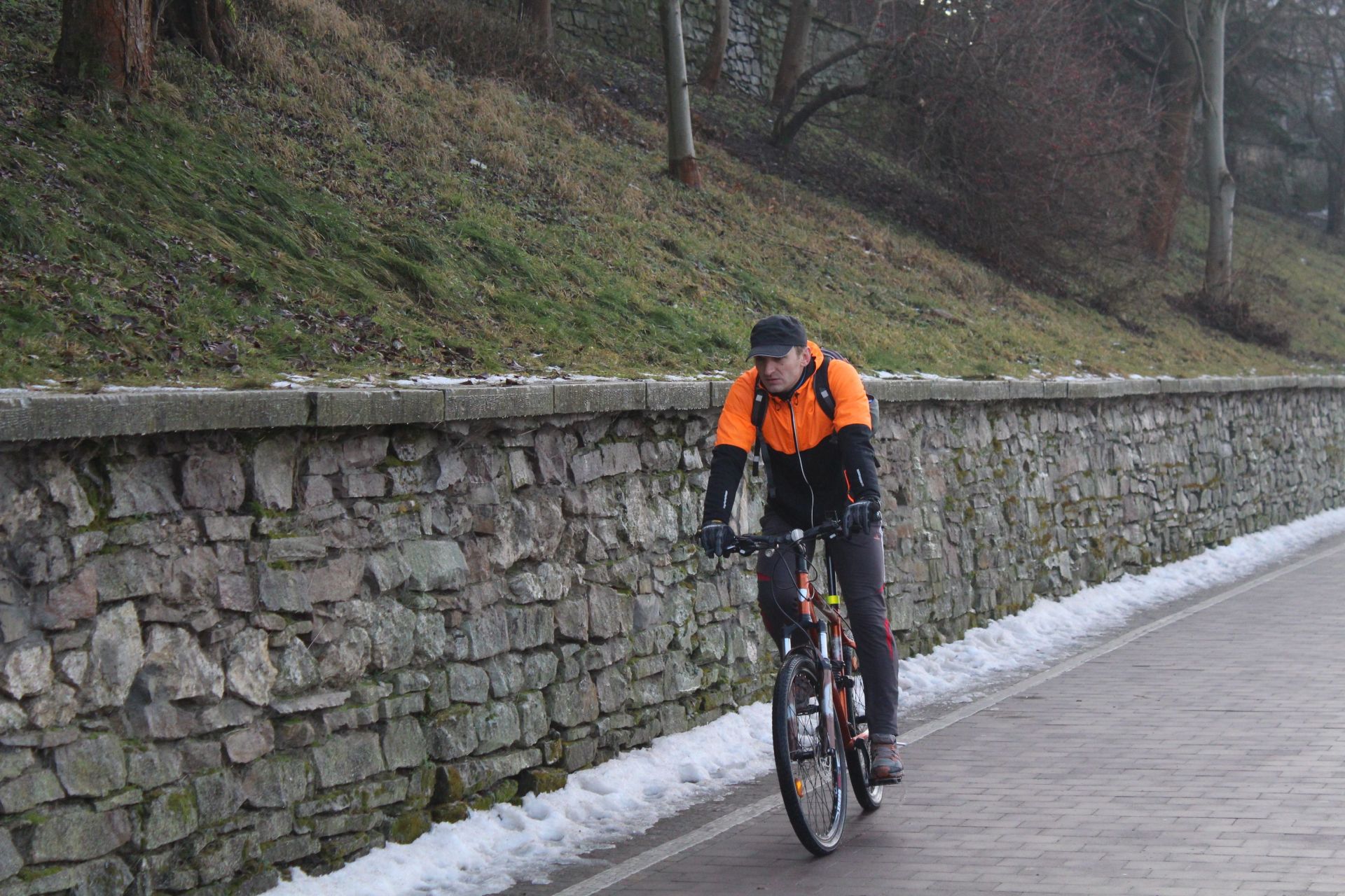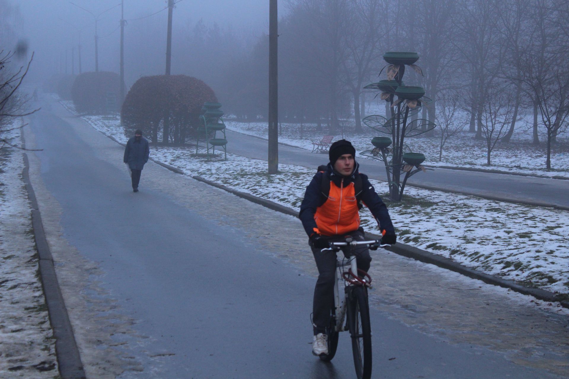 Сніг майже розтав, тому в парку можна побачити велосипедистів та бігунів.