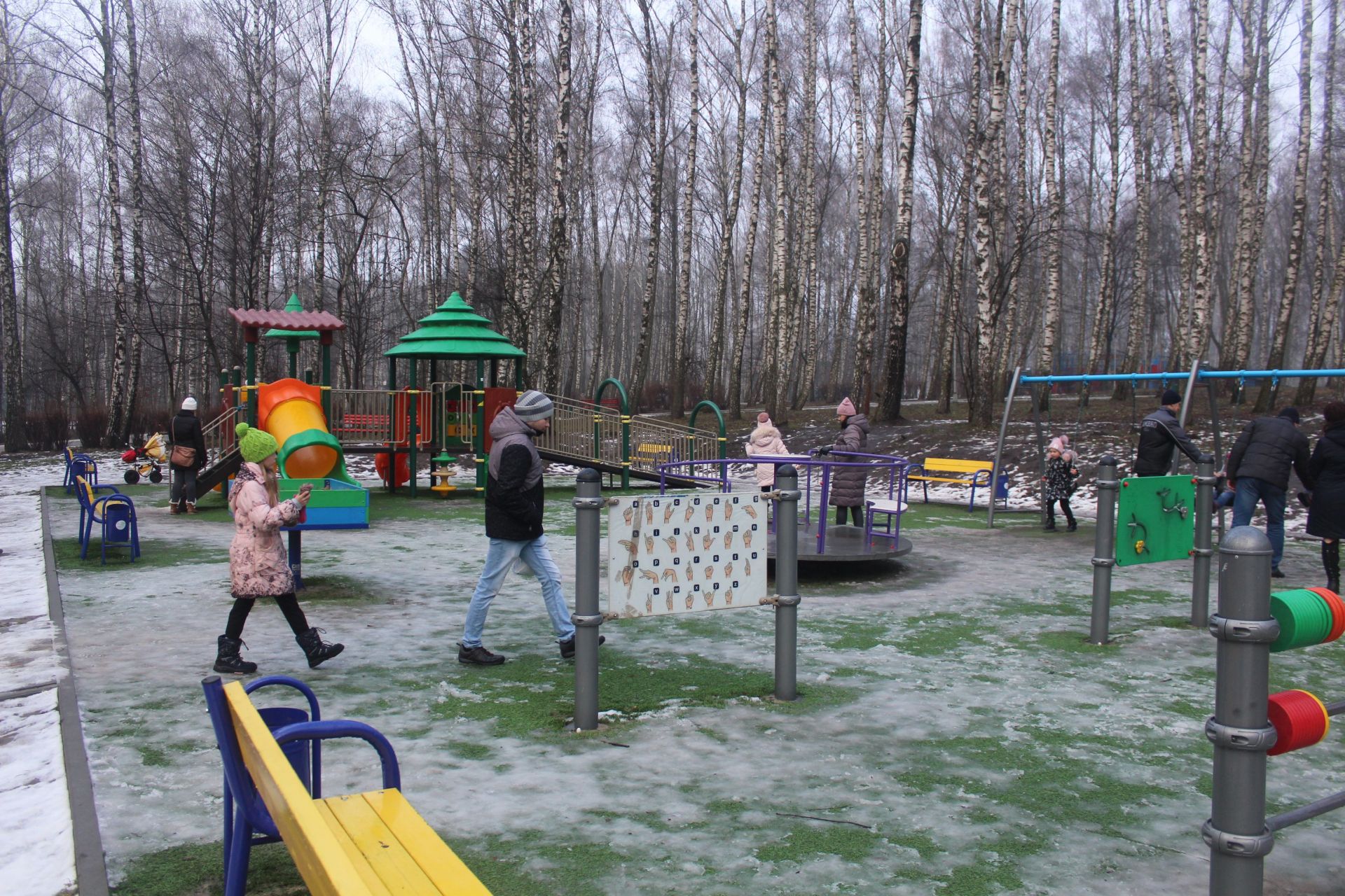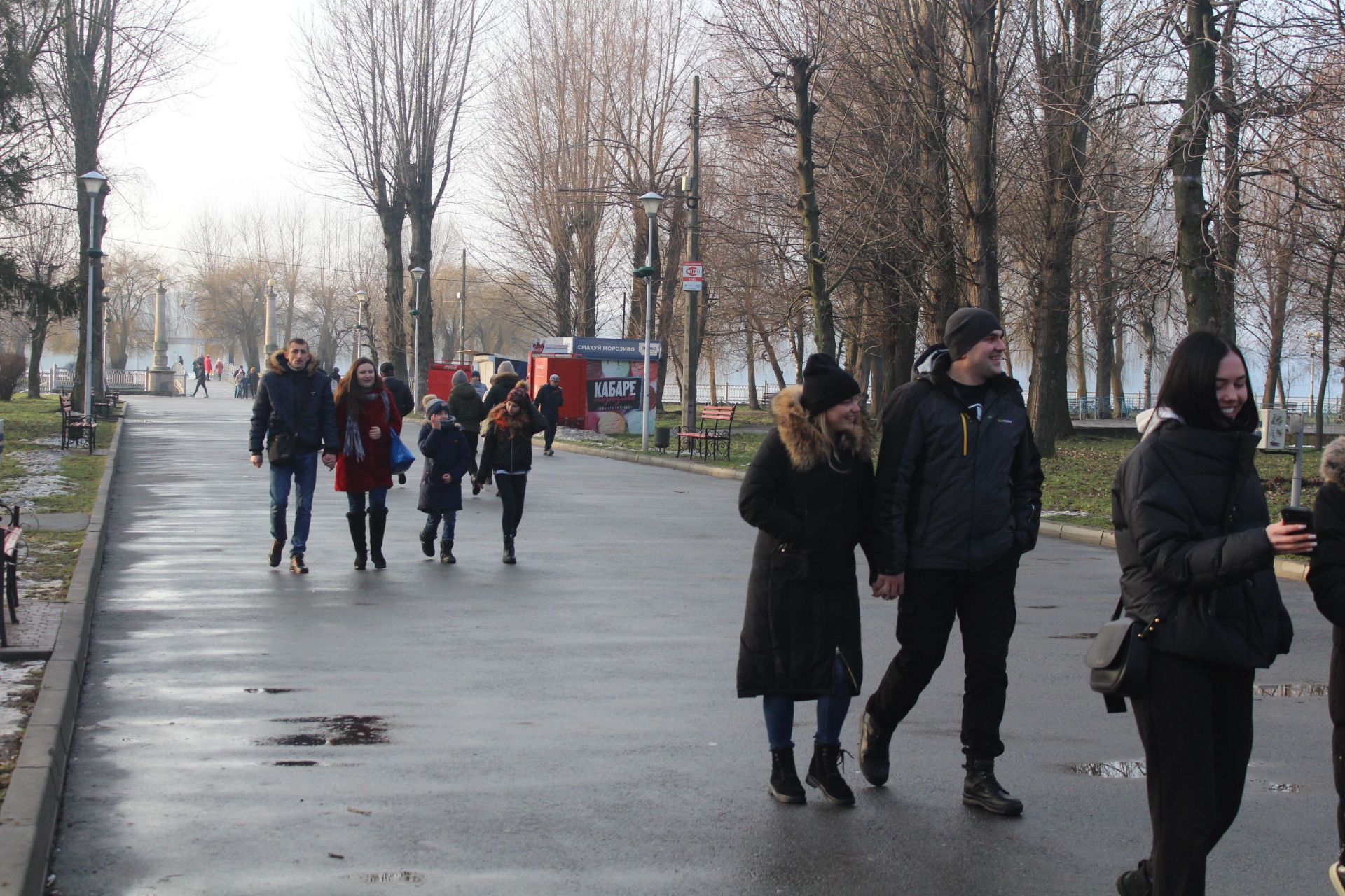 У парку «Топільче» також багато людей. Діти бавляться залишками снігу.