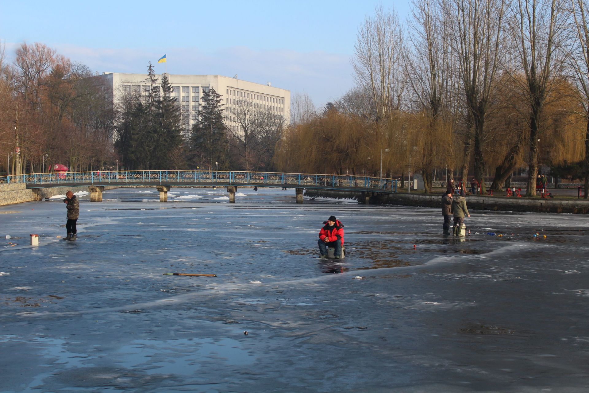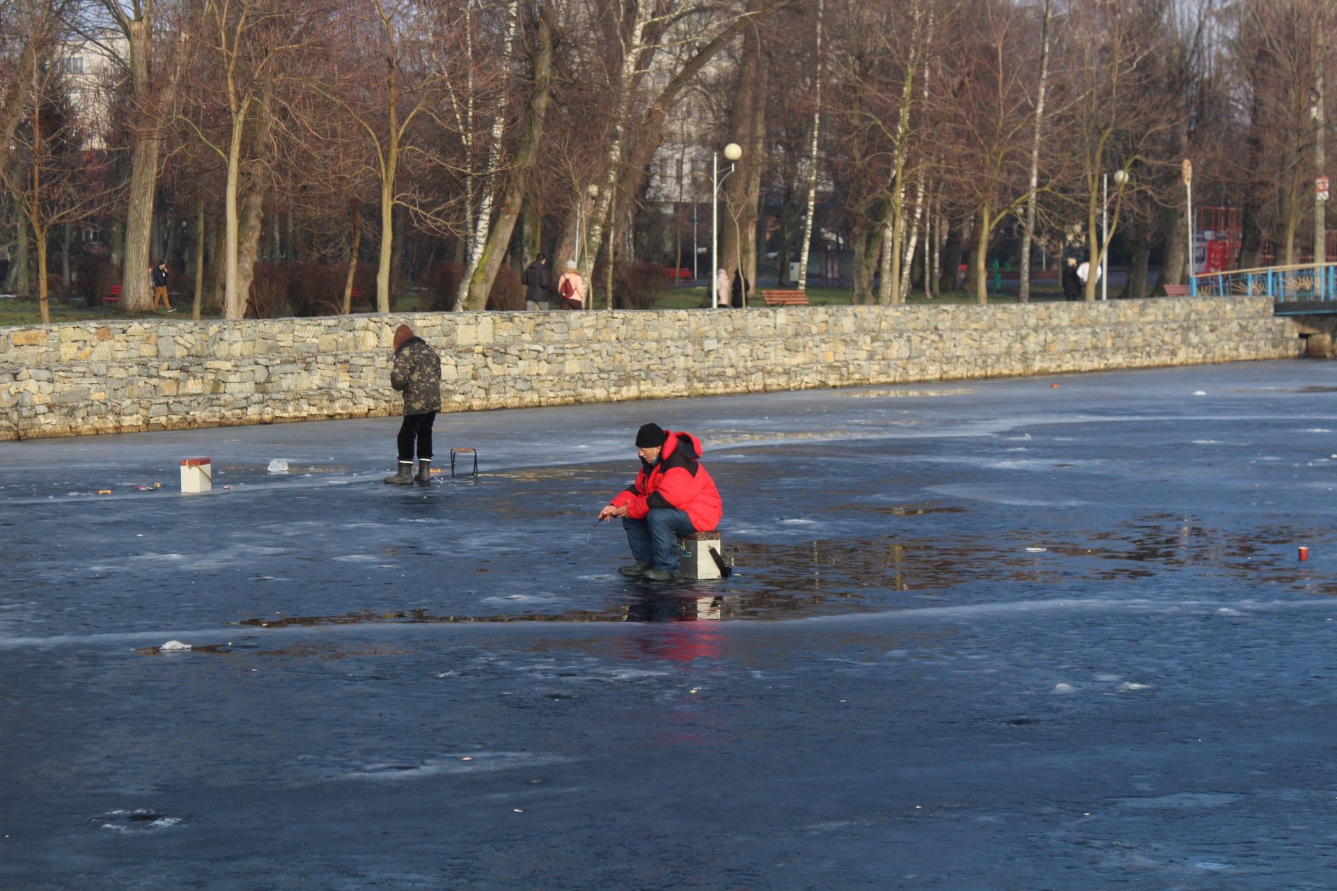 А на Тернопільському ставі купа людей, незважаючи на плюсову температуру. Люди виходять на водойму щоб пофотографуватись чи просто прогулюються. Чимало на водоймі рибаків. А від ополонки, куди на Водохреще занурювались люди лишився лише слід. Вона замерзла.