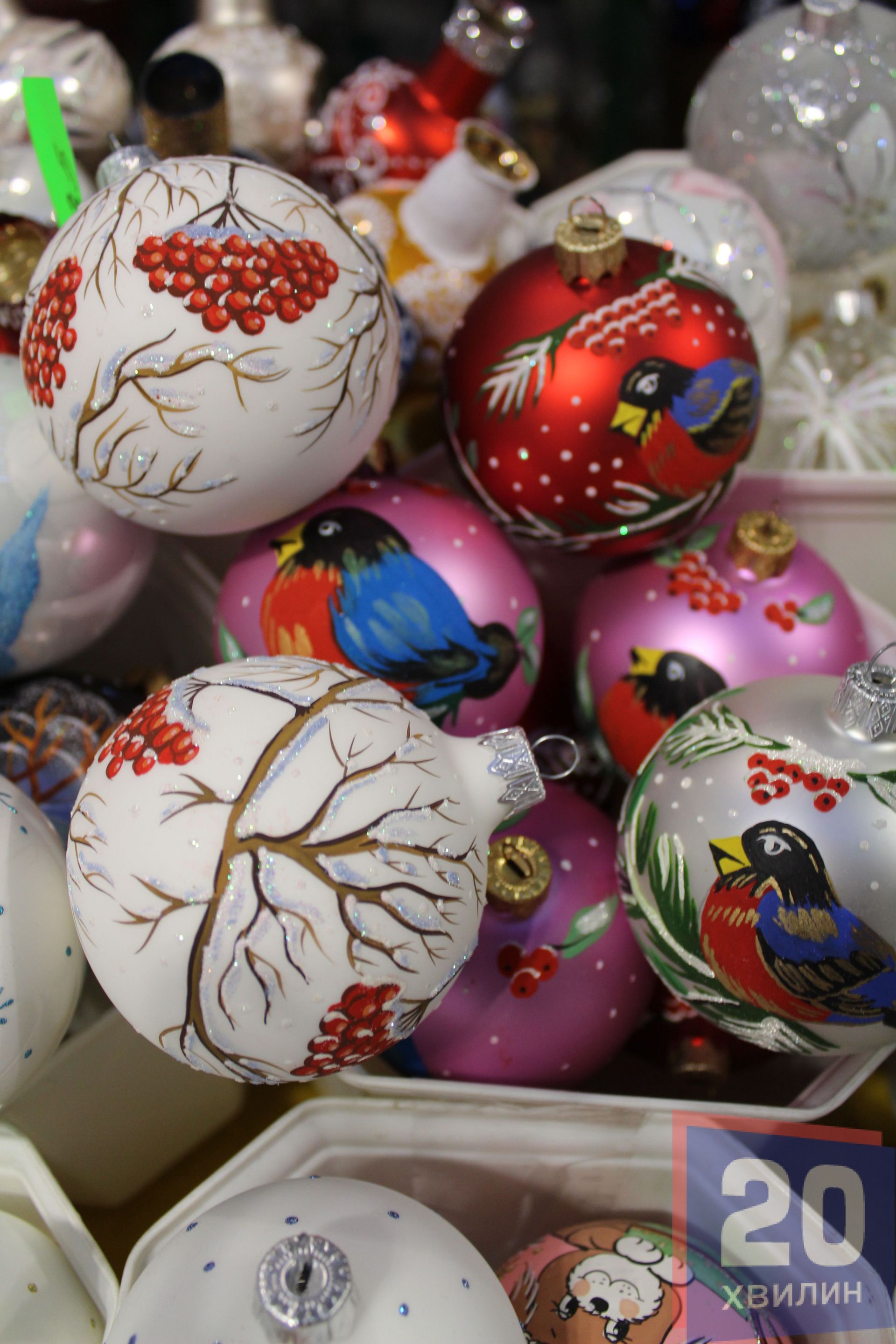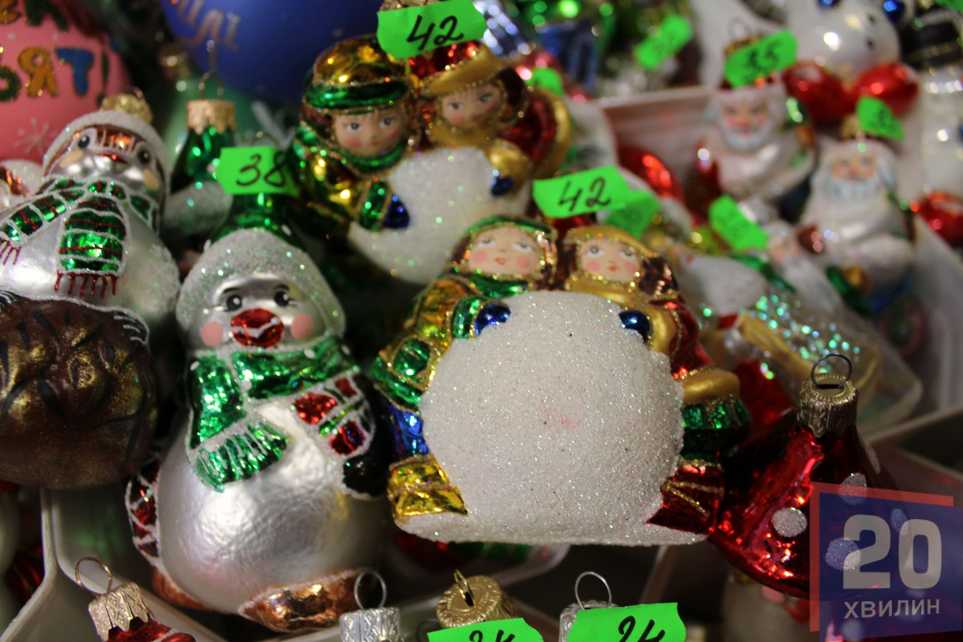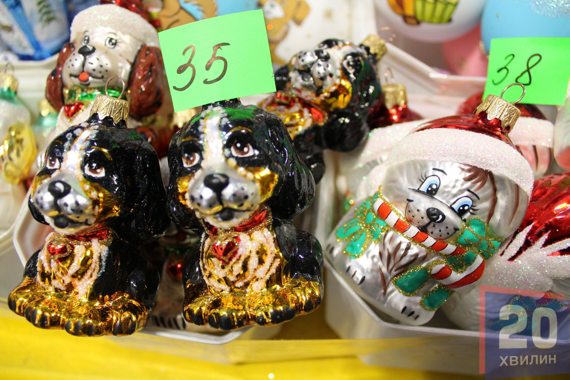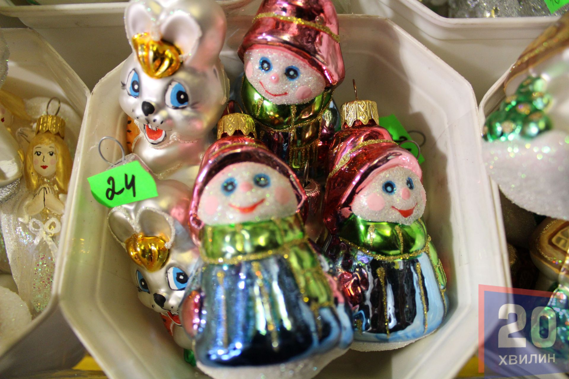 В асортименті є пластмасові іграшки та імпортні скляні ручної роботи. Найдешевша іграшка ручної роботи від 6 грн. Найдорожча 125 грн подарунковому варіанті з зображенням талісману 2018-ого року - собаки. Є і дешевші іграшки зображенням або у вигляді талісмана - 25 – 40 грн.
