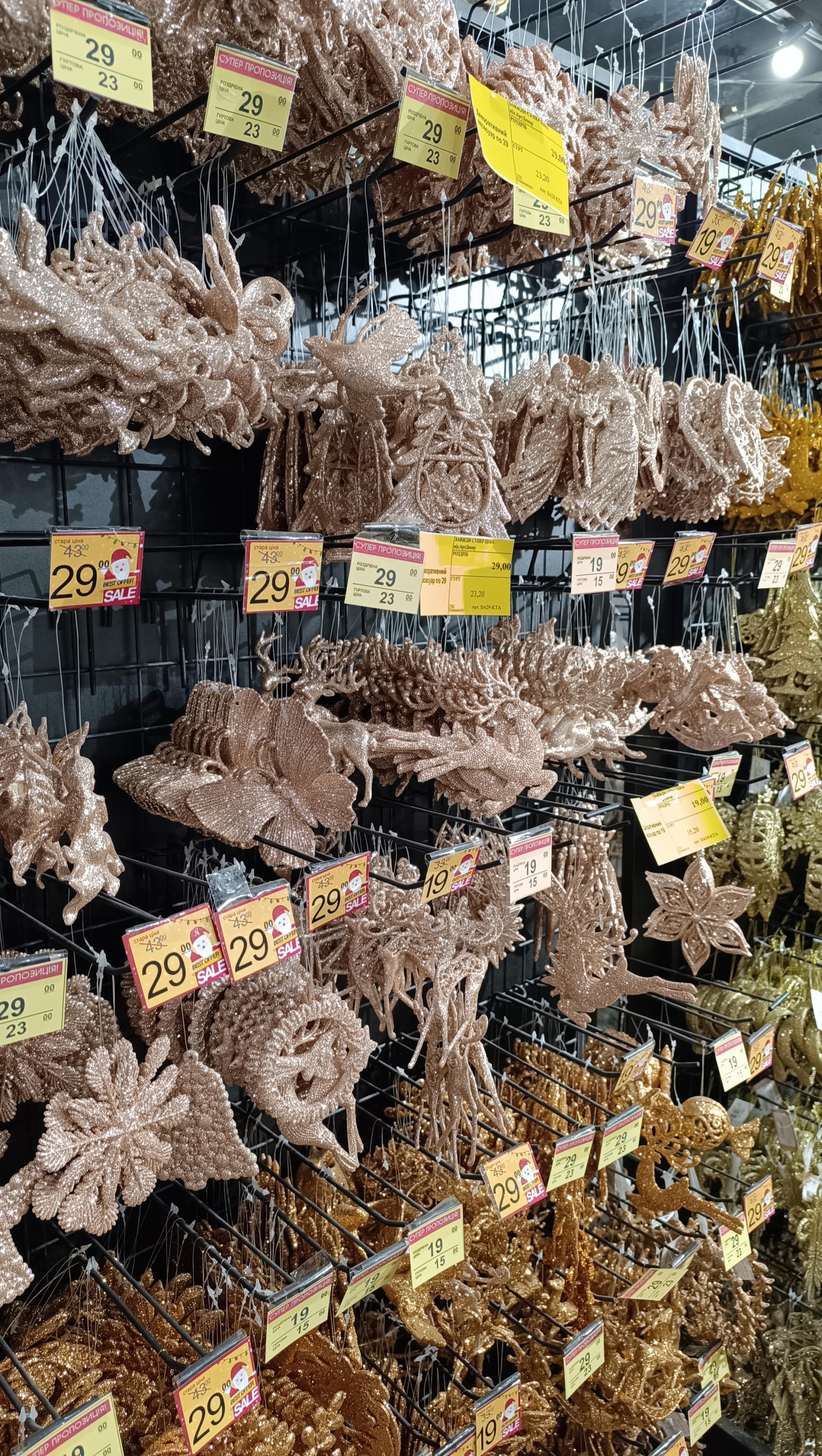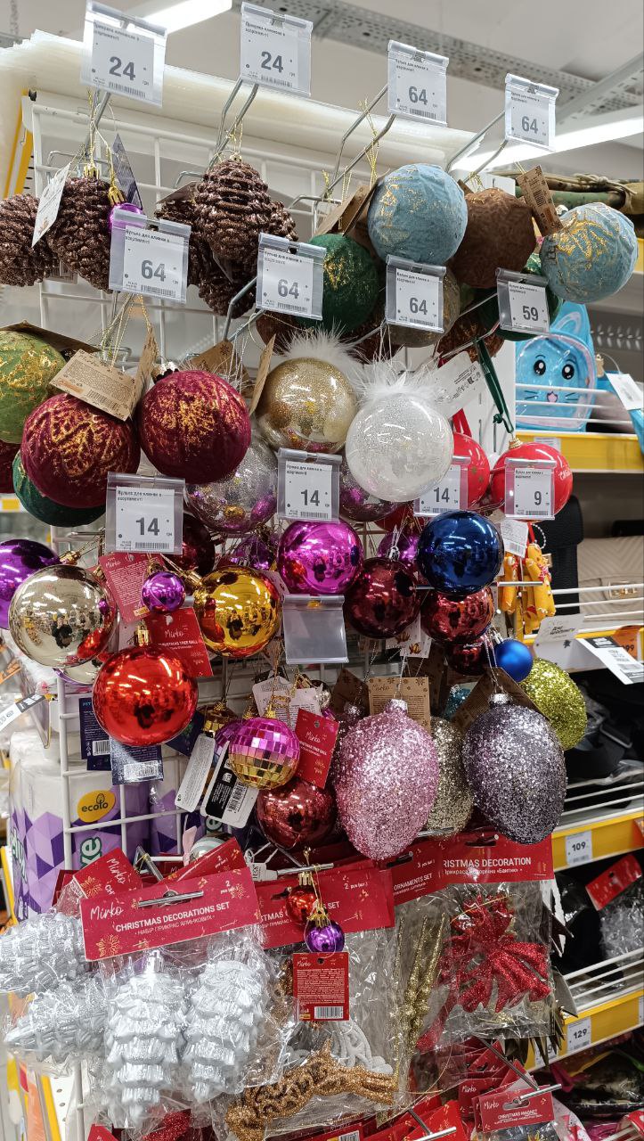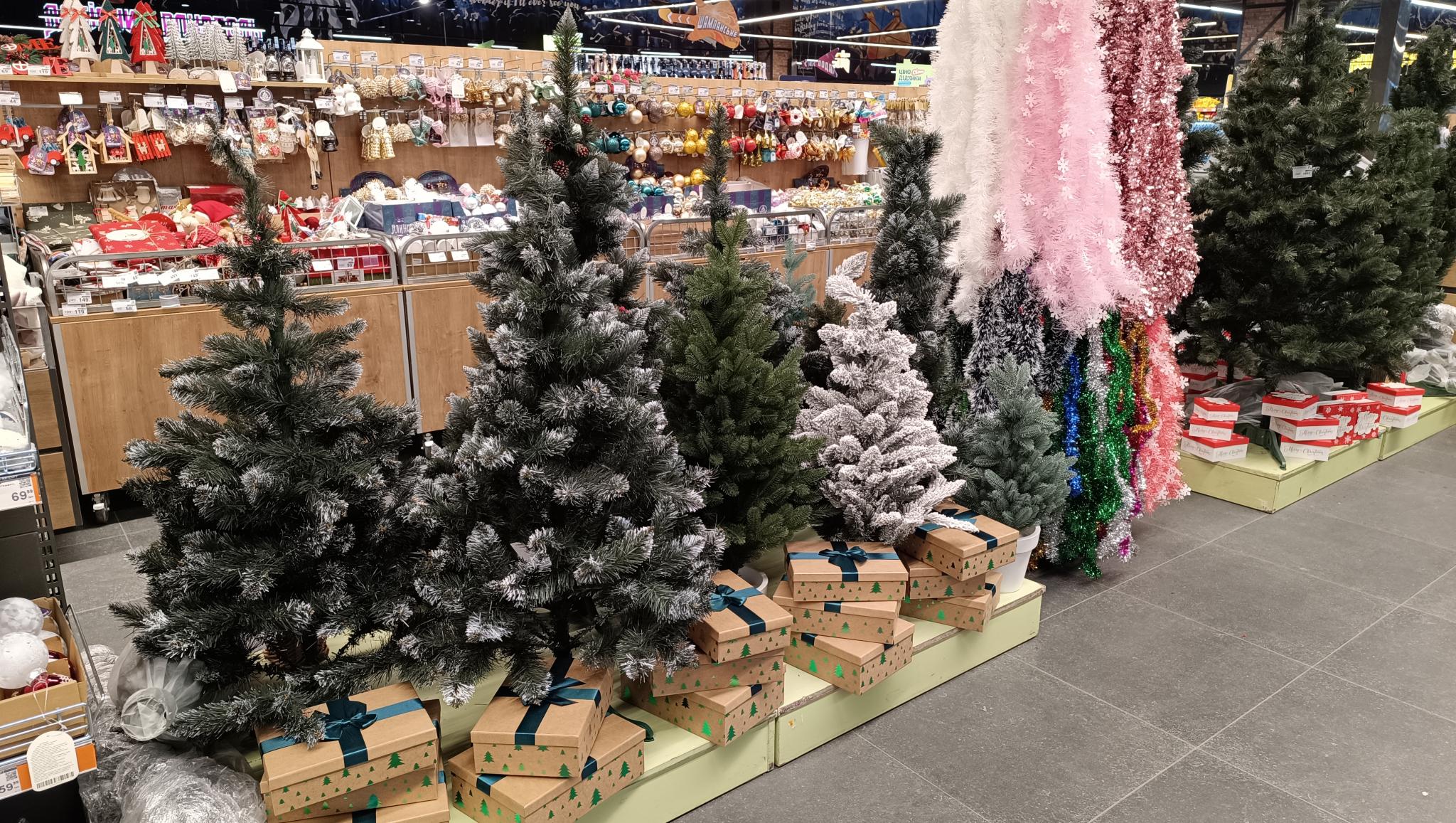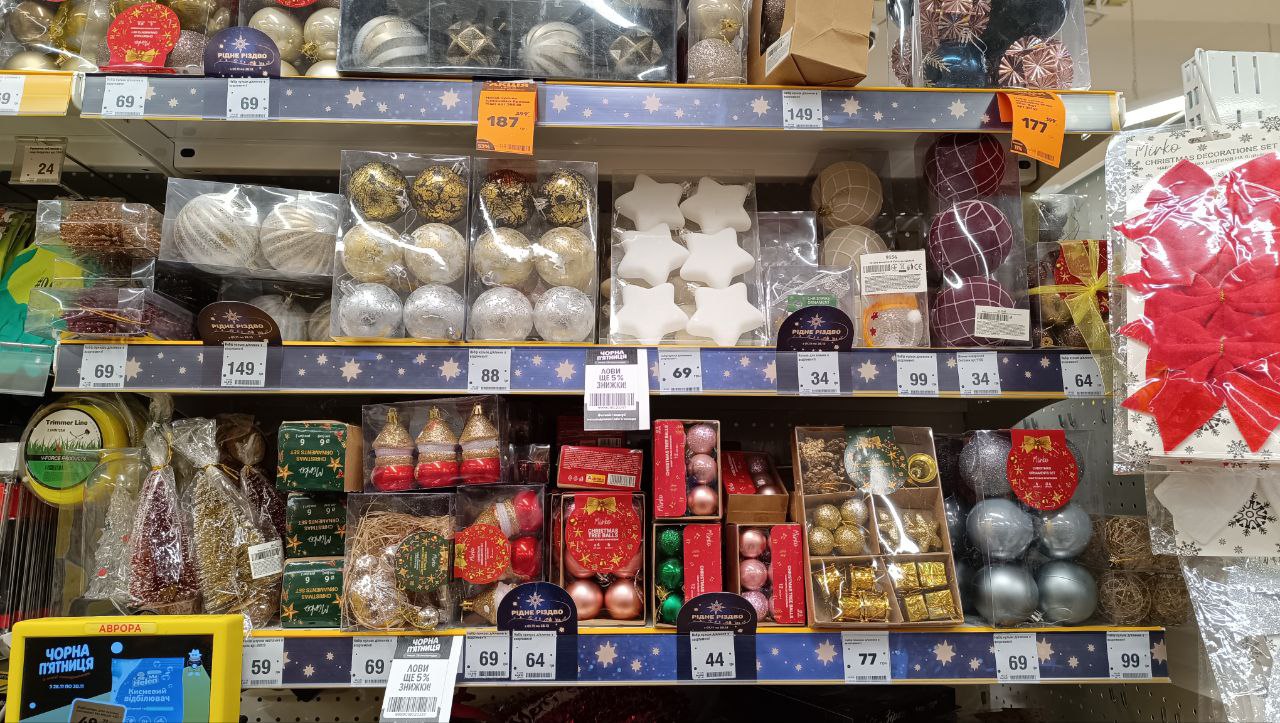 За місяць до нового року магазини переповнені святковою атрибутикою. Купити різдвяно-новорічні товари можна у мережах супермаркетів, магазинах, загалом, майже всюди. Ми відвідали, зокрема, магазини «Юск», ArtDecor, «Аврору» та «Сільпо».