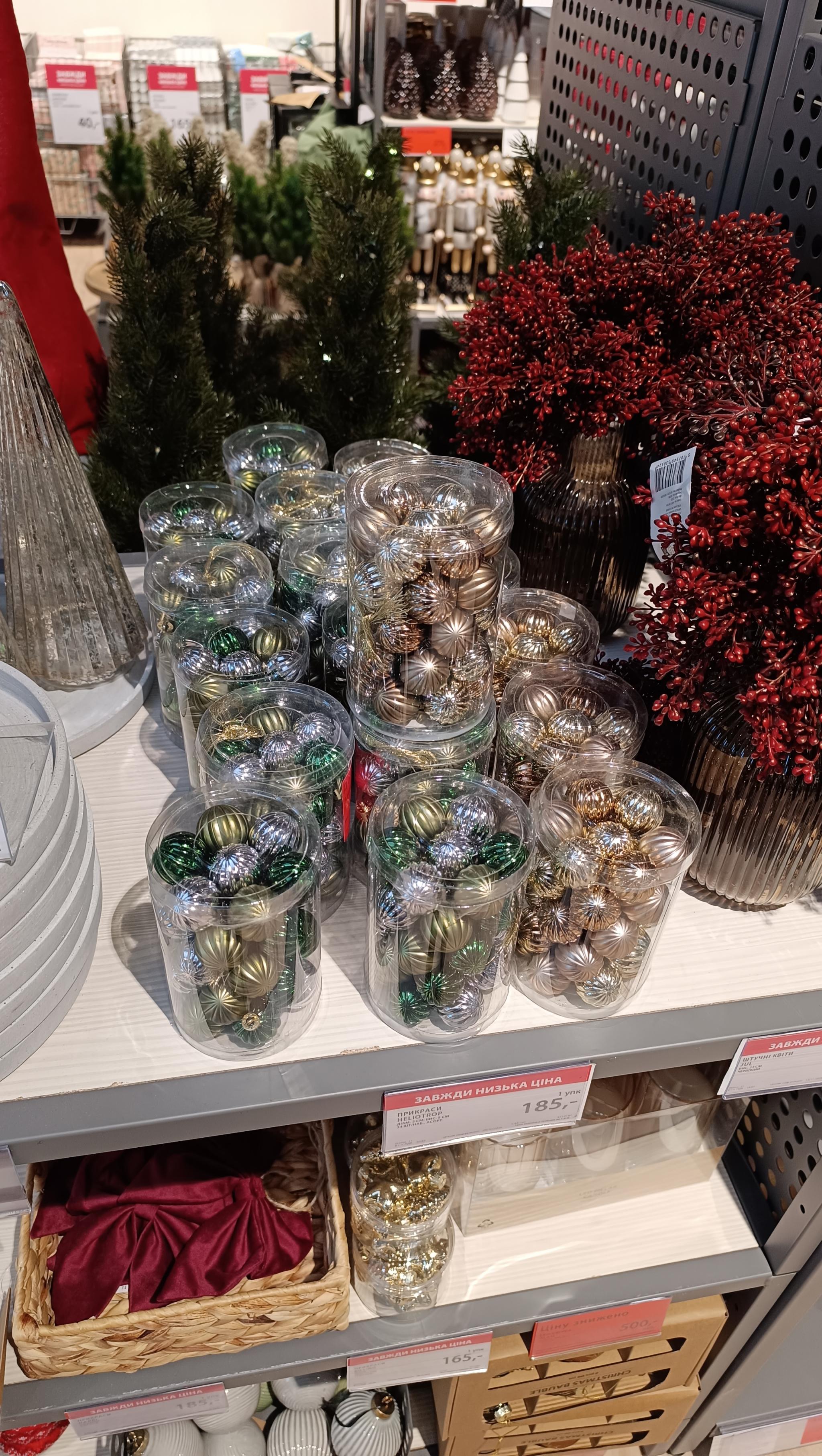 У «Юску» дещо менший вибір прикрас на линку. Набір кульок 34 штуки діаметром 3 см коштує 185 грн.